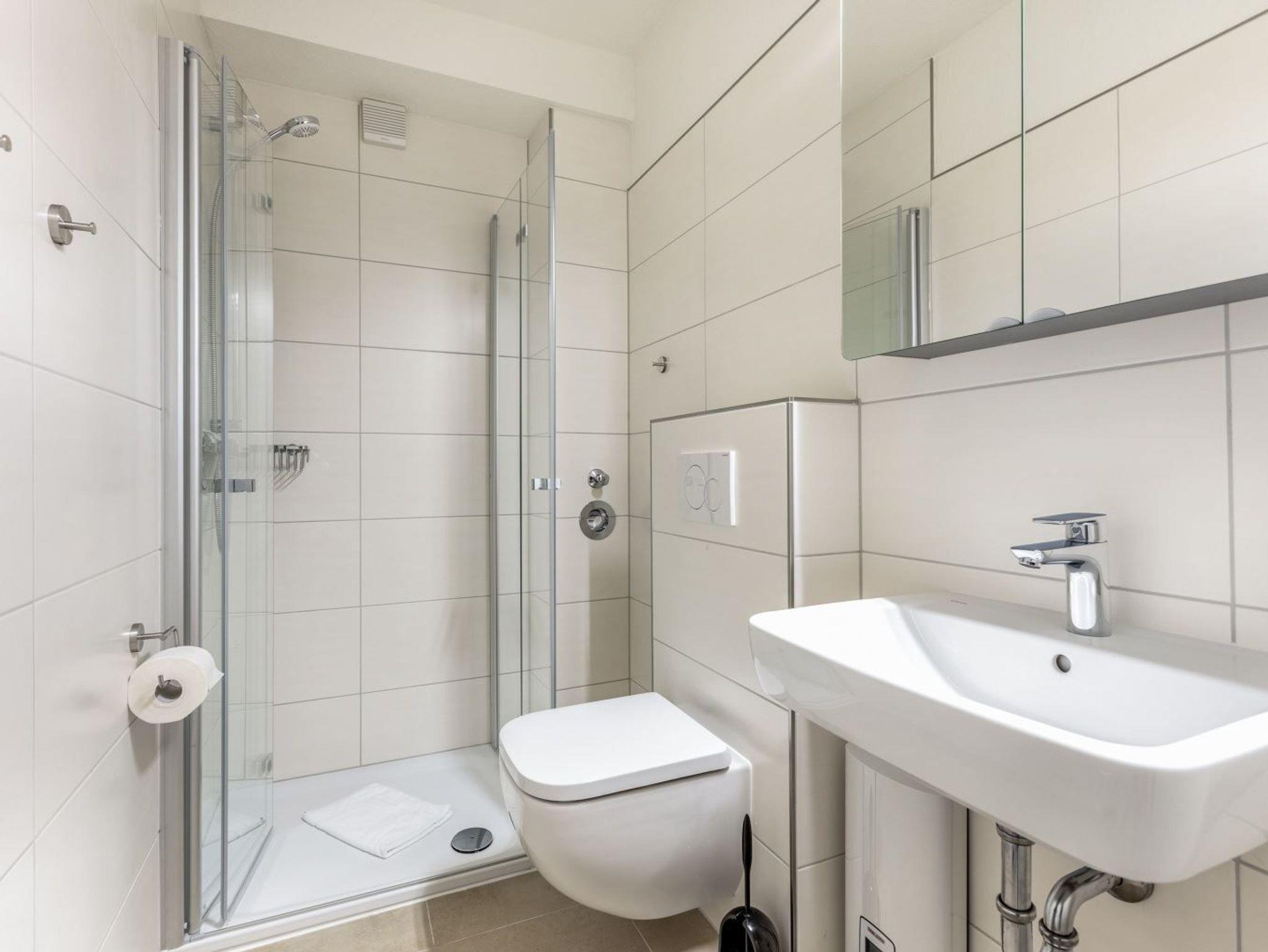 Badezimmer (Duschbad) mit Dusche, WC und Föhn.