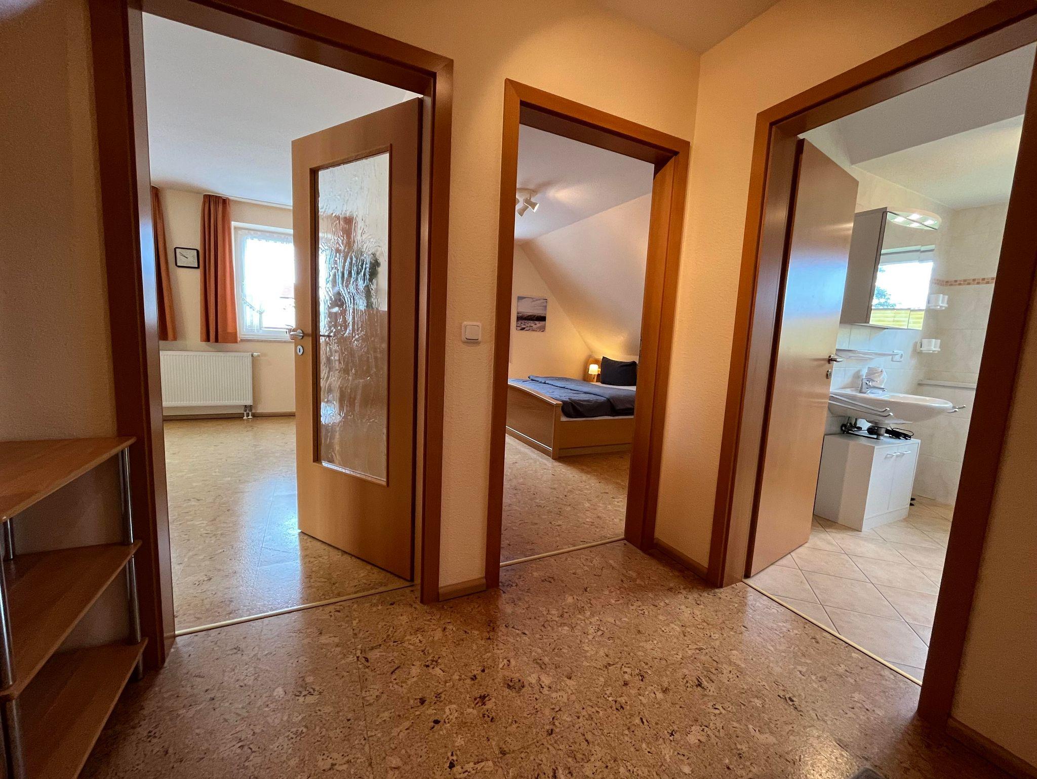 Unsere voll ausgestattete Ferienwohnung „Sonnenstrahl“, im ersten Obergeschoss gelegen, bietet für 2-4 Personen großzügig Platz und alles, was für Ihren entspannten Urlaub notwendig ist.