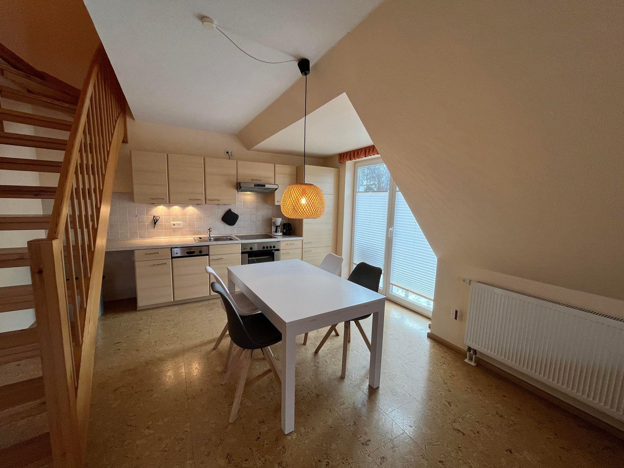 Auf rund 75qm erwartet Sie eine Maisonette Wohnung auf zwei Ebenen. Im unteren Bereich befindet sich ein großer Wohn- und Essbereich mit offener Küche (voll ausgestattet), ein großes Bad mit Dusche & WC sowie ein großes Schlafzimmer. Im oberen Wohnbereich befindet sich ein zusätzliches separates Schlafzimmer für bis zu zwei Personen. Ein toller Balkon mit Sonnengarantie rundet das Angebot für einen schönen Urlaub ab. Ihre Unterkunft liegt im beliebten Ortsteil Dorf und ist optimaler Ausgangspunkt für Ihre Urlaubsaktivitäten, Einkaufsmöglichkeiten sind in direkter Umgebung und die Strände sind einfach und schnell zu erreichen.