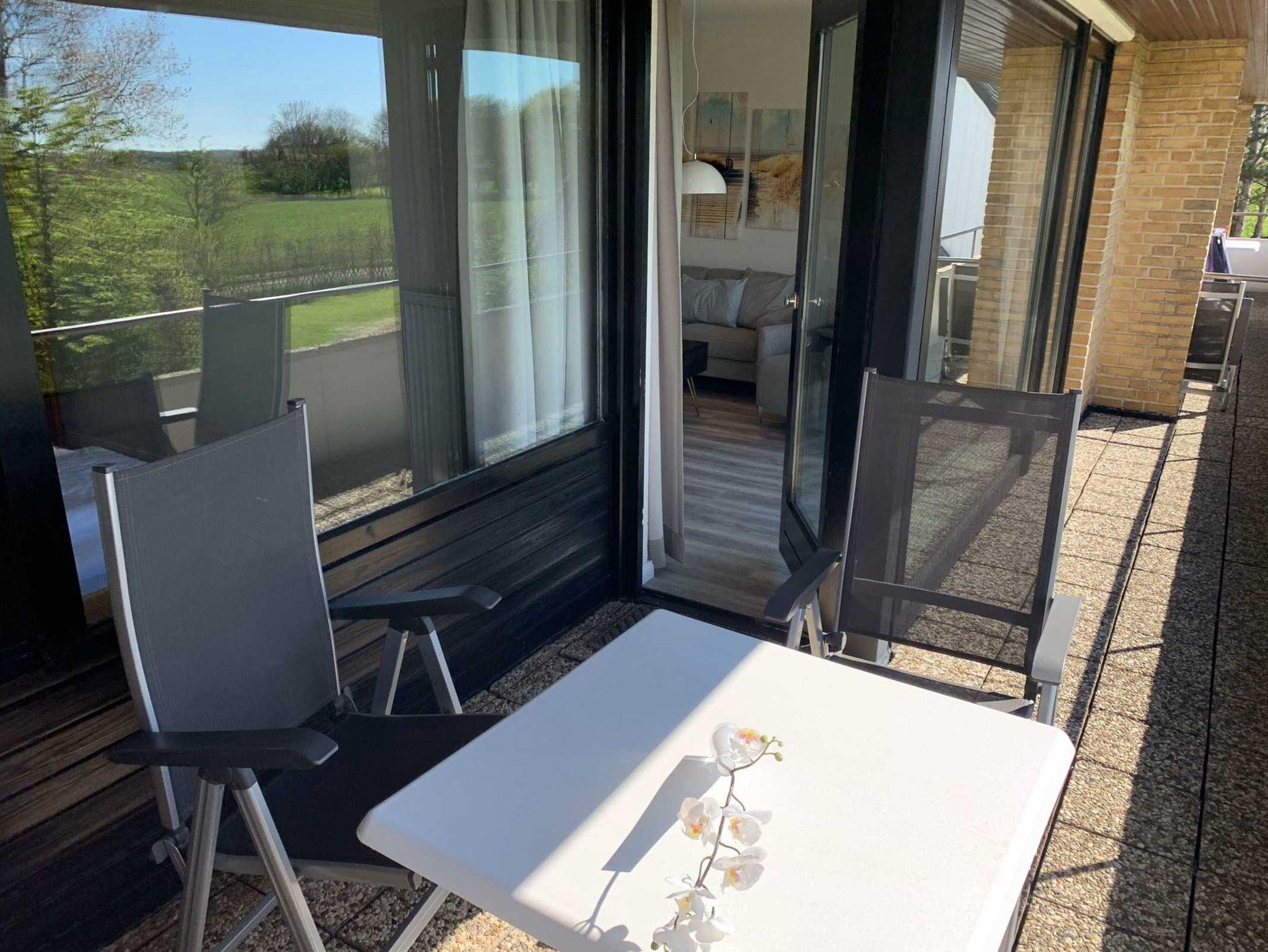 Die ca. 55 qm teilen sich folgendermaßen auf:Eingangsbereich mit Garderobe, offener Wohnraum mit Essbereich und integrierter Einbauküche,Einzelschrankbett (90x200cm,Matratze), direkter Zugang zur Loggia , Schlafzimmer mit Doppelbett (180x200cm,getrennte Matratzen), 1 Duschbad mit WC und Waschbecken.