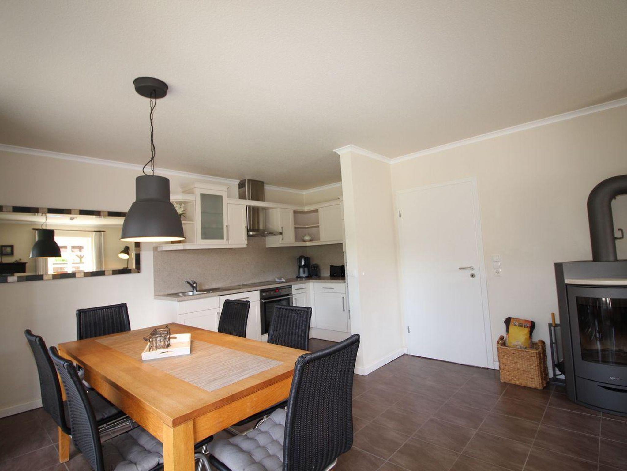 Im Erdgeschoss befindet sich der Wohnraum mit einer offenen Küche und einem gemütlichen Essbereich. Die Küche ist mit nützlichen Geräten voll ausgestattet.