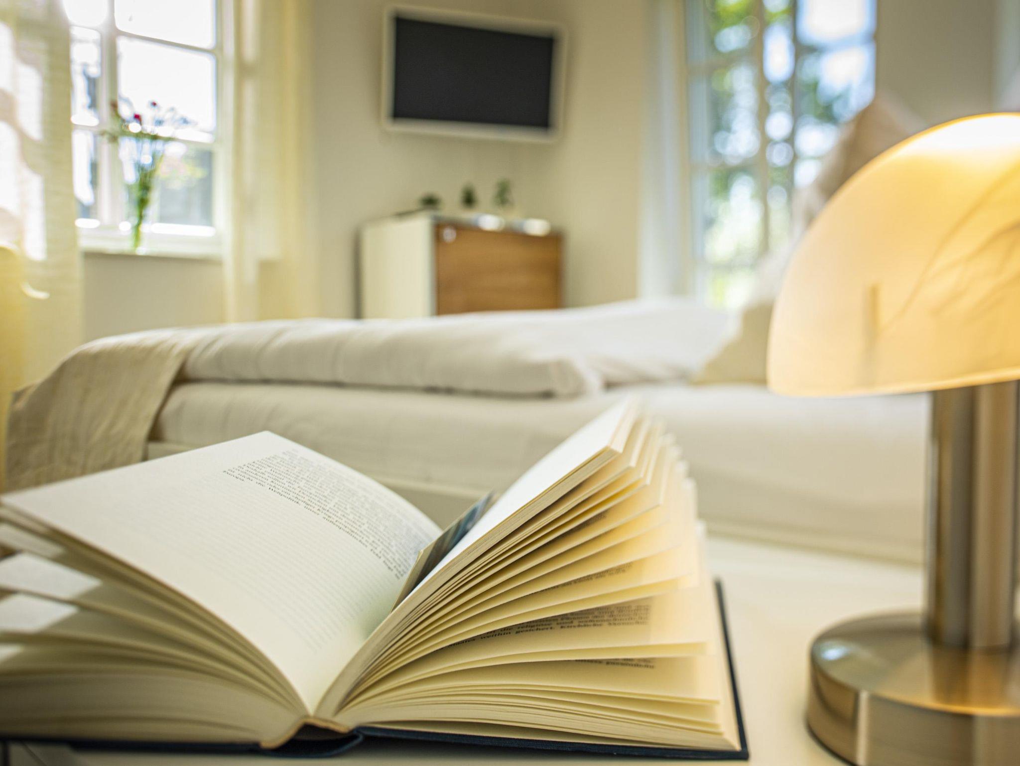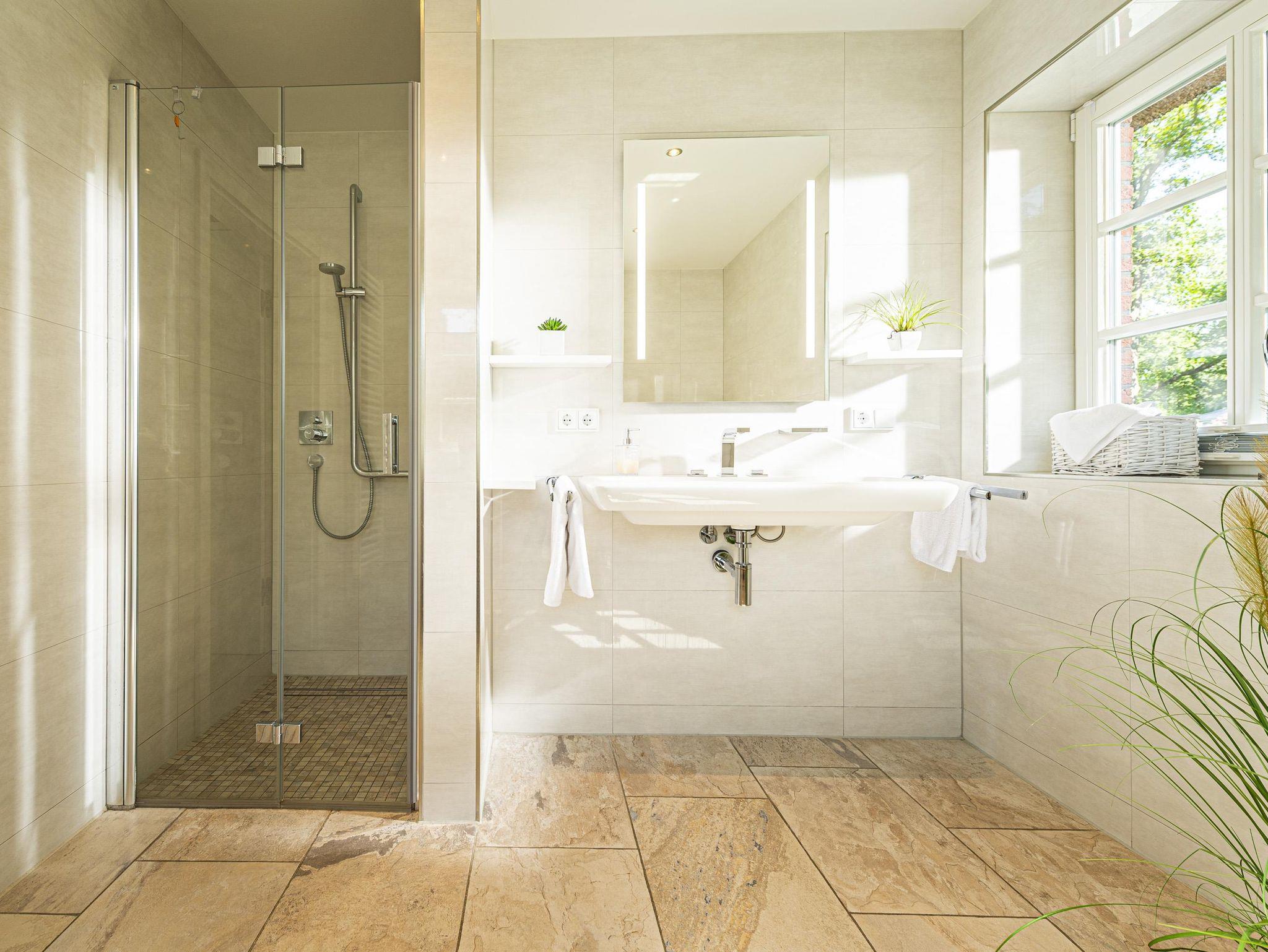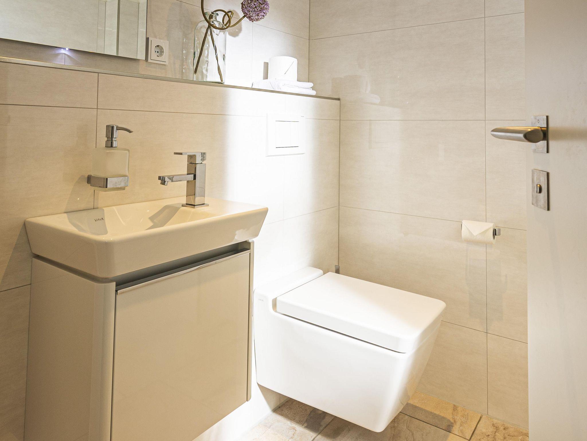 Im Obergeschoss befindet sich eine kleine Schreibecke, 2 Schlafzimmer. Eines hat ein Doppelbett, das andere zwei Einzelbetten, welche sich aber problemlos zusammenschieben lassen. Ausreichend Stauraum bieten die Einbauschränke. Jedes Schlafzimmer verfügt über einen Fernseher. Zudem finden Sie hier ein Wannenbad / WC mit separater Dusche. Entspannen können Sie in der großen Eckbadewanne, durch den Farblichtwechselmodus (Lichttherapie) erwartet Sie ein besonderer Komfort.