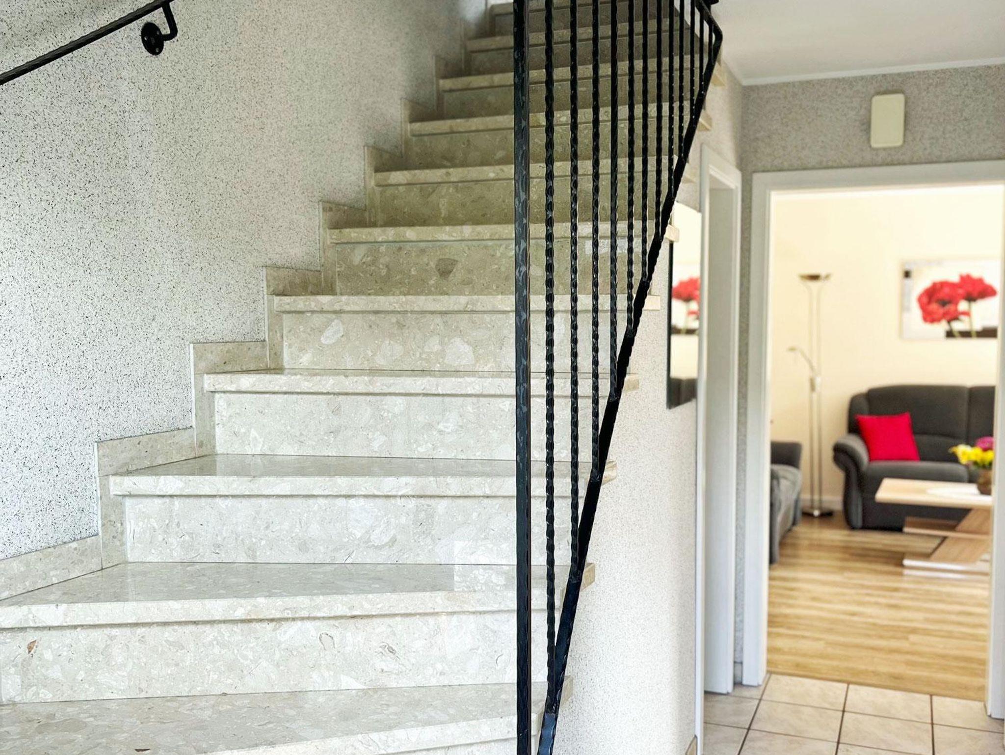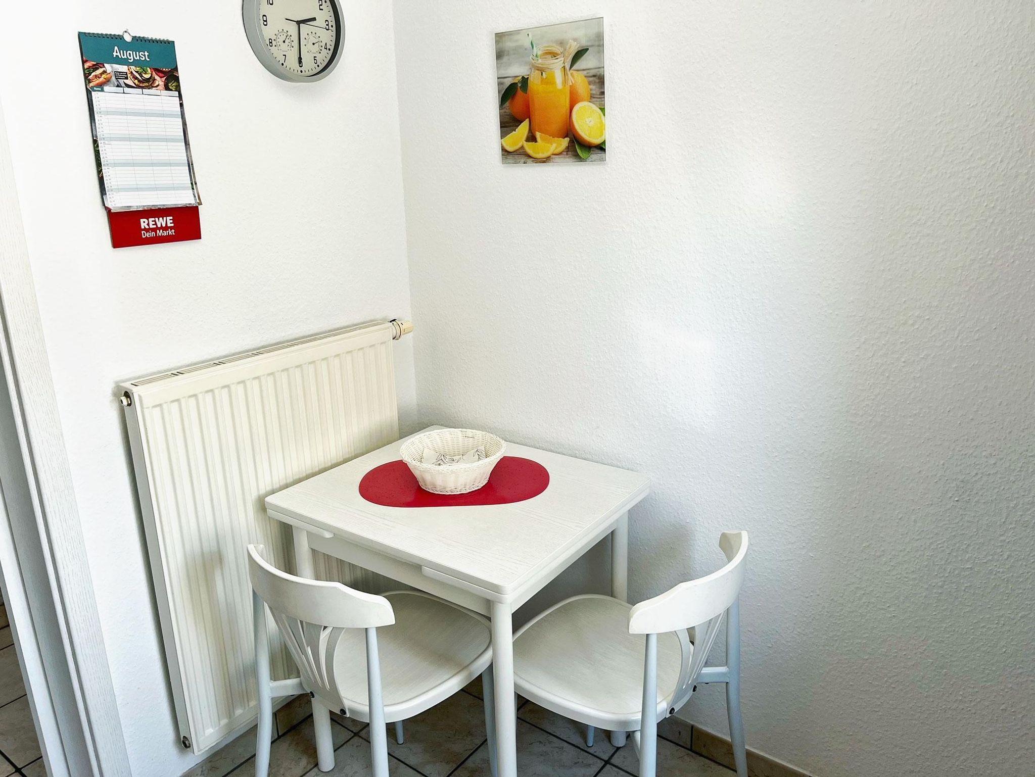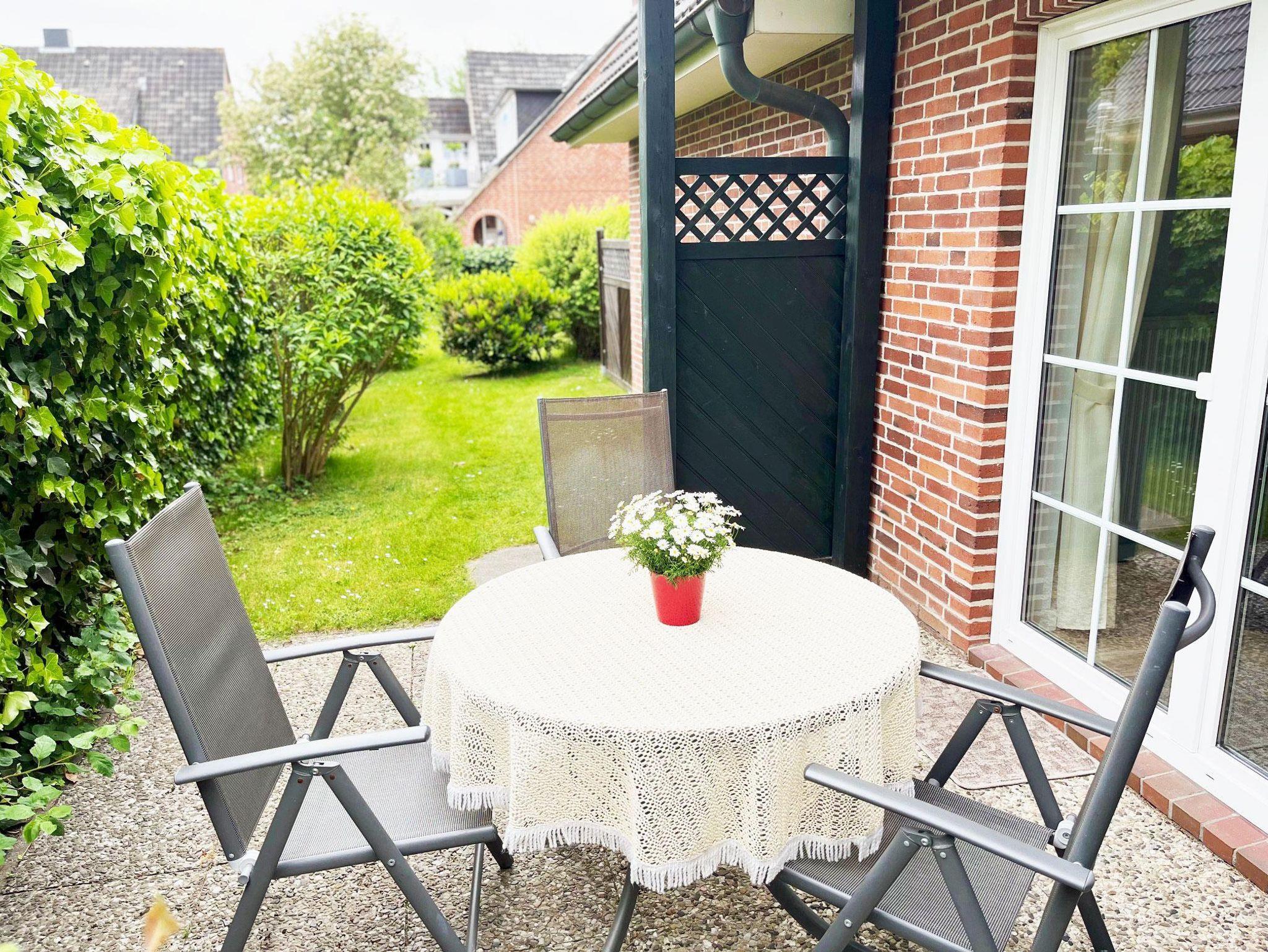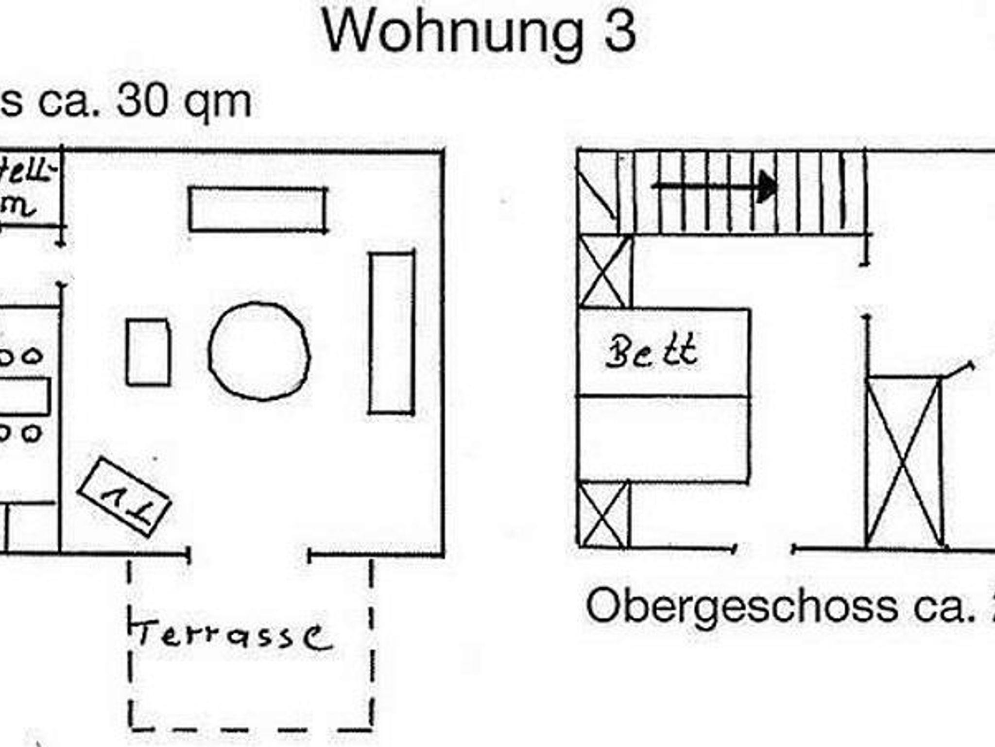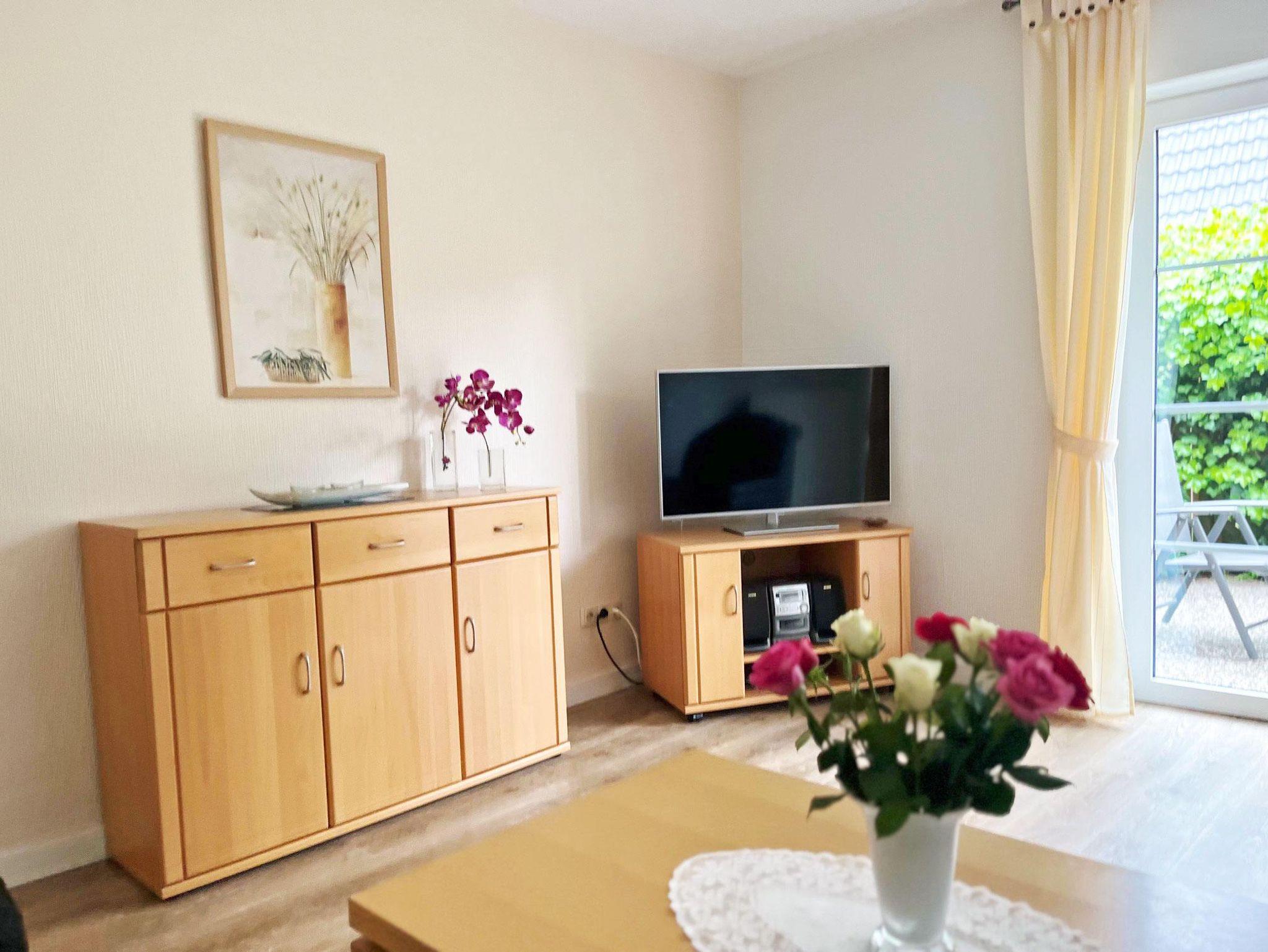 Die dritte Wohnung mit Südterrasse hat im Erdgeschoss ein Wohnzimmer mit Essecke, LCD-TV und Radio. Nichtraucherwohnung.