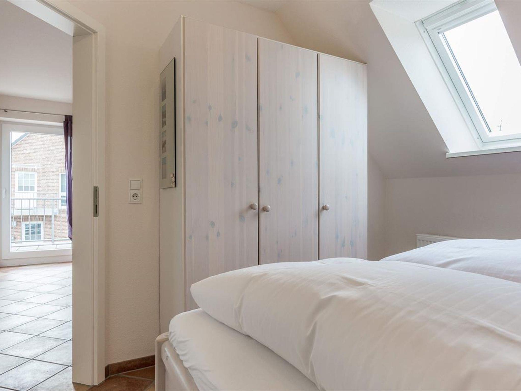• Ein Schlafzimmer mit Doppelbett (180x200cm) und Kleiderschrank.