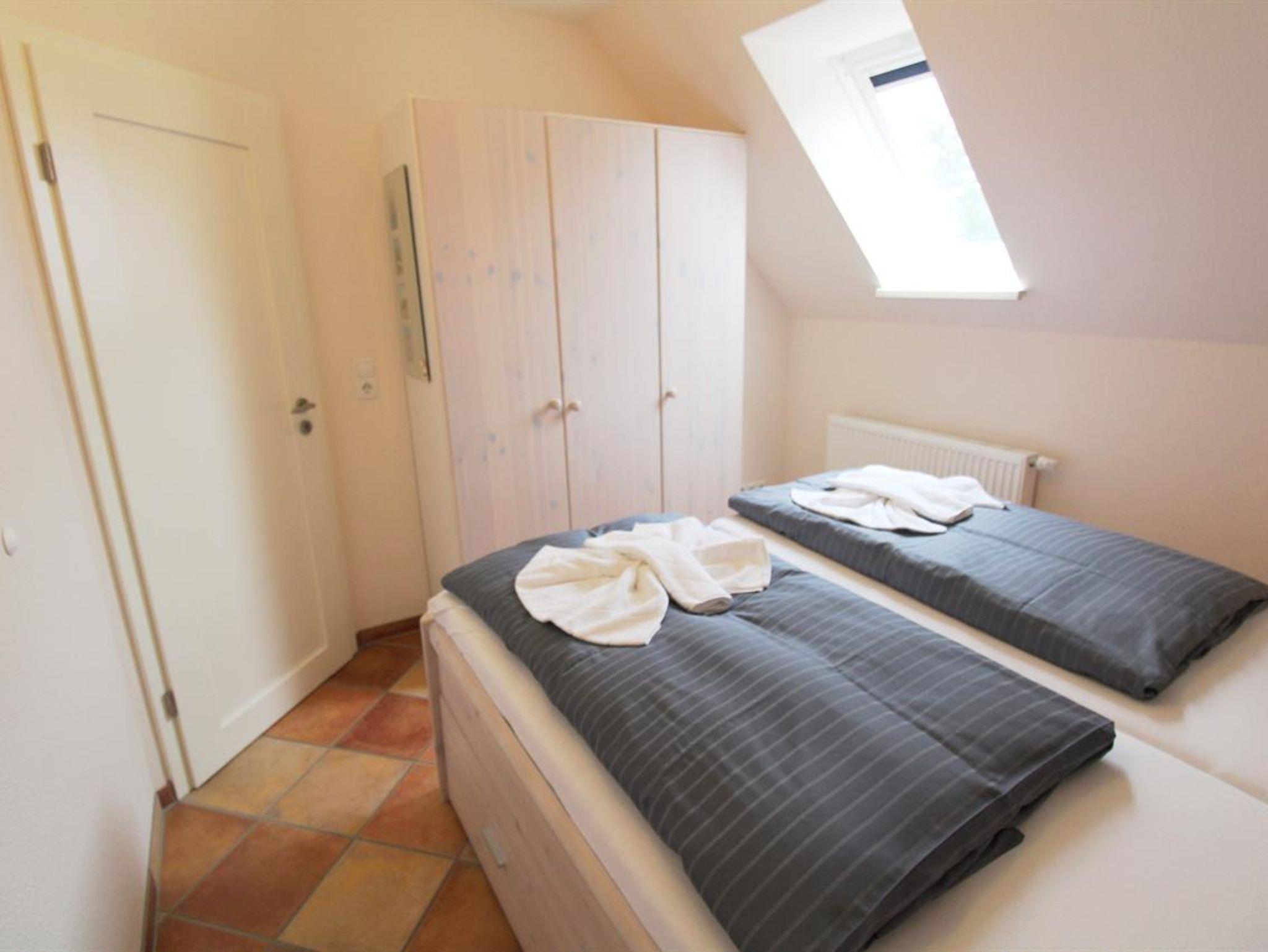 • Ein weiteres Schlafzimmer mit 2 Einzelbetten (je 90x200cm) im Spitzboden(erreichbar über Raumspartreppe) mit Schaukelstuhl und Spielecke.
