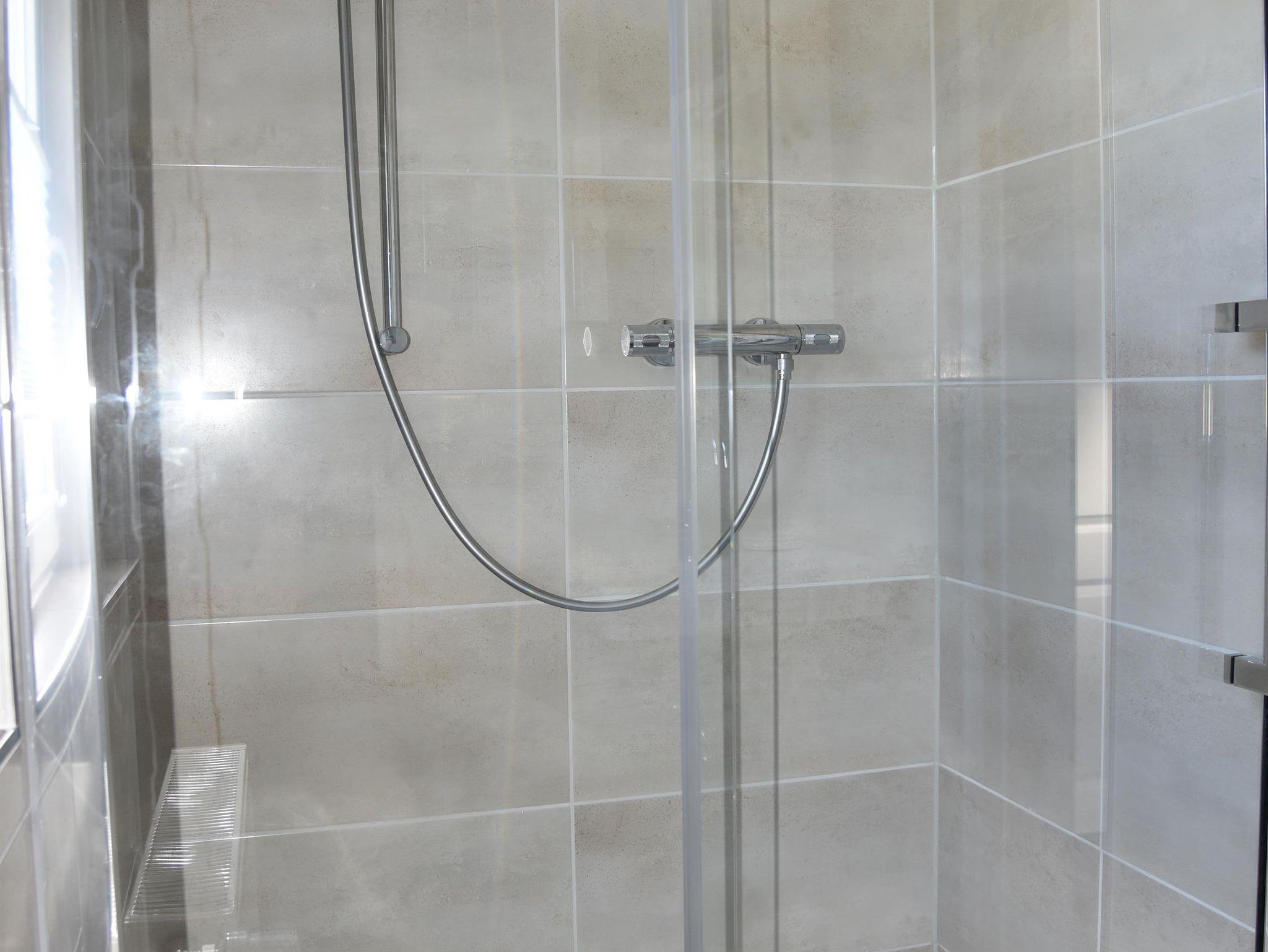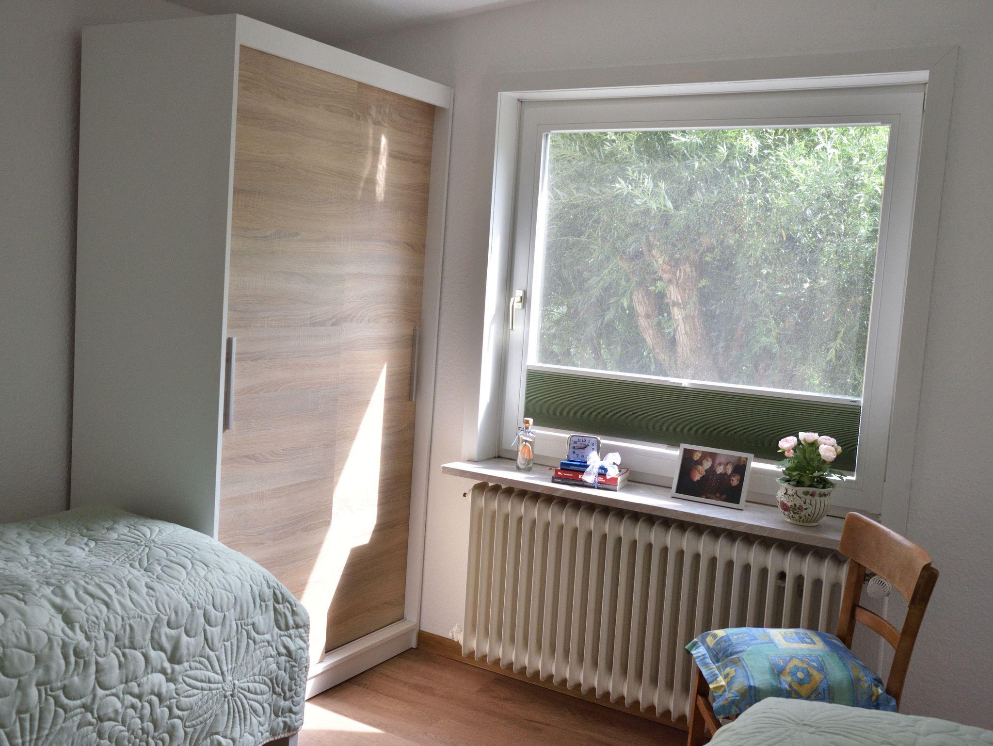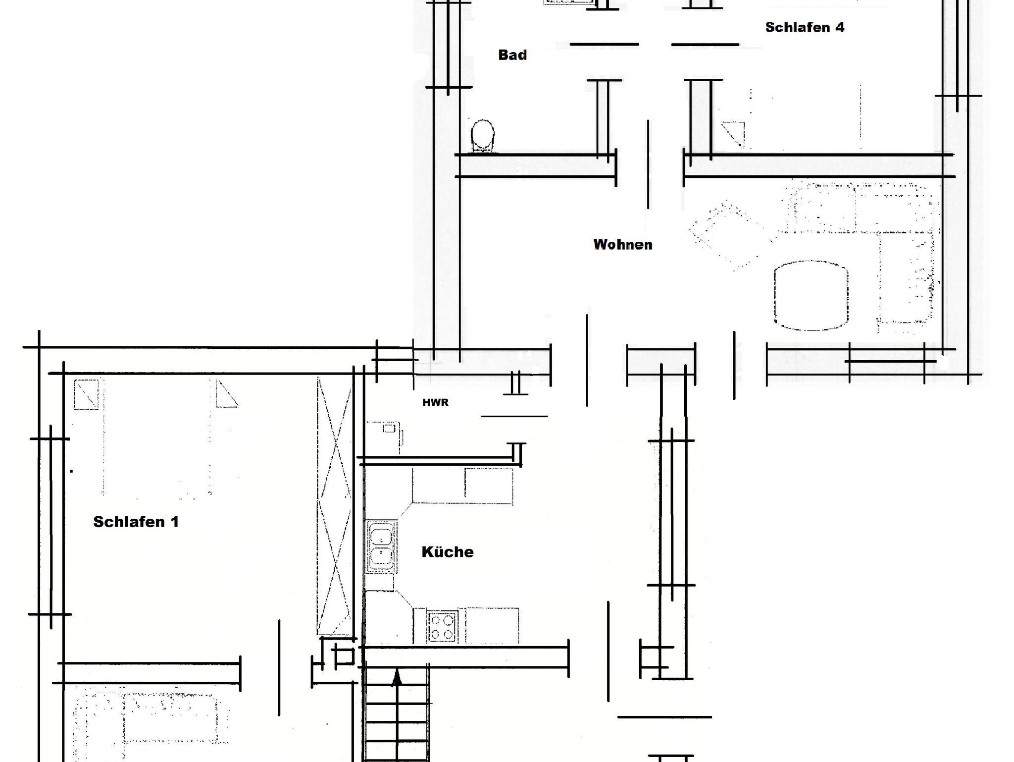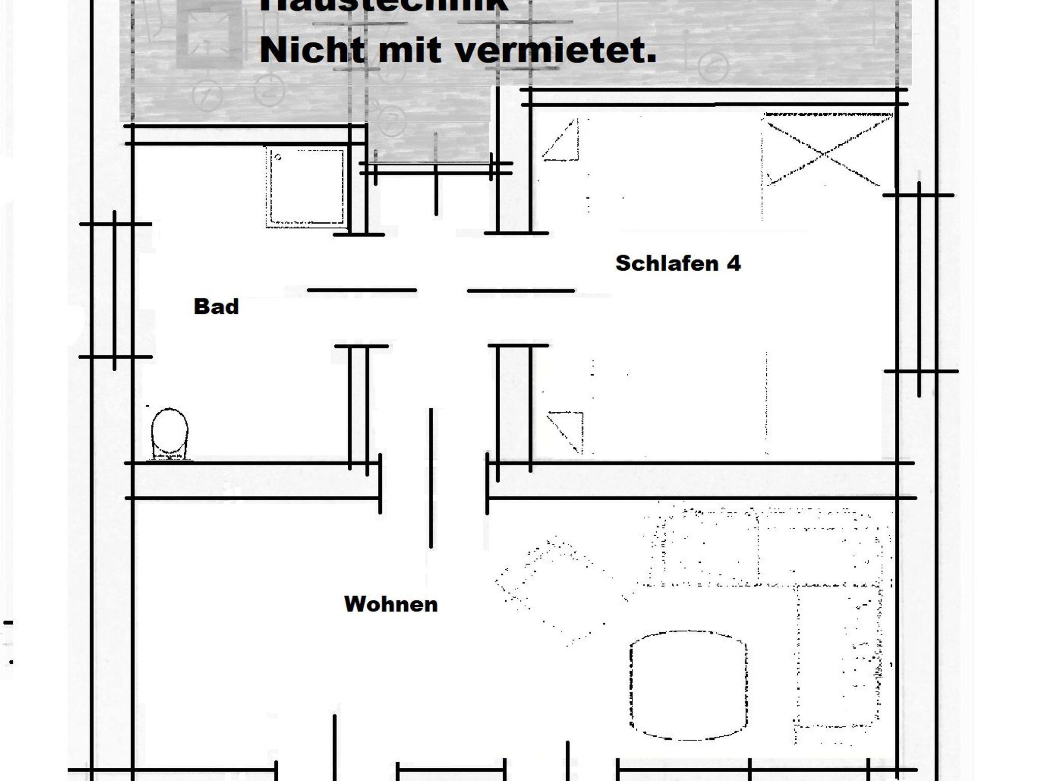 Den Anbau betreten Sie entweder über den Durchgang vom Essplatz in der Küche aus oder über den separaten Außeneingang. Im Anbau finden Sie einen weiteren Wohnbereich (mit riesigem Fernseher und großer Eckcouch) sowie vom Flur abgehend einen zusätzlichen Schlafraum und ein eigenes großzügiges Duschbad. Alle vier Schlafräume bieten entweder ein Doppelbett (EG und einer im OG Haus) oder je zwei Einzelbetten und Schränke.
