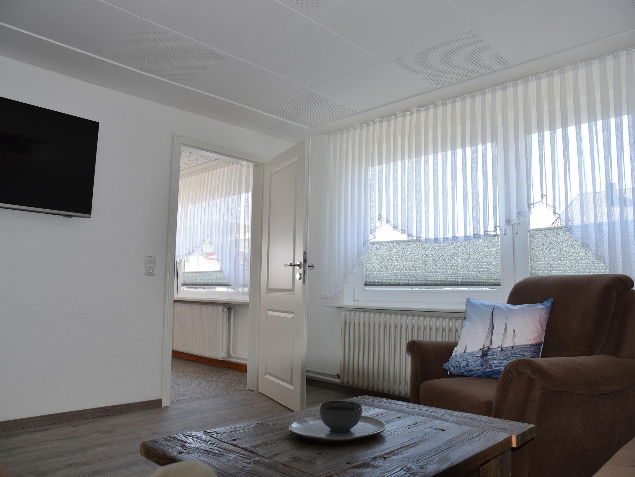 Aus der Diele gelangen Sie in das Wohnzimmer und von dort in das Schlafzimmer im Erdgeschoss.