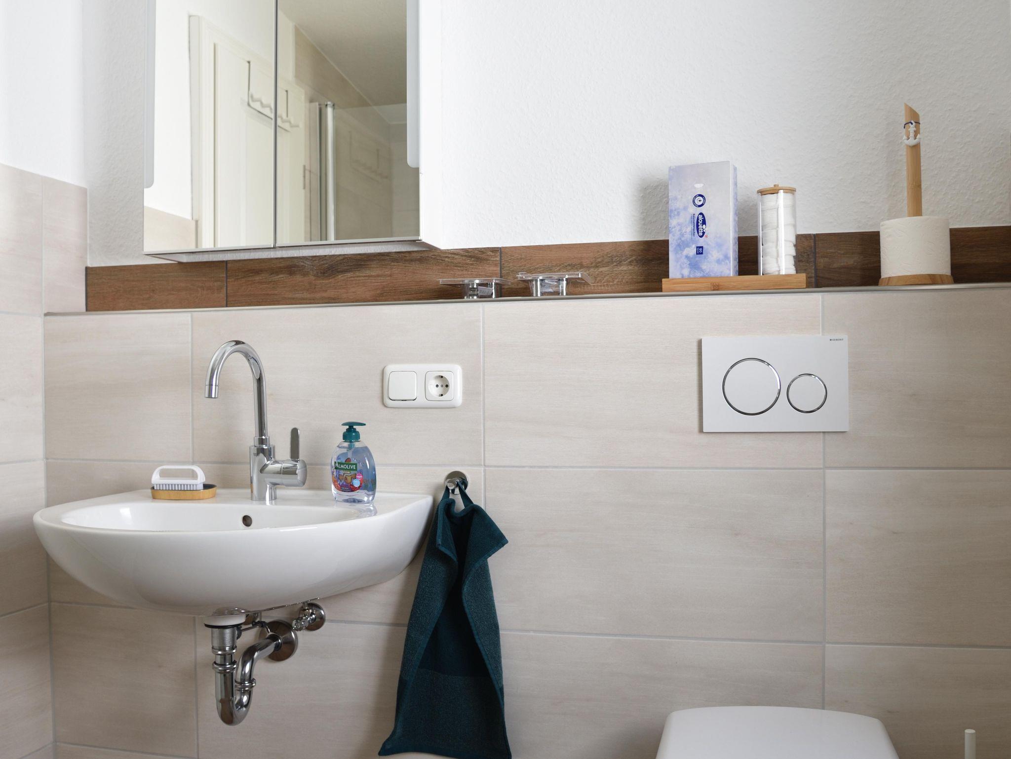 In der Diele befindet sich die Treppe in das Obergeschoss. Hier finden sich zwei weitere Schlafräume und ein Duschbad.