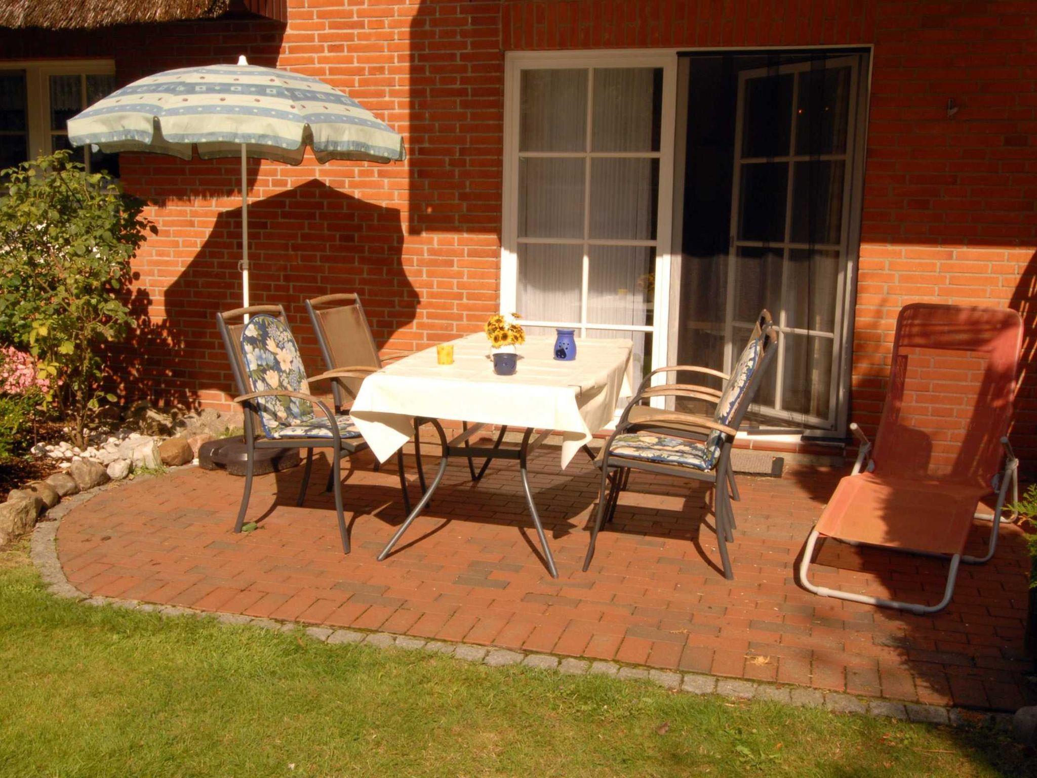 Terrasse: Lassen Sie die Seele baumeln auf der netten, teilüberdachten West-Terrasse am Fuße des Reetdaches - der perfekte Ort, um den Sonnenuntergang zu genießen und den Alltag hinter sich zu lassen.