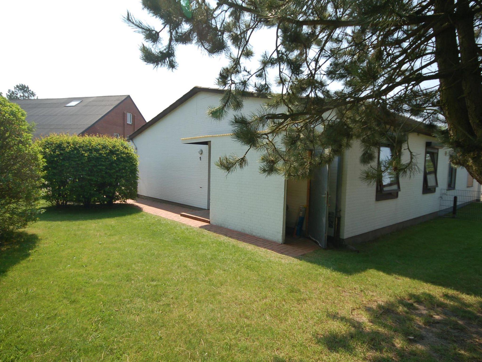 Das Ferienhaus Deichkönig liegt im Ortsteil Dorf, etwa 800m vom Ortskern und 400m vom Deich entfernt. Das große Grundstück ist überwiegend als Rasenfläche angelegt und wird regelmäßig von einem Gärtner gepflegt. Es ist vollständig eingezäunt und bietet Kindern herrliche Spielmöglichkeiten.