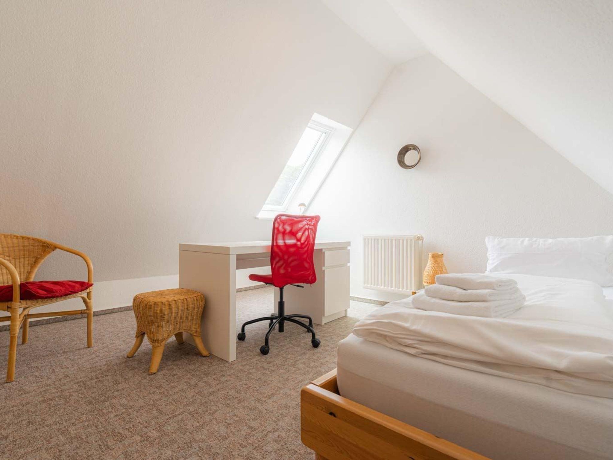 3. Schlafzimmer mit 1 Einzelbett (90x200cm), Sideboard, kleinem Schreibtisch, Stuhl und Sessel. Zugang über eine steile Treppe aus dem 2. Schlafzimmer.