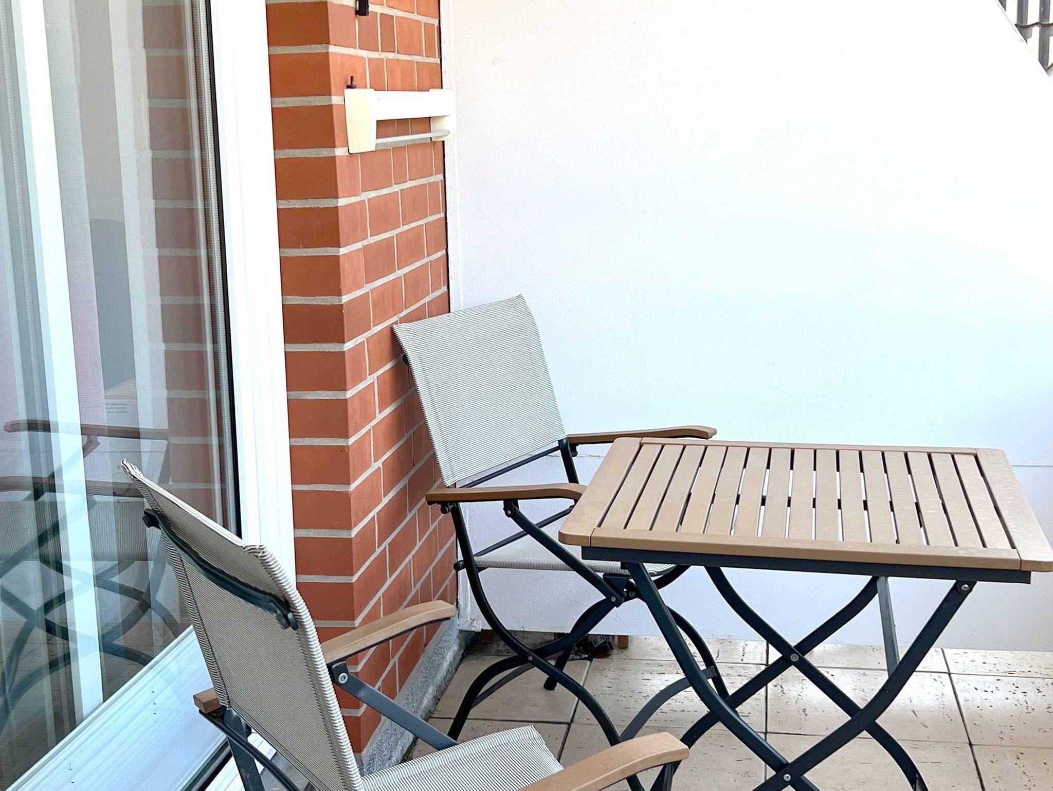 Balkon mit Aussicht:Genießen Sie tagsüber die frische Luft auf dem teil-überdachten Balkon in südwestlicher Ausrichtung, der einen idealen Platz zum Entspannen bietet.