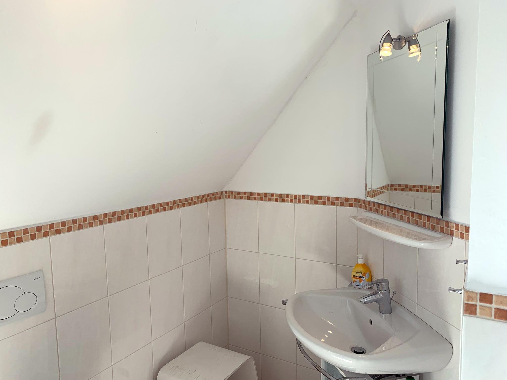 Bad: Dusche, Waschbecken, WC, Duschkabine
