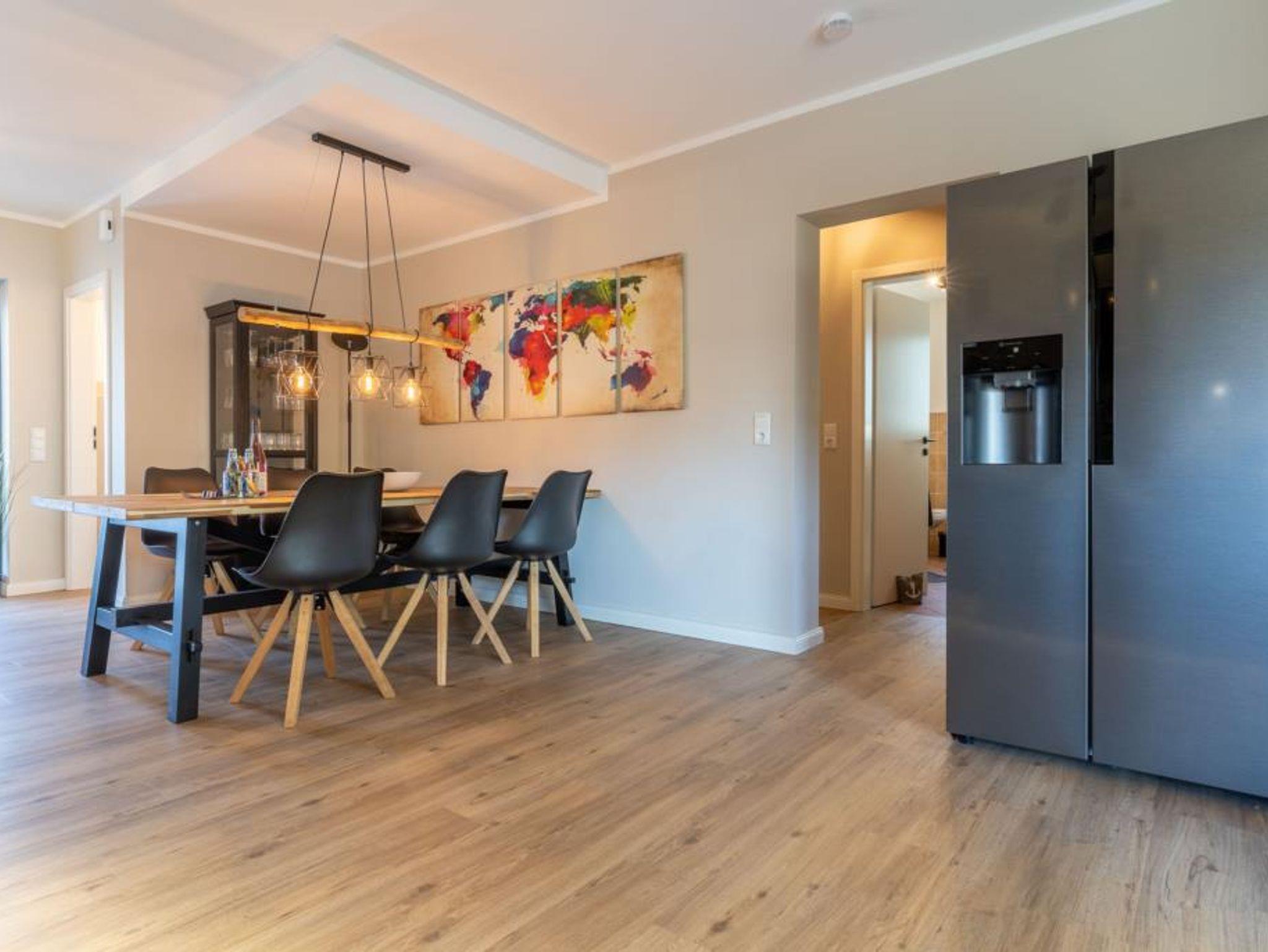 Die Wohnung „nordisch by nature“ ist eine 4 Zimmer-Wohnung mit ca. 90 m² Wohnfläche. Sie verfügt über 2 Schlafzimmer mit Doppelbetten (180cm x 200cm) sowie einem ausziehbaren Schlafsofa 2 Personen (140cm x 200cm). 1 Bad mit Dusche & WC, 1 Bad mit WC und eine große moderne und hochwertig ausgestattete Küche. Ein riesiges Wohnzimmer und das Esszimmer mit einer Esstafel bieten Raum und Gelegenheit für tolle Abende mit Familie und Freunden. Außerdem bietet die Wohnung Zugänge zu den Terrassen auf beiden Seiten des Hauses und einen hochwertigen Elektrogrill von Weber. Darüber hinaus besteht die Möglichkeit den Wohnraum um ca. 25 m² gegen Aufpreis zu erweitern. Die Wohnraumerweiterung besteht aus einem 1-Zimmer-Appartment mit einem Doppelbett (160cm x 200cm), Einbauküche, Badezimmer mit Dusche & WC und Zugang zur Terrasse im Gartenbereich.