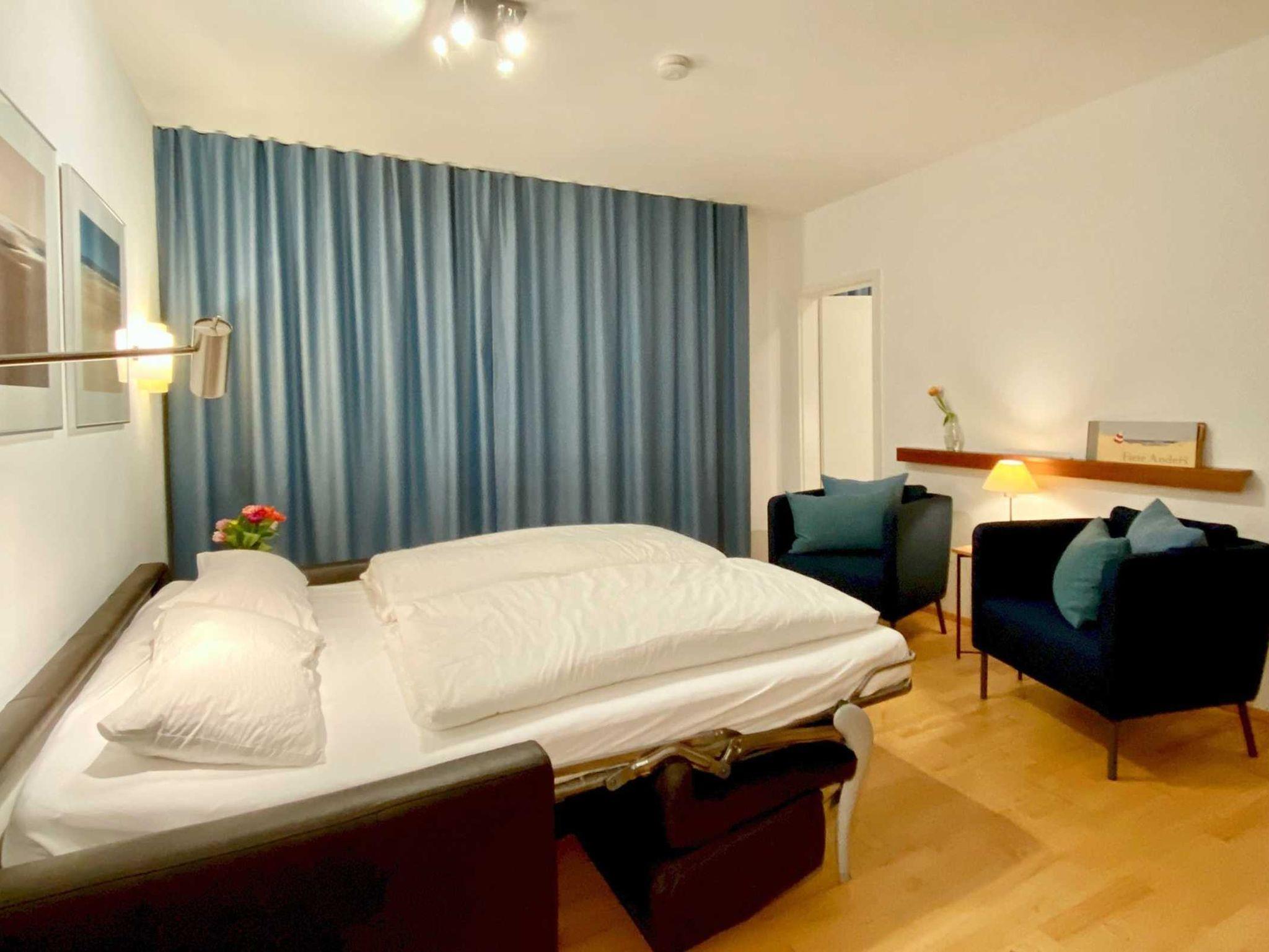 In der 1. Etage bietet Ihnen die freundliche 2-Raum-Ferienwohnung Haus Nordsee Nr. 05 Platz für bis zu 3 Personen.
