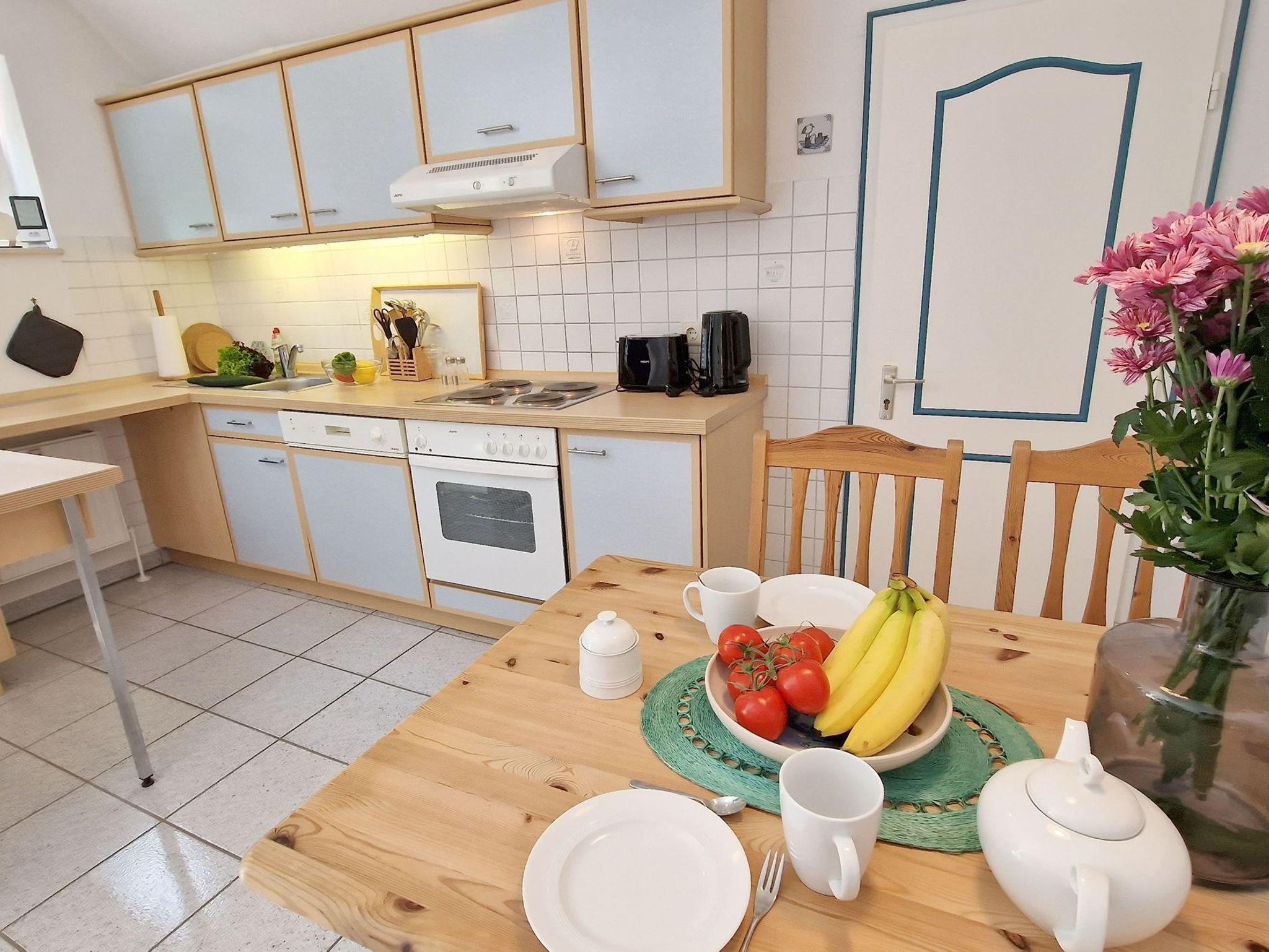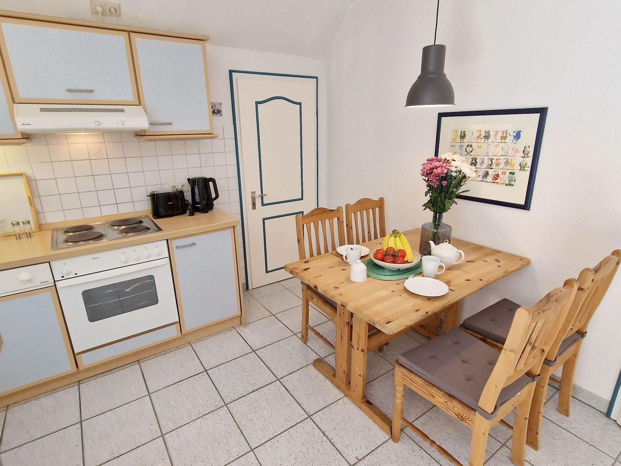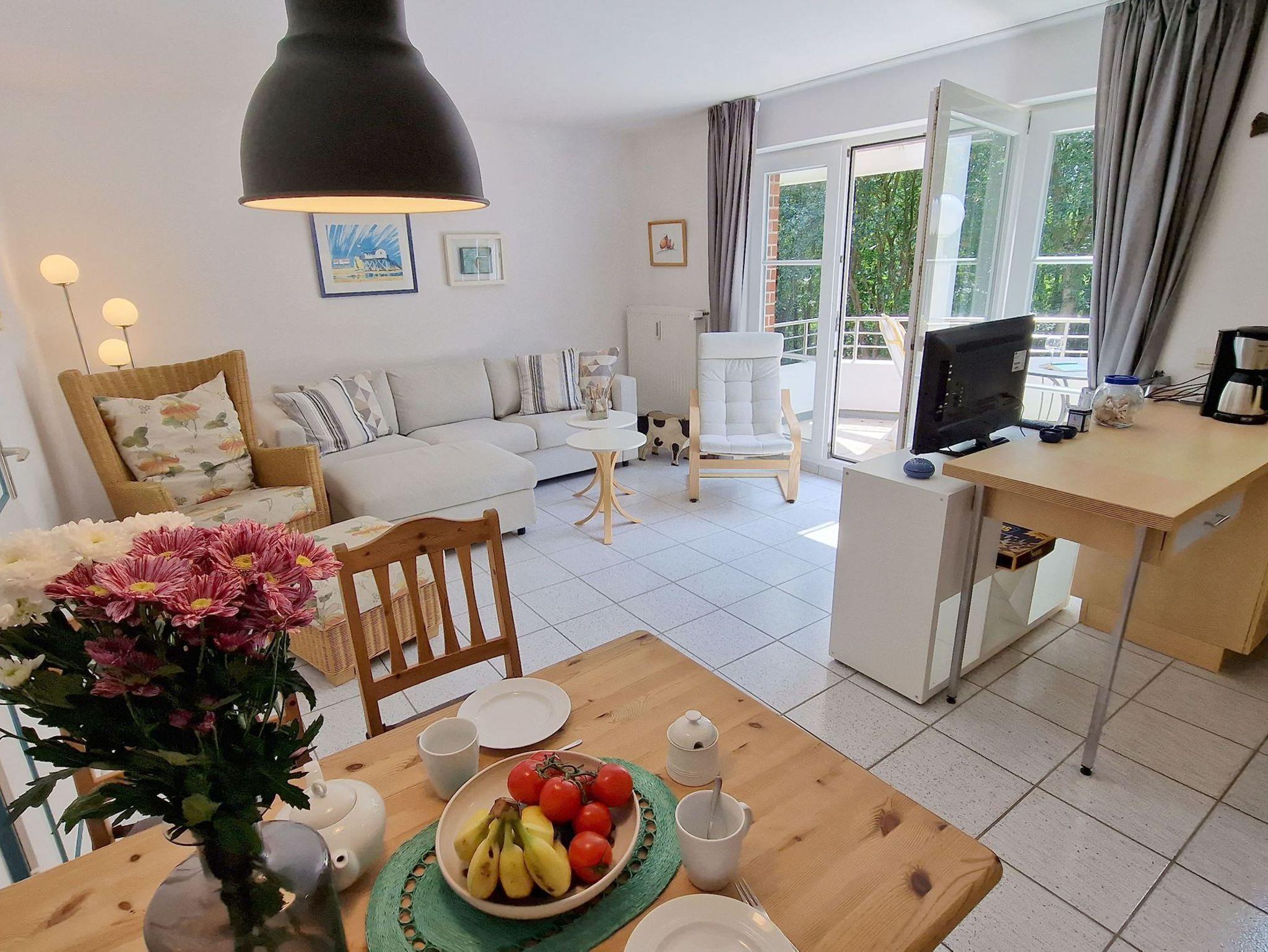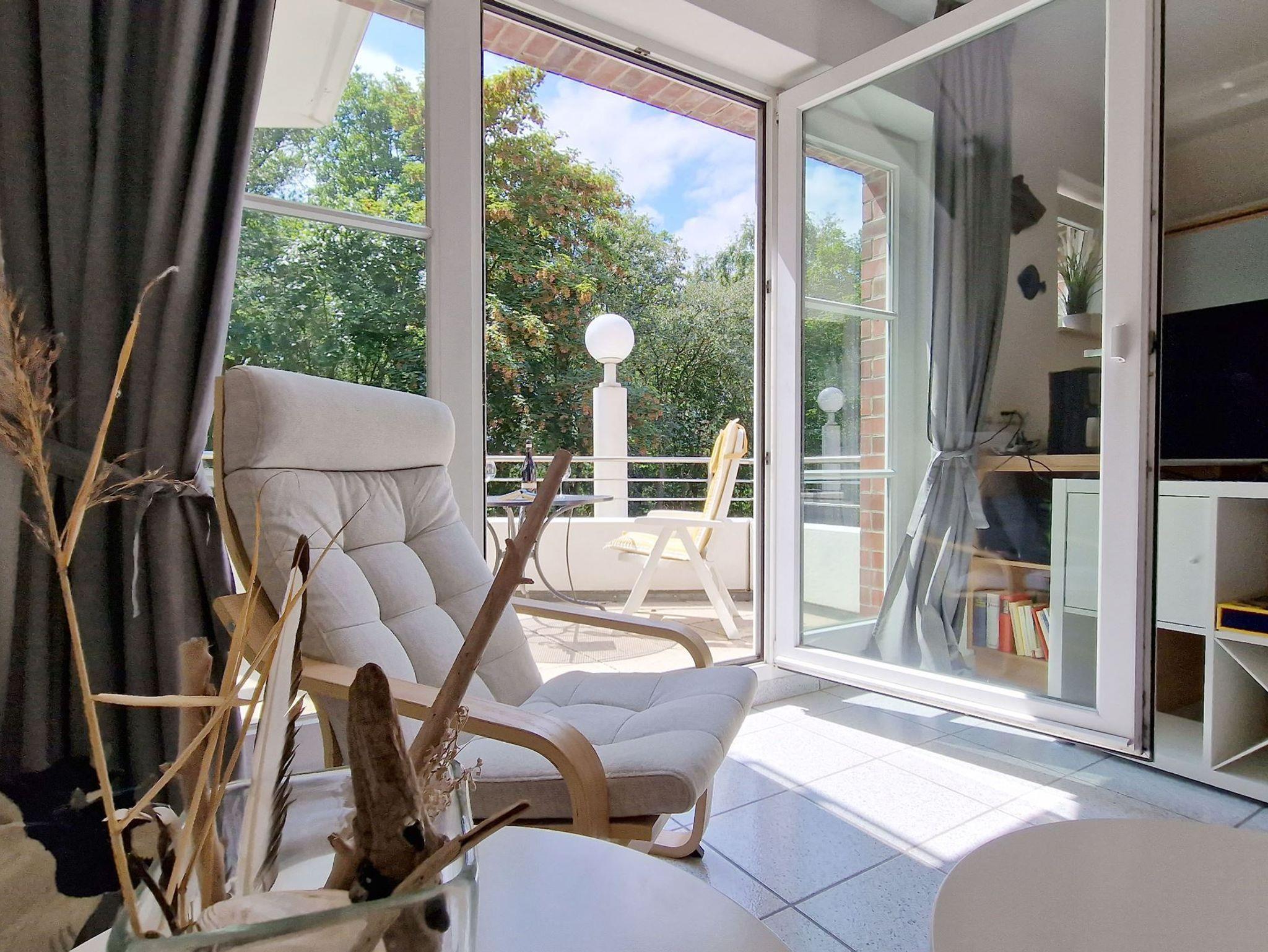 Das 60 Quadratmeter große Ferien-Appartement ist für einen Urlaub an der Nordsee die ideale Ruhe-Oase. Dazu passt der Spruch Ihres Domizils ideal: Gönne dir einen Augenblick der Ruhe und achte auf das, was dir Freude macht. Bis zu vier Personen können es sich hier gut gehen lassen. Das Urlaubsdomizil ist hell und modern eingerichtet und liegt im 2ten Obergeschoß. Frische Farben, Bilder und Accessoires sorgen für Akzente. Das Wohnzimmer ist großzügig geschnitten, bietet viel Platz zum Kuscheln auf dem Sofa. Genießen Sie darüber hinaus den großen Südbalkon oder essen Sie entspannt am Esstisch. Die Küche ist offen und mit Geräten wie Herd, Kühlschrank, Spülmaschine, Toaster etc. voll ausgestattet. Den großen Südbalkon mit Strandkorb können Sie vom Wohnzimmer aus betreten. Ob beim Sonnenbaden im Strandkorb oder beim Frühstück im Freien ? die frische Nordseeluft erfrischt so oder so Körper und Seele. Großer Fahrradkeller, Stellplatz Nr.05 & WLAN sind ebenfalls kostenlos enthalten.