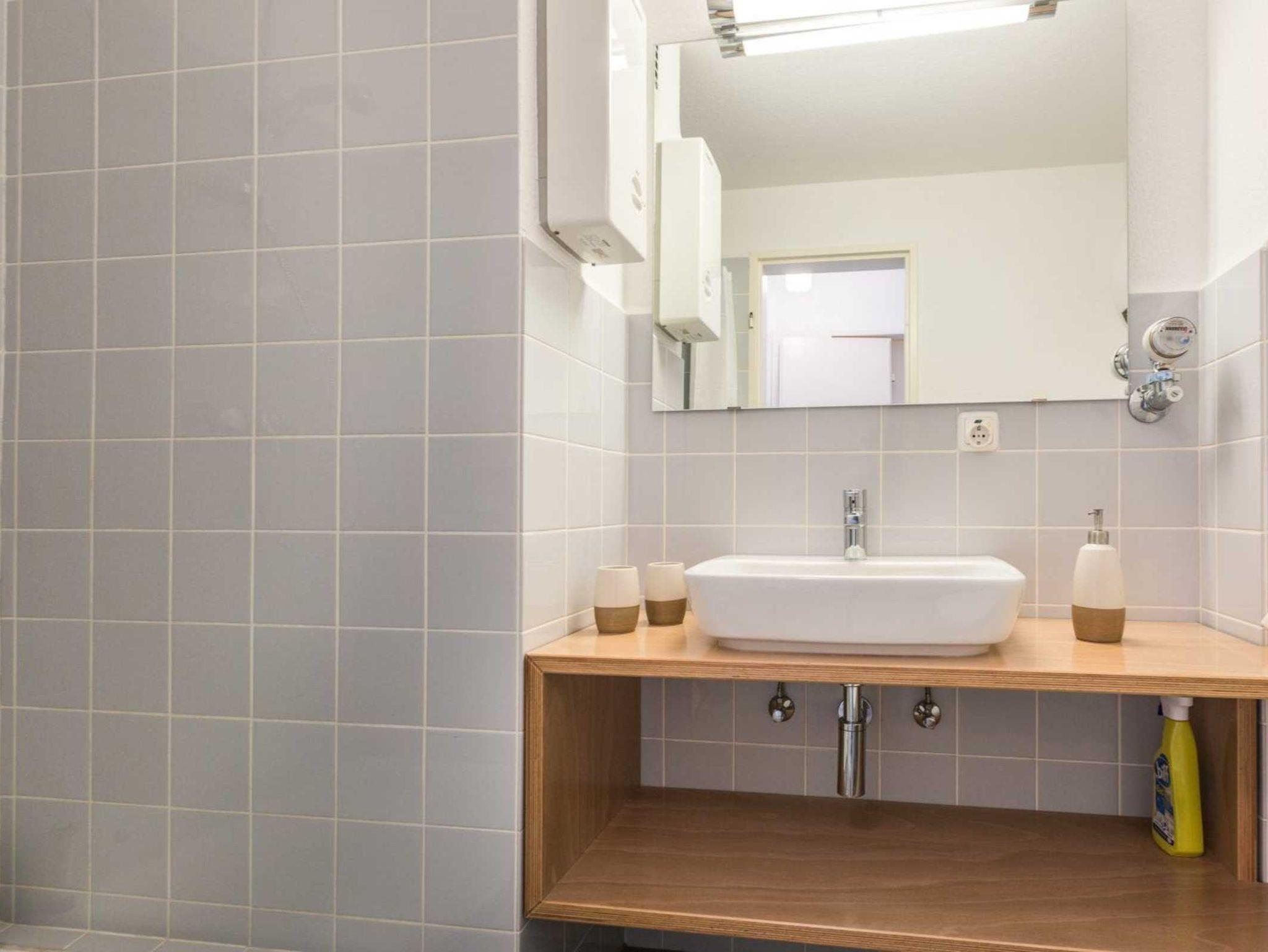 Pkw-Stellplatz vor dem Haus. Fahrradabstellraum (nach Verfügbarkeit), gemeinschaftlicher Tischtennisraum, gemeinschaftliche Waschküche mit Waschmaschine und Trockner gegen Gebühr, Wellnessbereich mit Sauna gegen Gebühr im EG des Hauses vorhanden. Kostenloses WLAN.