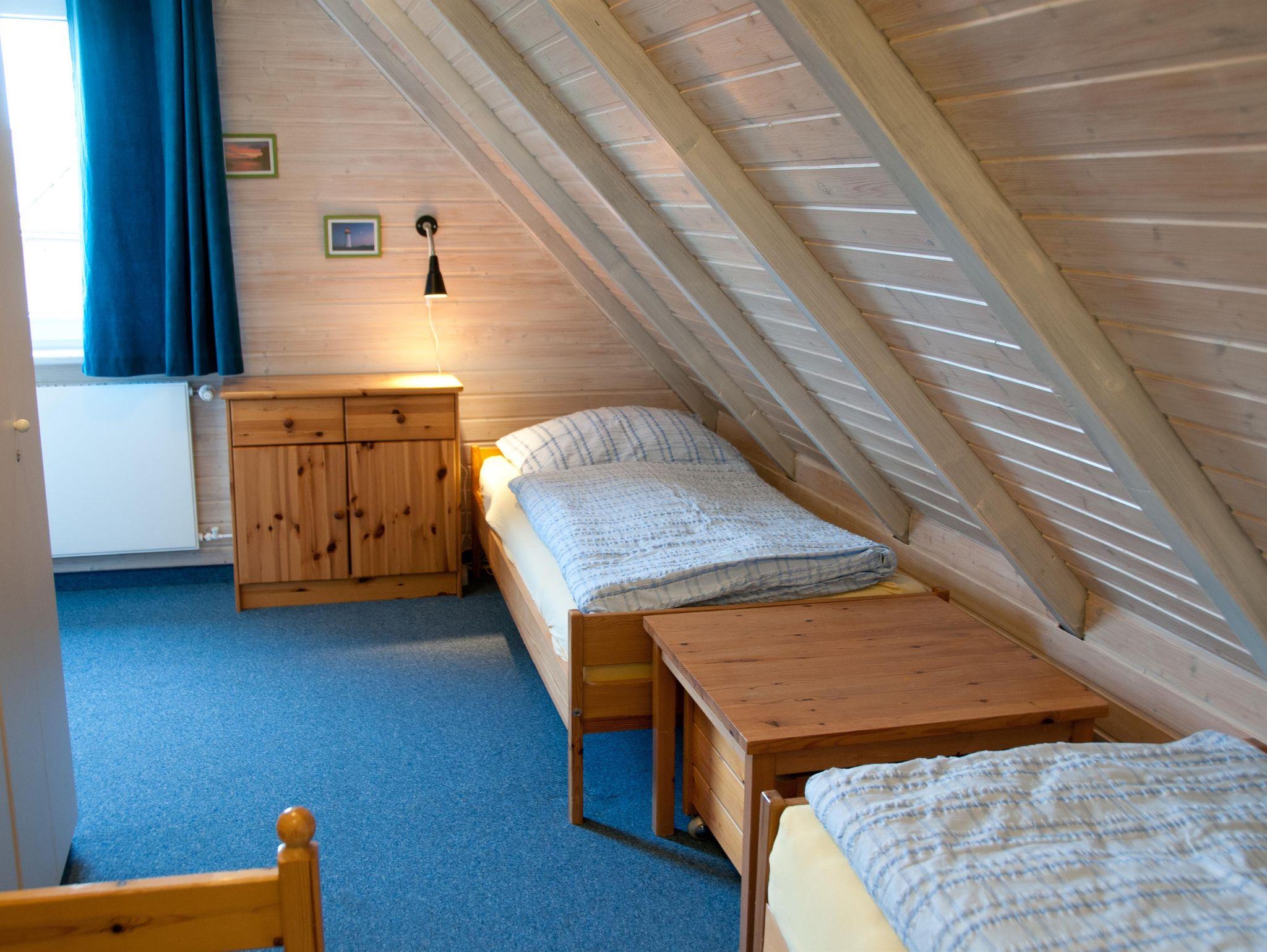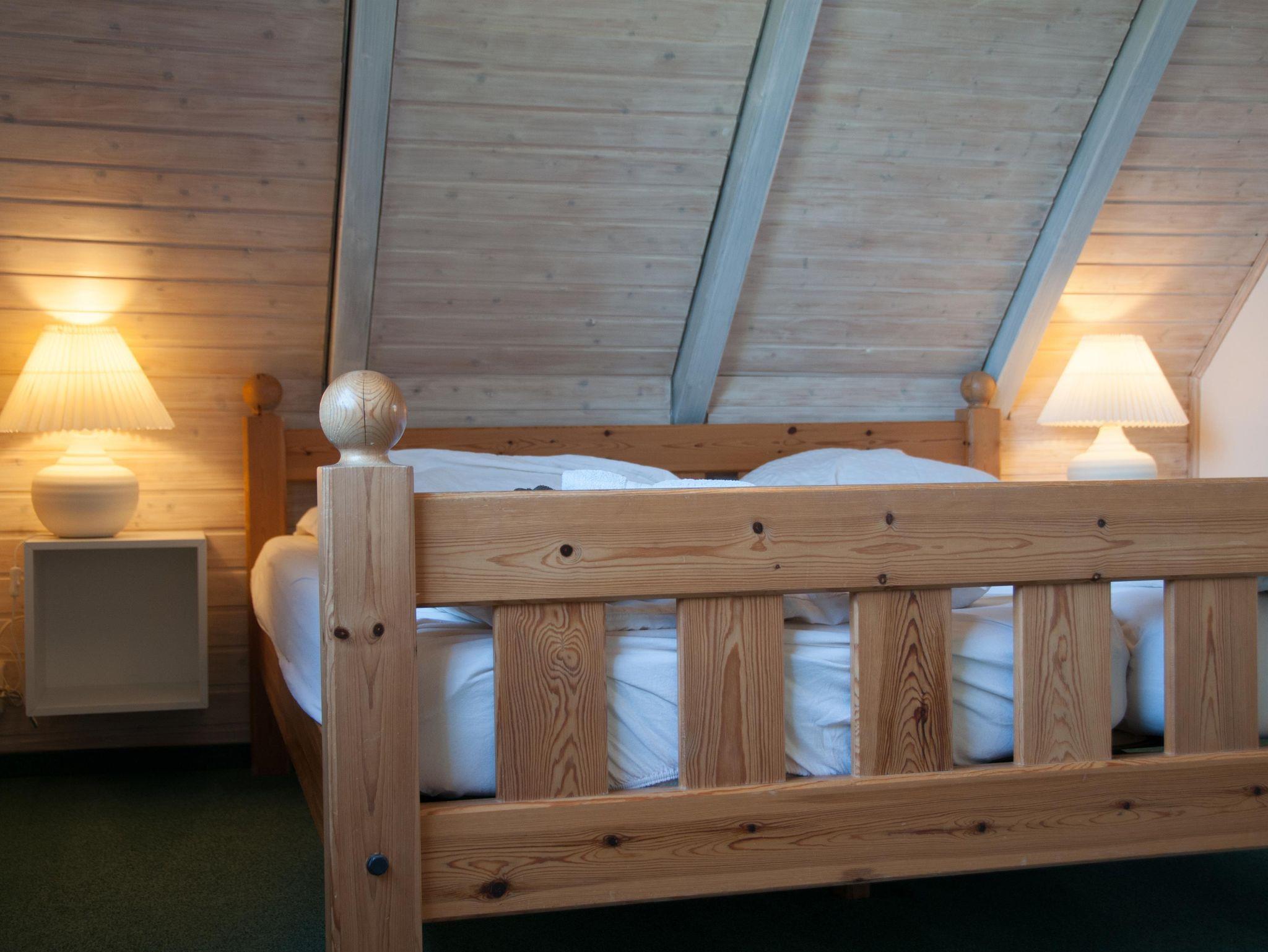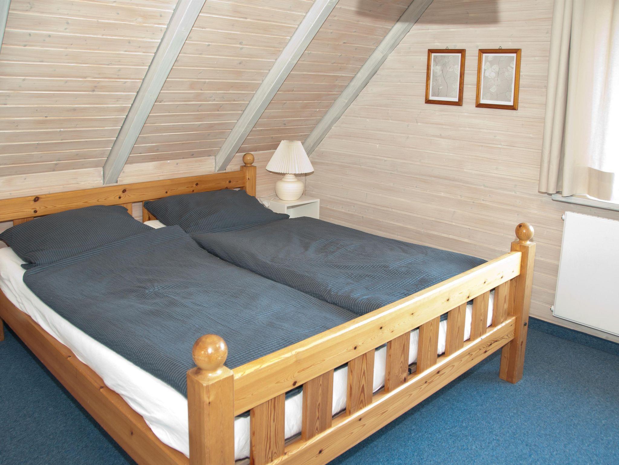 Der Schlafraum im Obergeschoss wartet mit einem Doppelbett mit 2 Matratzen, (Liegefläche 170 x 200 cm) auf Sie. Hier würde auch ein Kinderbett mit 70 x 140 cm auf Vorbestellung seinen Platz finden.