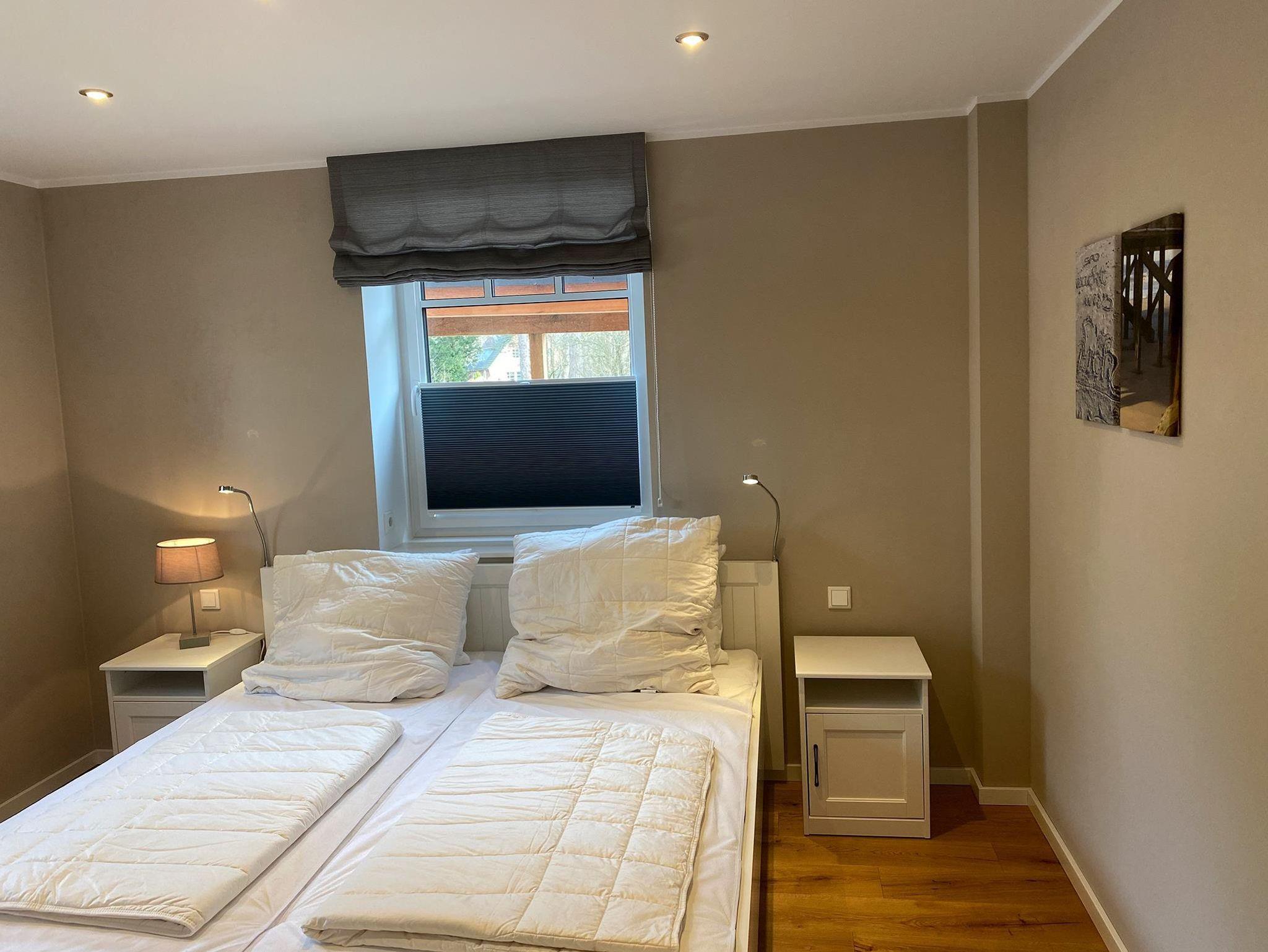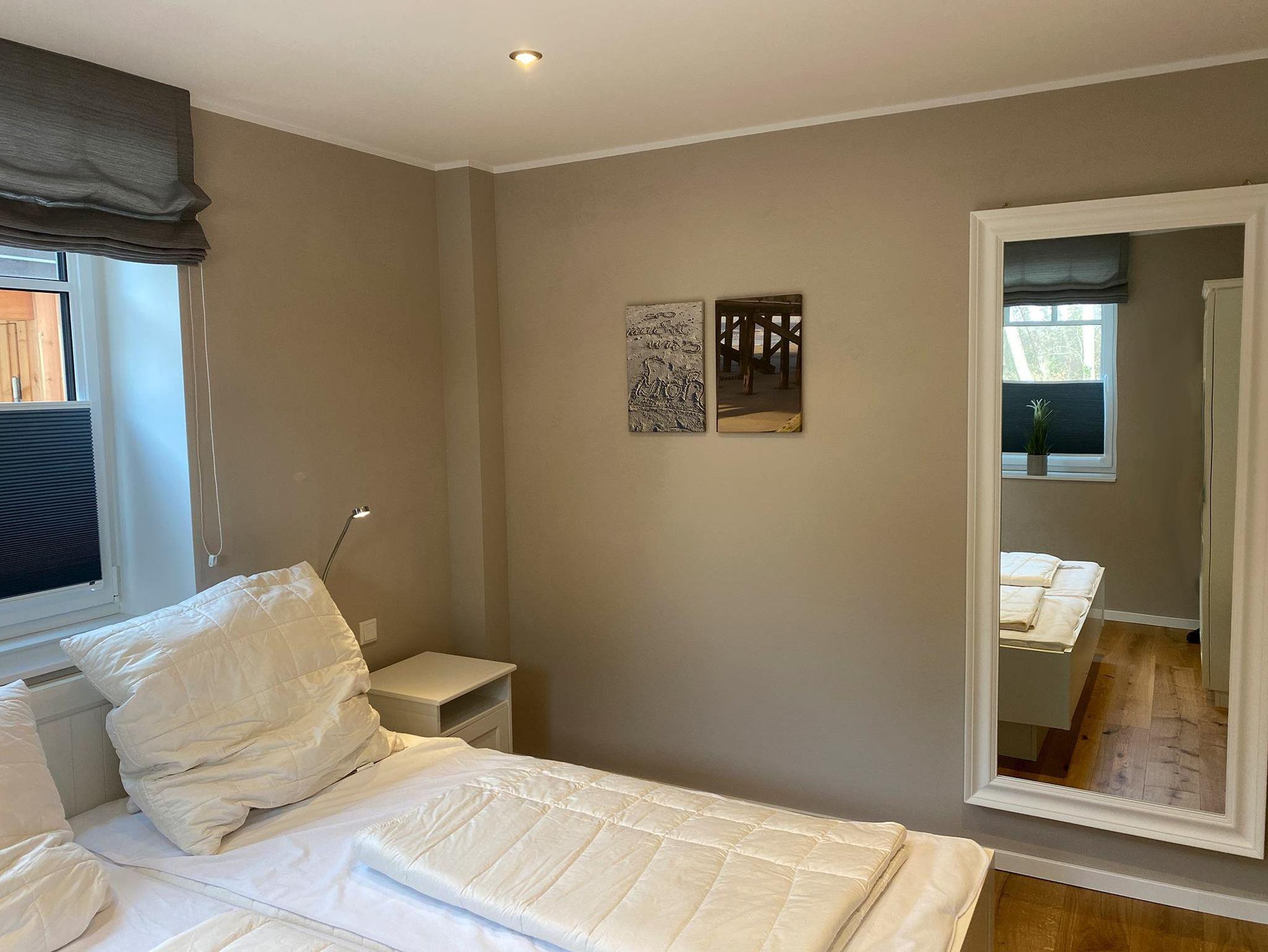 Schlafzimmer: Doppelbett; 2 Nachttische;Spiegel;Kleiderschrank