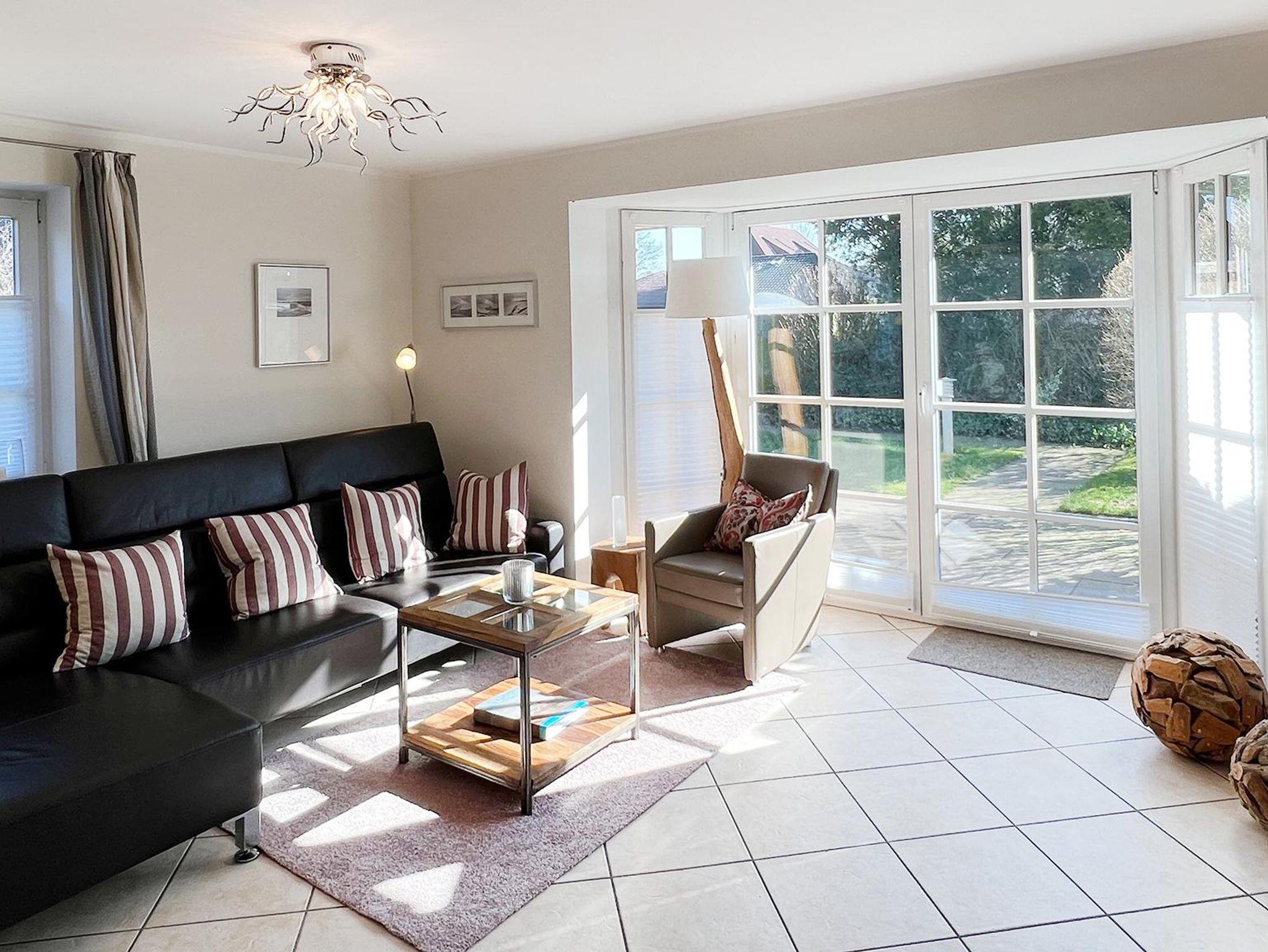 Für Entertainment im Haus ist gesorgt: TV mit Kabelanschluss, DVD Player, Sky Sport HD (Bundesliga, Championsleague, Formel 1, Handballchampionsleague) & Sky Welt, WLAN sowie BOSE-Anlage mit IPod Hub. Für Ihr Wellnessprogramm: Im Untergeschoss finden Sie eine Infrarotsauna und Trainingsrad zur freien Benutzung bereit. Sie finden hier ebenso Waschmaschine und Trockner. Es gibt ein komplett eingezäuntes und liebevoll angelegtes ca. 500 qm großes Grundstück mit einer im Sommer nicht einsehbaren Oase samt Gartenpavillon für gemütliche Stunden. Eine schöne Südterrasse mit Gartenmöbeln aus Holz für 6 Personen wird von einem dazu gehörenden Strandkorb vervollständigt. Auch ein Grill steht für unsere Gäste bereit. Eine Garage mit Abstellraum für Fahrräder, sowie ein zweiter Stellplatz ist vorhanden.