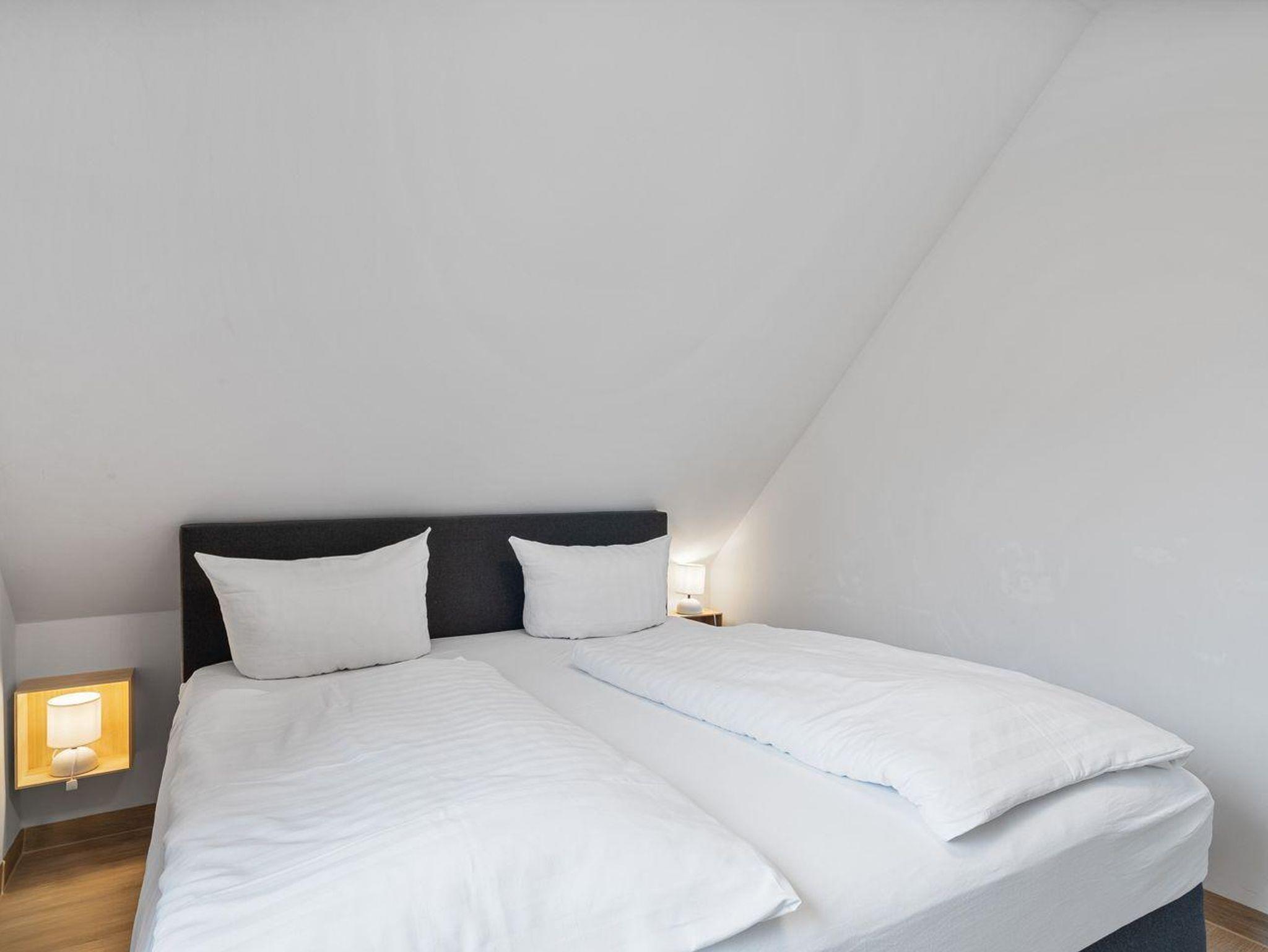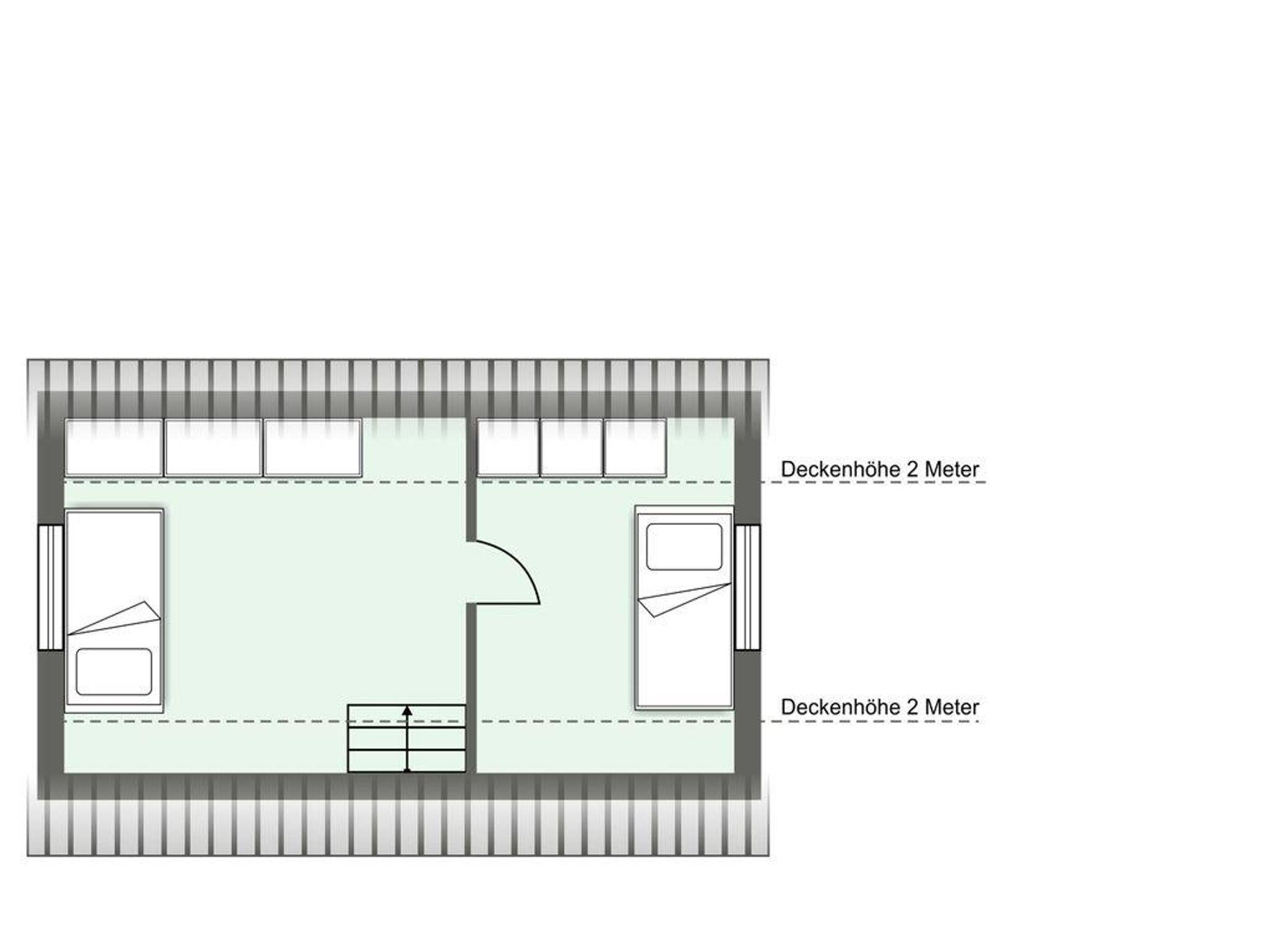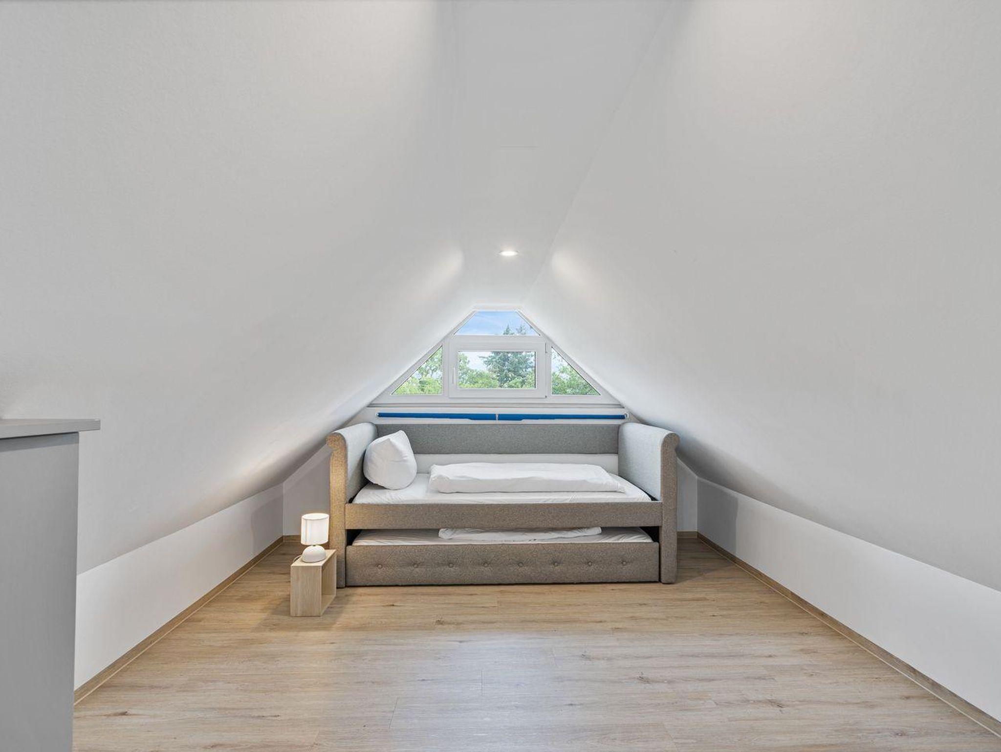 Über eine Treppe innerhalb der Wohnung gelangen Sie ins Dachgeschoss. Dort befinden sich zwei weitere Schlafräume mit praktischen Einzelbetten.