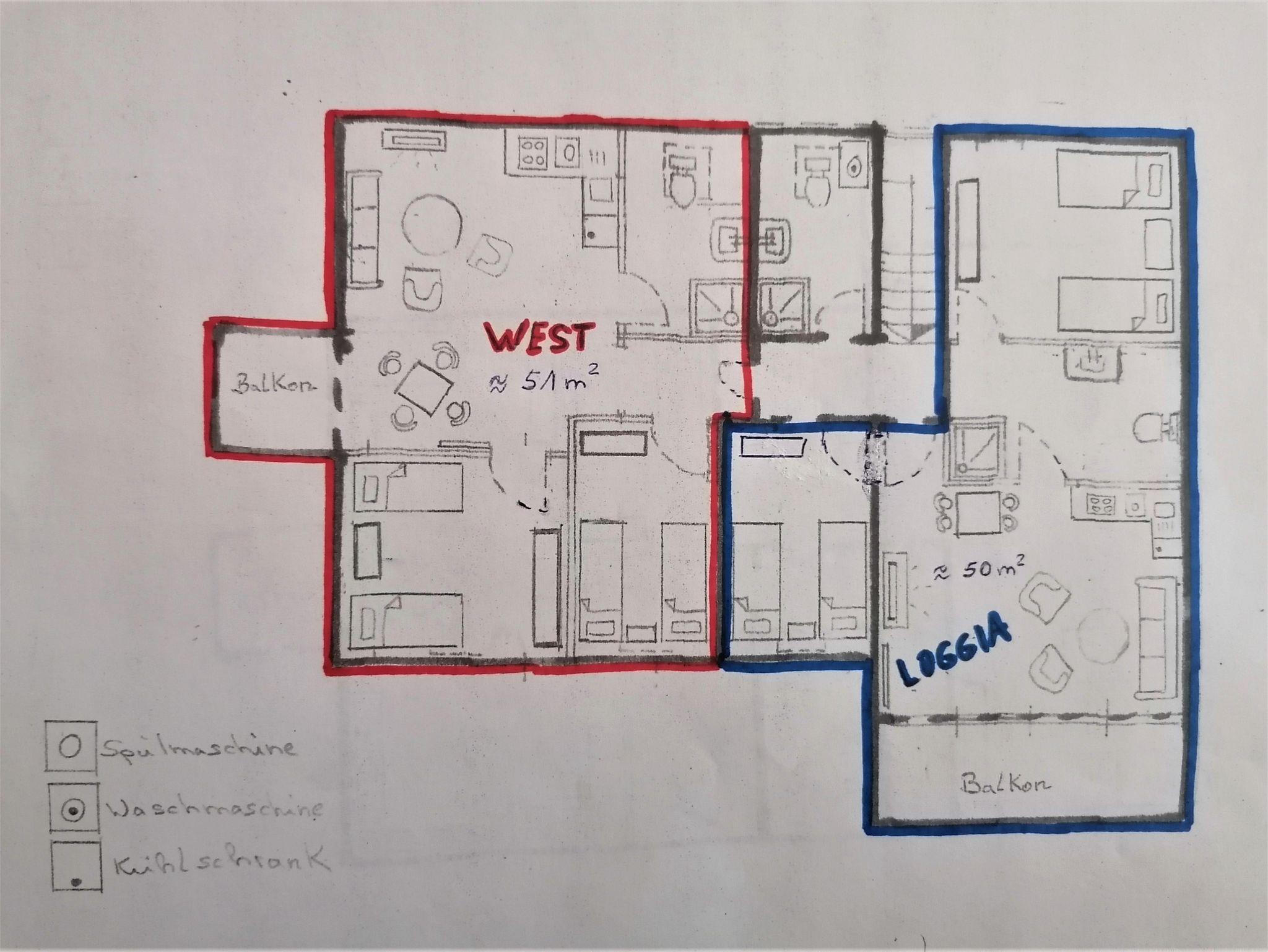 Unsere Ferienwohnung West bietet Platz für bis zu 4 Personen.