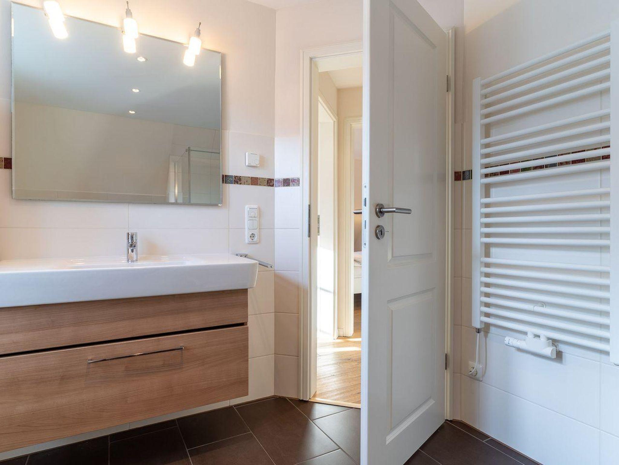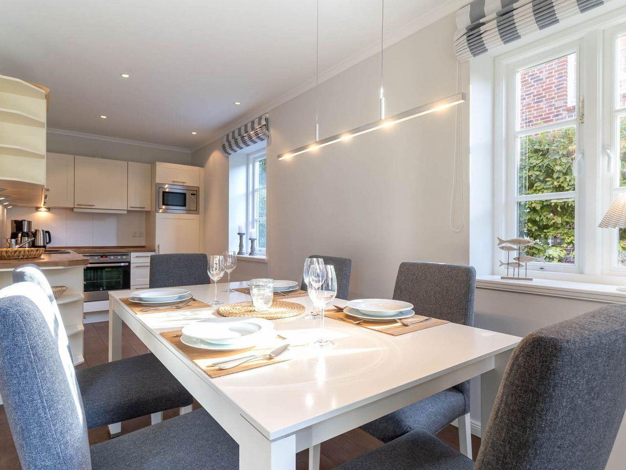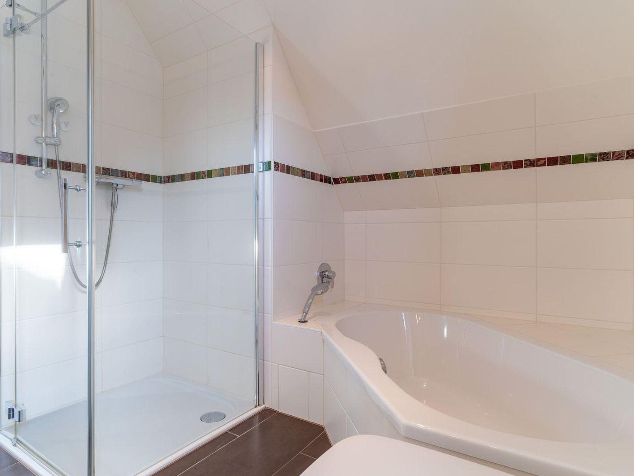 Im Erdgeschoss befindet sich der lichtdurchflutete Wohnraum mit TV, Kamin, einer offenen Küche sowie einem stilvollen Essbereich. Die Küche verfügt über hochwertige Elektrogeräte. An den Wohnbereich schließen sich ein Flur, ein Duschbad und ein Abstellraum. Über eine Holztreppe gelangen Sie in das Obergeschoss mit zwei großzügigen Schlafzimmern, ein Doppelschlafzimmer und ein Schlafzimmer mit zwei Einzelbetten. Die Schlafzimmer sind mit geräumigen Schränken ausgestattet, in einem finden Sie zudem einen Schreibtisch an dem es sich prima von Zuhause aus arbeiten lässt. Darüber hinaus befindet sich im Obergeschoss ein weiteres, geräumiges Bad mit Dusche und einer Eckbadewanne. Über eine weitere Holztreppe geht es vom Flur ins Dachgeschoss mit einem gemütlichem Doppelbett. Im Erd- und Obergeschoss sorgt eine Fußbodenheizung für ein angenehmes Raumklima.