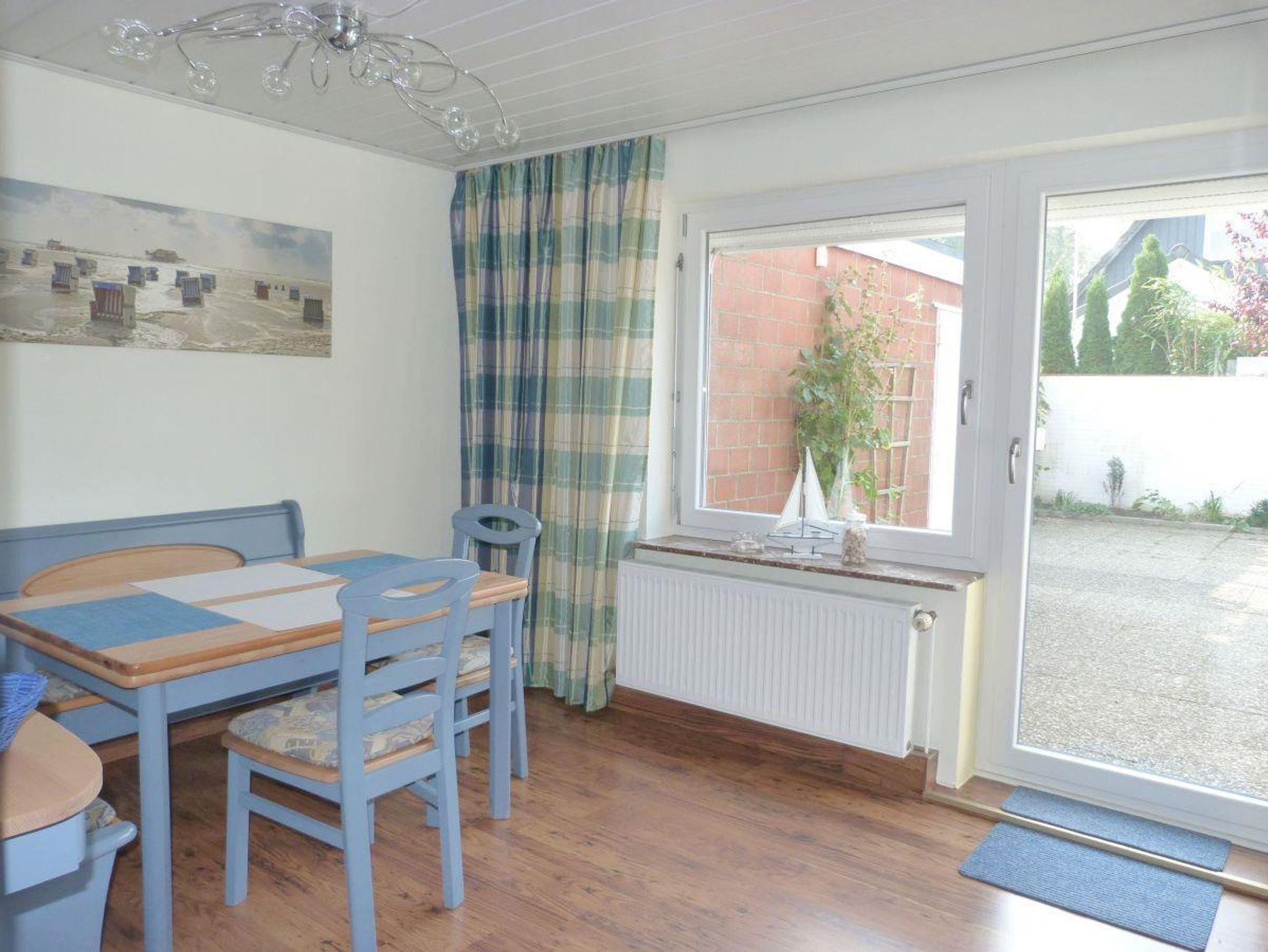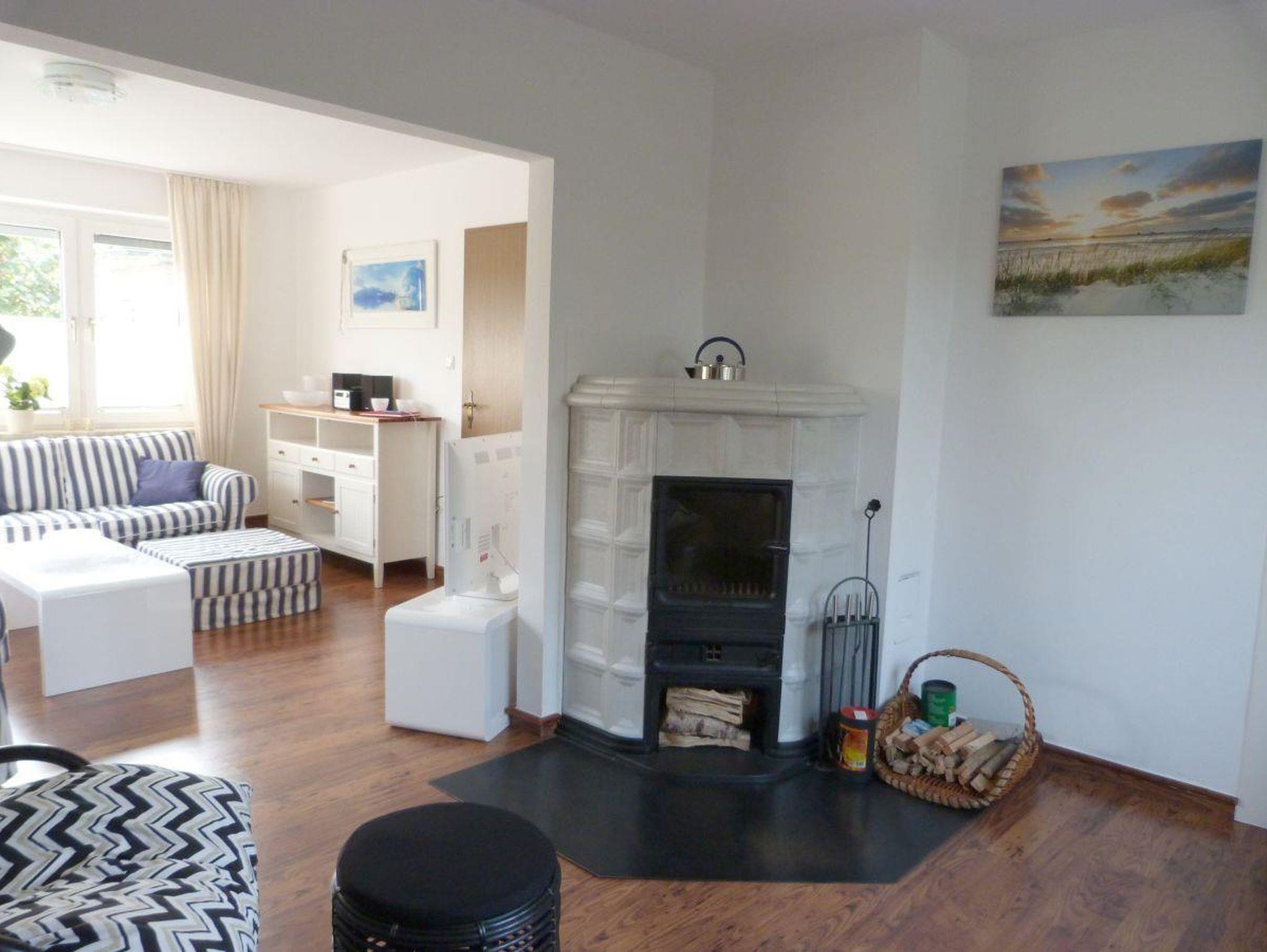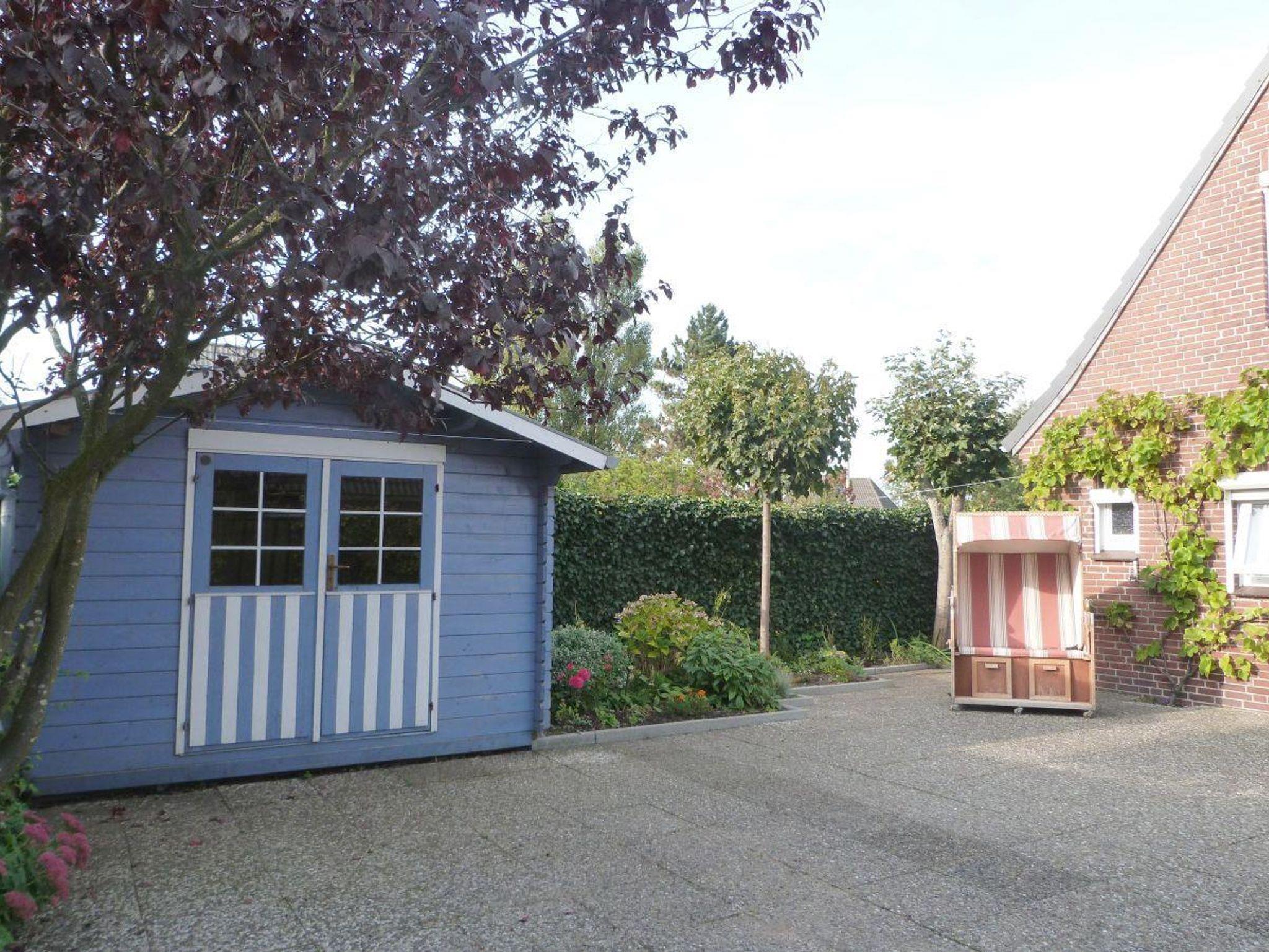 Sie erwartet ein gemütlich im Friesenstil eingerichtetes Ferienhaus, das über 90 m² verfügt und sich über zwei Stockwerke erstreckt.Vom hellen Eingangsbereich haben Sie direkten Zugang zum lichtdurchfluteten Wohnzimmer mit Durchbruch zum gemütlichen Kaminzimmer, das nicht nur in den Wintermonaten zum Verweilen einlädt. Auch befinden sich im Untergeschoss die Küche, das Esszimmer, Badezimmer und Gäste-WC. Im Obergeschoss befindet sich ein großes Schlafzimmer mit Doppelbett, ein weiteres Schlafzimmer mit zwei Einzelbetten und kleinem begehbarem Kleiderschrank, sowie dem Babyzimmer mit Babybett und Wickeltisch. Die große Terrasse hinter und neben dem Haus ist komplett umzäunt und sichtgeschützt. Es gibt diverse Verweilmöglichkeiten wie Liegestühle, Sitzgarnitur und Strandkorb. Das Gartenhaus bietet ausreichend Stellplatz für Ihre Fahrräder.In der Einfahrt neben dem Haus finden bis zu zwei Autos Platz.