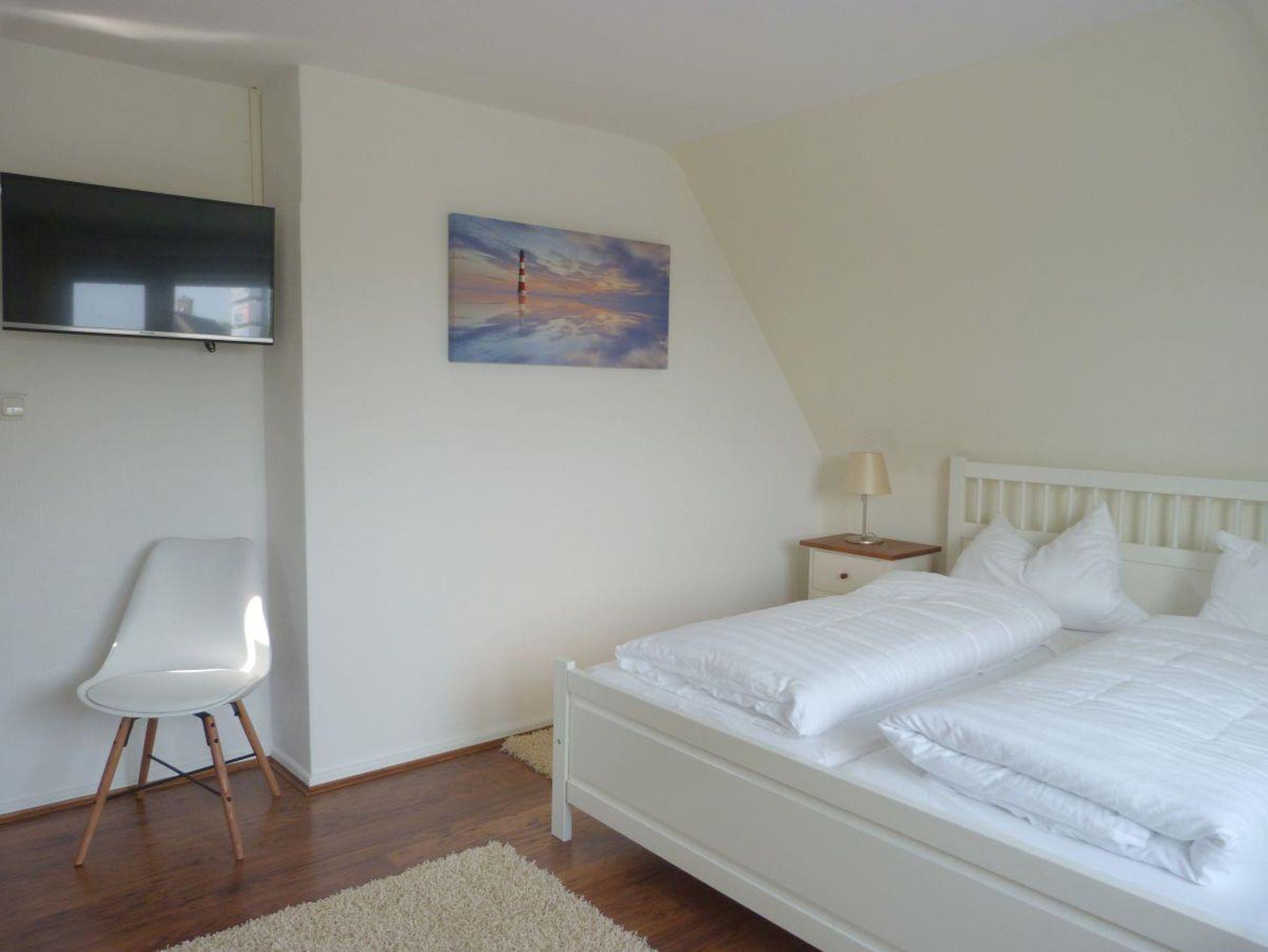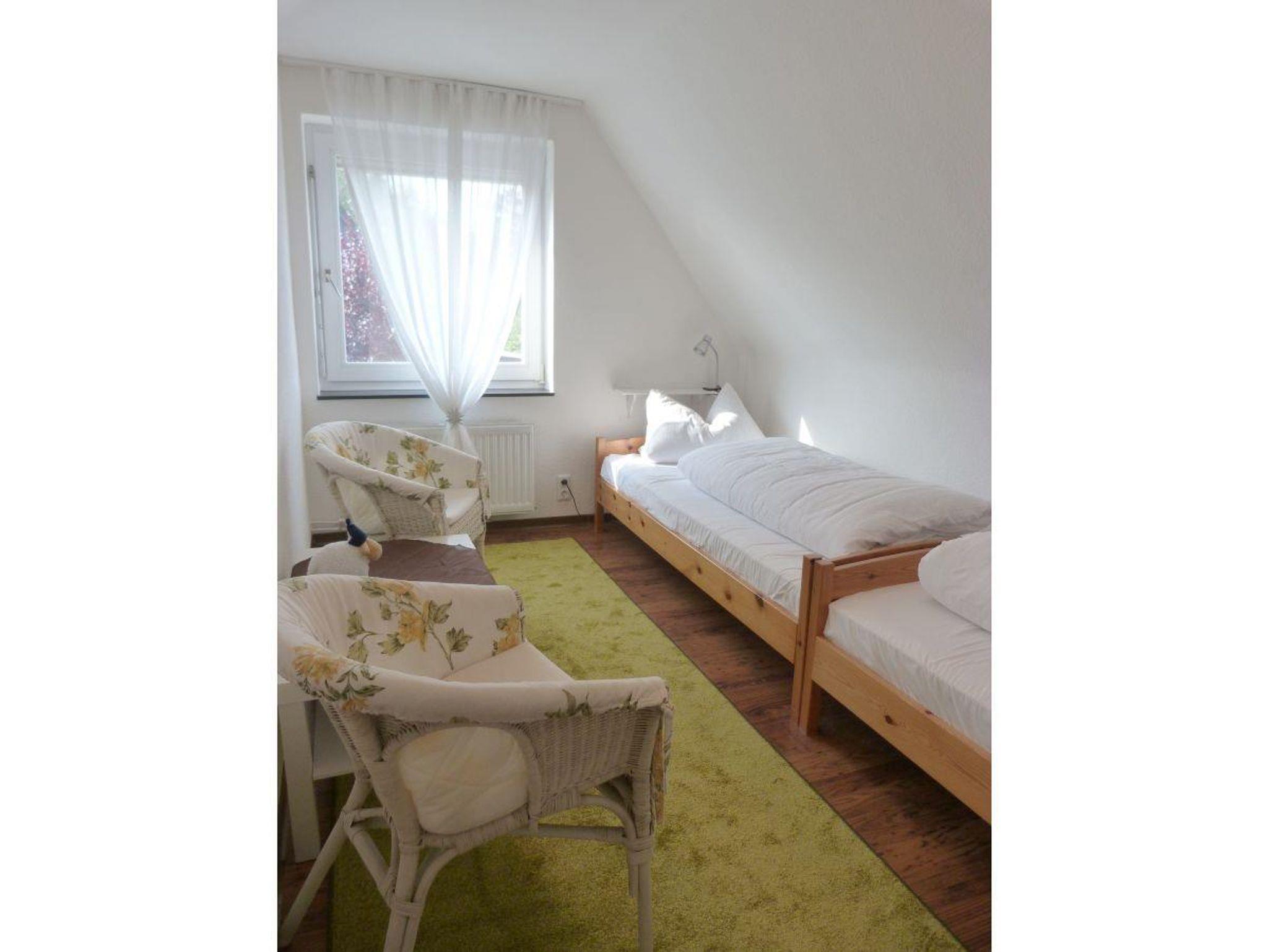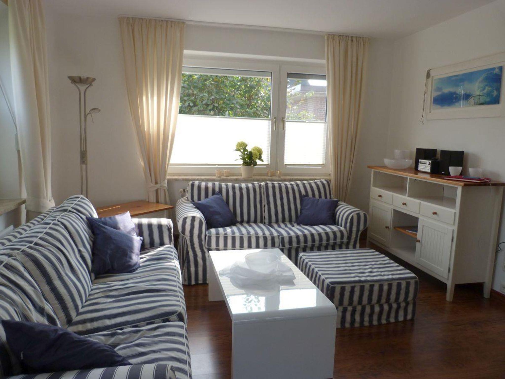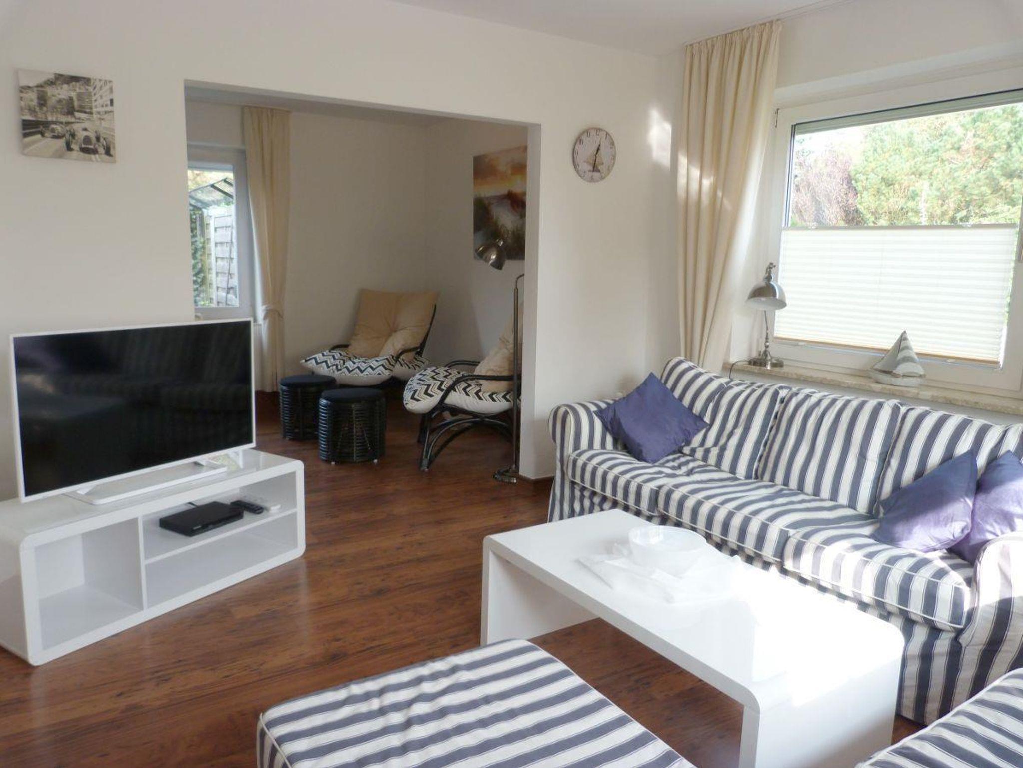 Sie erwartet ein gemütlich im Friesenstil eingerichtetes Ferienhaus, das über 90 m² verfügt und sich über zwei Stockwerke erstreckt.Vom hellen Eingangsbereich haben Sie direkten Zugang zum lichtdurchfluteten Wohnzimmer mit Durchbruch zum gemütlichen Kaminzimmer, das nicht nur in den Wintermonaten zum Verweilen einlädt. Auch befinden sich im Untergeschoss die Küche, das Esszimmer, Badezimmer und Gäste-WC. Im Obergeschoss befindet sich ein großes Schlafzimmer mit Doppelbett, ein weiteres Schlafzimmer mit zwei Einzelbetten und kleinem begehbarem Kleiderschrank, sowie dem Babyzimmer mit Babybett und Wickeltisch. Die große Terrasse hinter und neben dem Haus ist komplett umzäunt und sichtgeschützt. Es gibt diverse Verweilmöglichkeiten wie Liegestühle, Sitzgarnitur und Strandkorb. Das Gartenhaus bietet ausreichend Stellplatz für Ihre Fahrräder.In der Einfahrt neben dem Haus finden bis zu zwei Autos Platz.