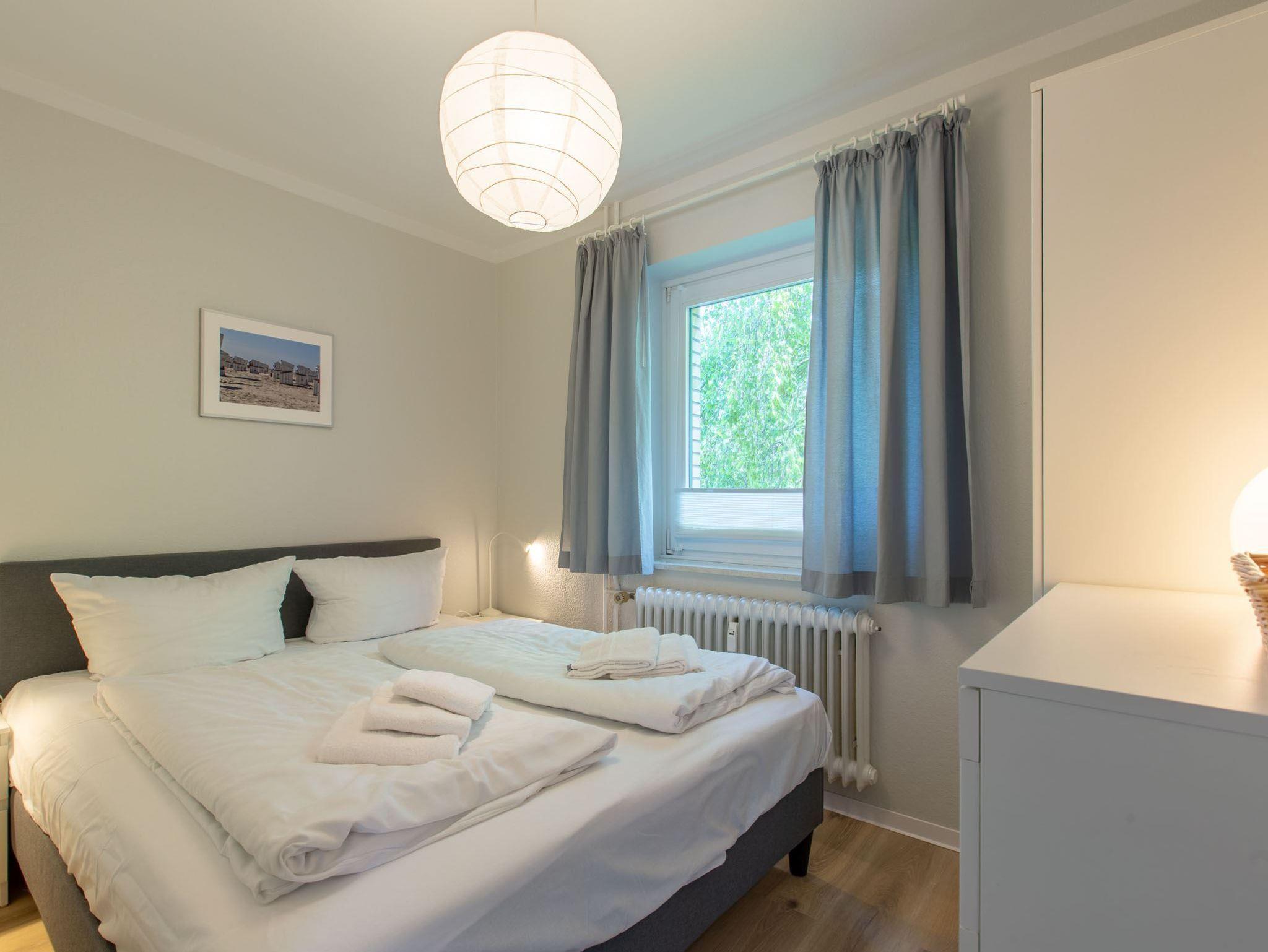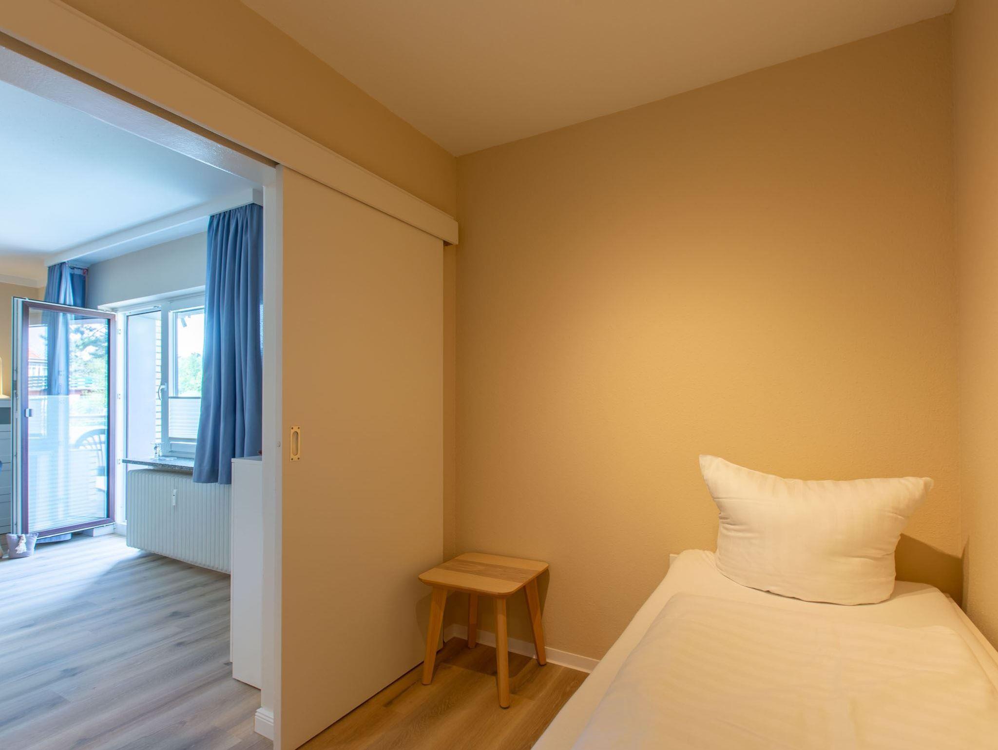 2. Schlafzimmer mit Einzelbett (80x200cm), das zum Doppelbett ausziehbar ist (2x 80x200cm), und Kommode.