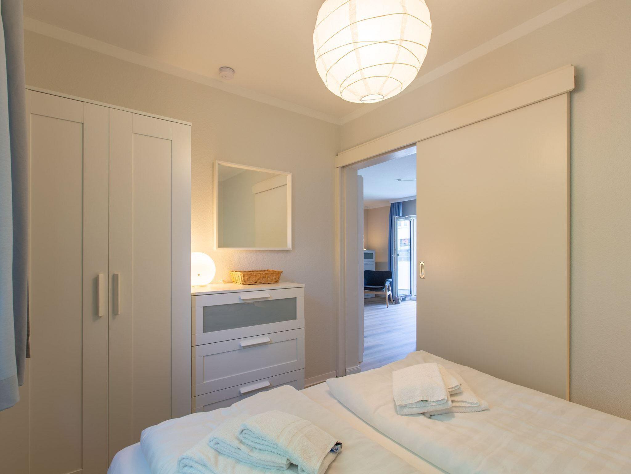 1. Schlafzimmer mit Doppelbett (160x200cm), Kleiderschrank und Kommode.