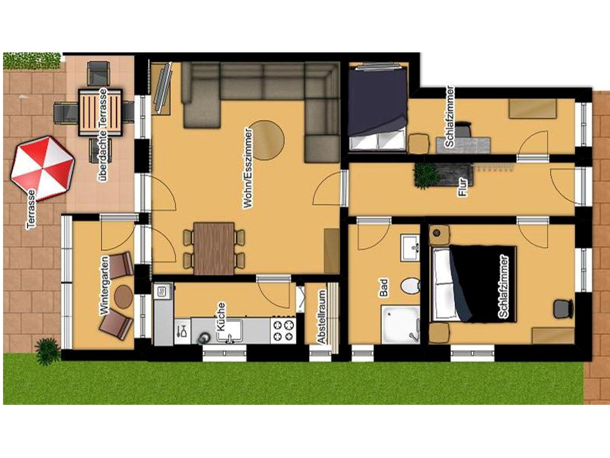 3-Zimmer • Wintergarten • separate Küche • Terrasse mit Strandkorb • Kabel-TV • Intenetradio • WLAN