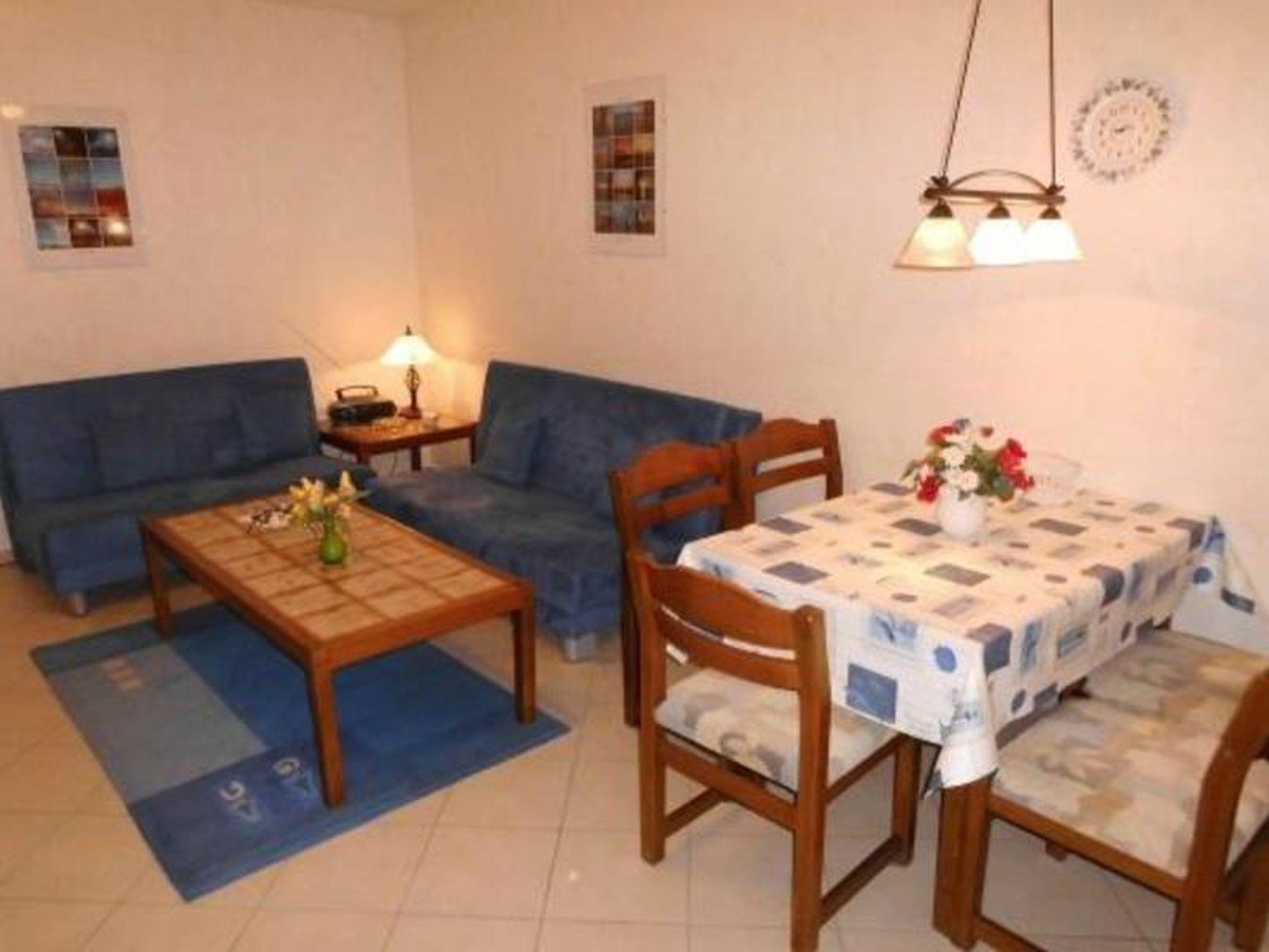 Wohnung im 1. Geschoß. Wohn-Schlafraum mit 2 Wandklappbetten. TV, Radio mit CD-Player. Schlafraum mit 2 Betten. Kochnische mit Mikrowelle. Dusche/WC. Möbl. Balkon. Insektenschutzgitter. Inklusive Internetanschluss .NICHTRAUCHERAPPARTEMENT. ALLERGIKERFREUNDLICH