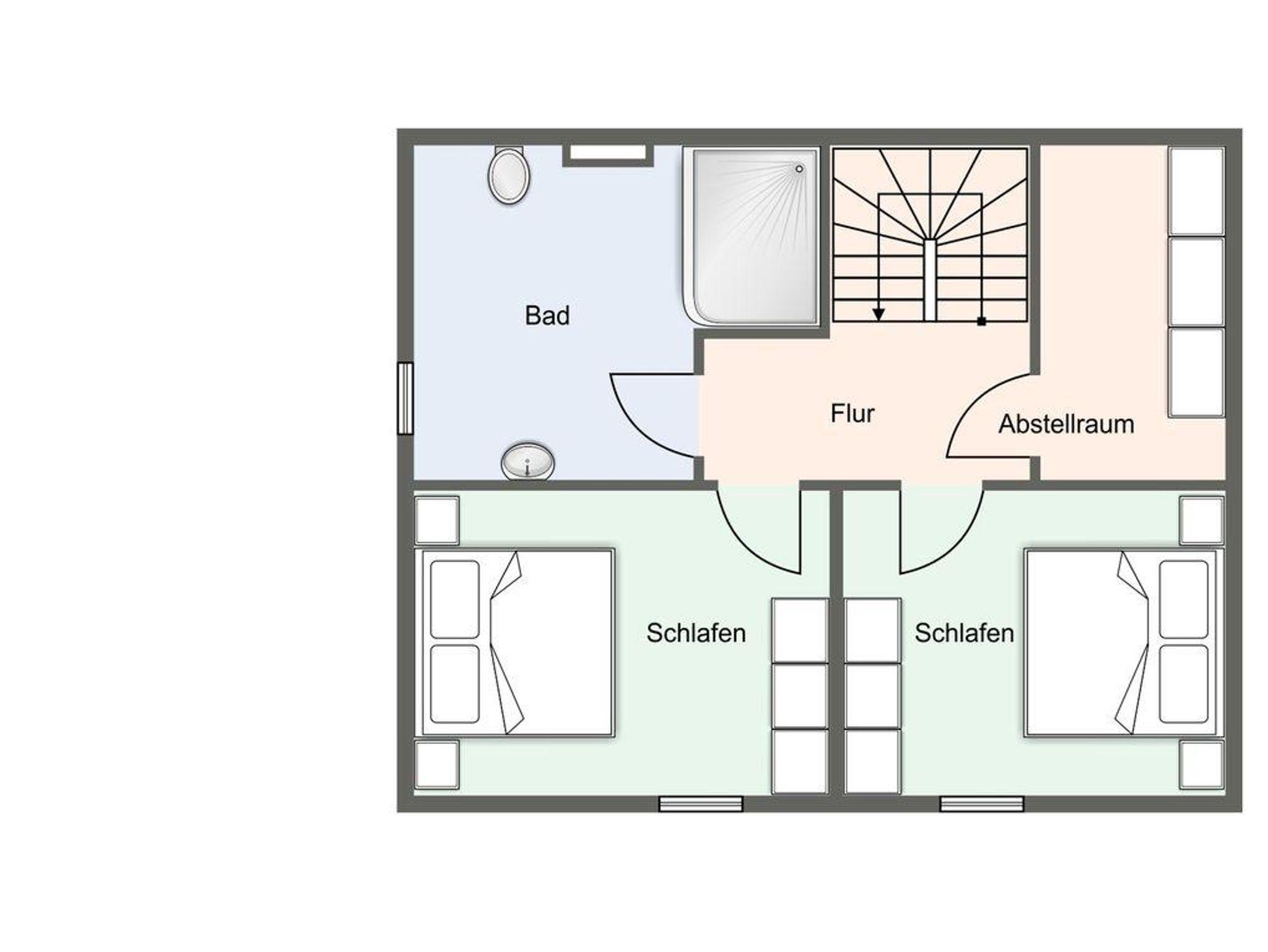 Eine massive Holztreppe führt in das Obergeschoss, wo Ihnen zwei Schlafzimmer mit jeweils einem Doppelbett (1,80 x 2,00) ungestörte Entspannung bieten. Ein großzügiges Vollbad ergänzt diese Etage. Im Dachgeschoss erwartet Sie ein Arbeitszimmer mit einem Schreibtisch, einem bequemen Stuhl, einem hochwertigen TV und einem ausziehbaren Schlafsessel (0,90 x 2,00).