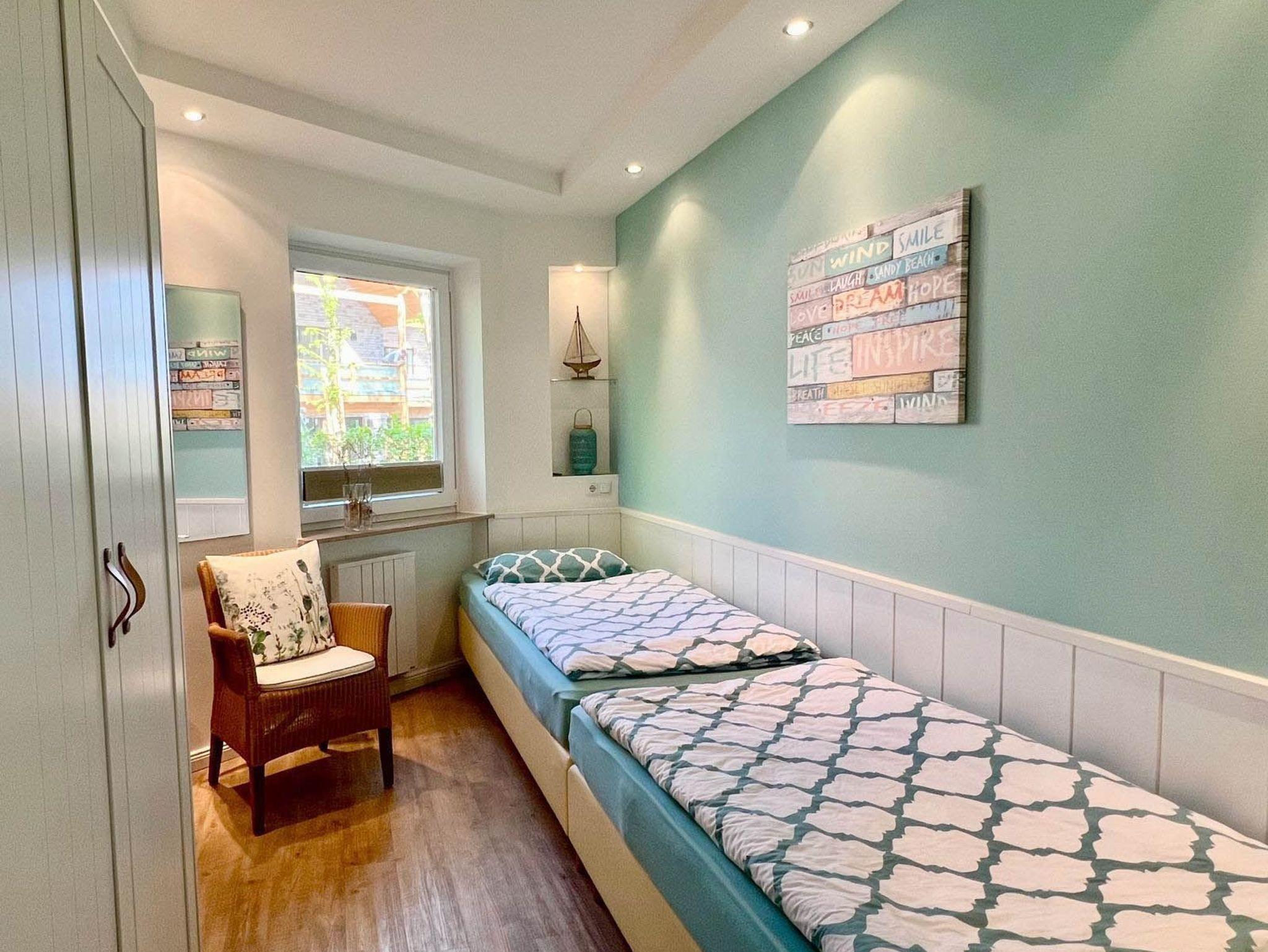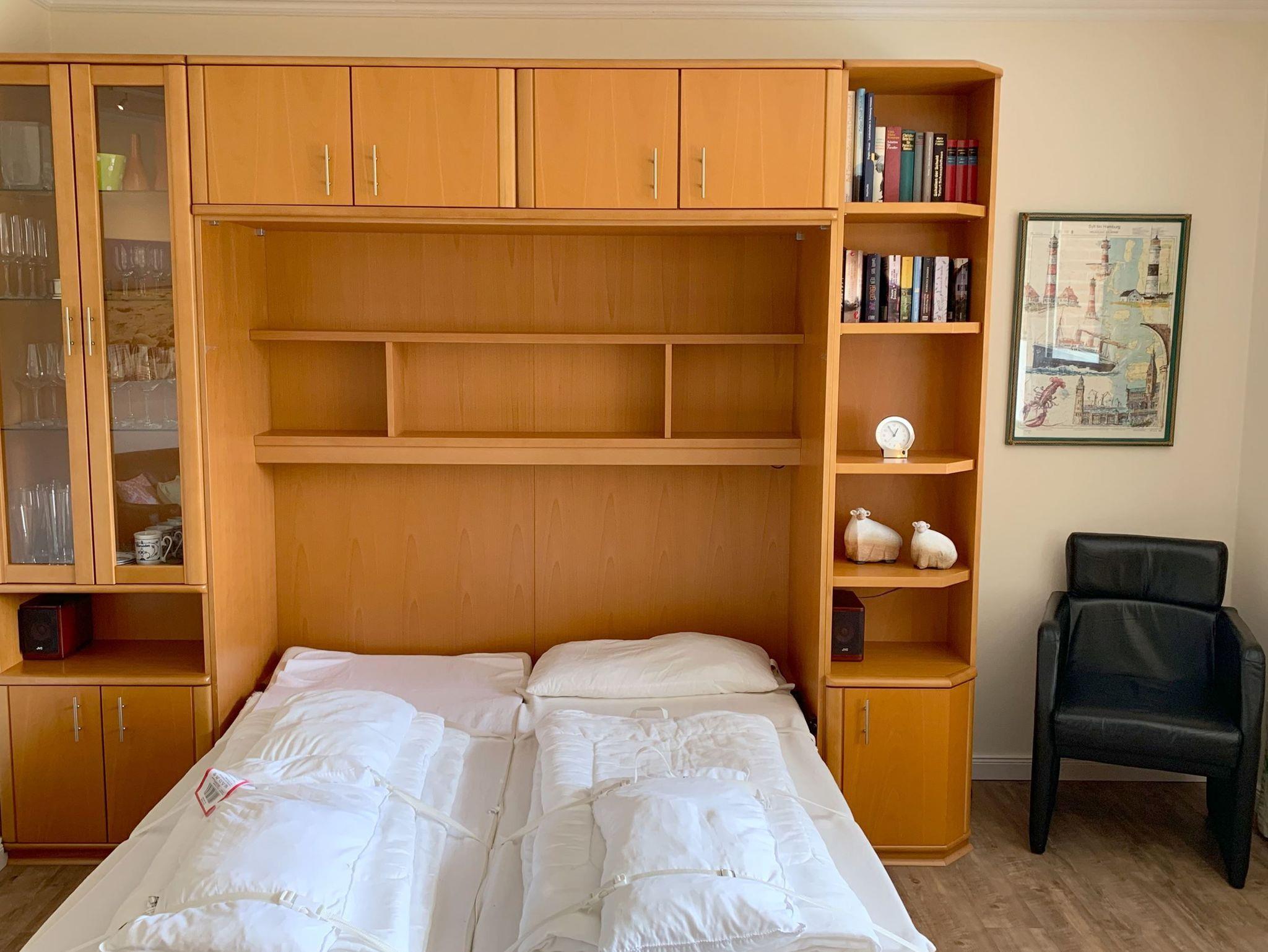 Liebevoll eingerichtete Ferienwohnung in St. Peter-Ording Die 2-Raum Ferienwohnung Utlande Nr. 6 im Ortsteil Ording ist für bis zu 4 Personen geeignet. Sie ist ausgestattet mit hochwertigen Materialien, wie z.B. Holzdesignfußböden, Ledermöbeln, einer separierten Einbauküche und einem modernen Bad mit bodengleicher Dusche. Erholsamen Schlaf finden Sie in einem der 2 Einzelbetten oder in einem Schrankdoppelbett. Auf der halbüberdachten Terrasse in Südlage können Sie bereits morgens in der Sonne frühstücken oder die Seele baumeln lassen. PKW-Stellplatz auf dem Grundstück, Nr. 6