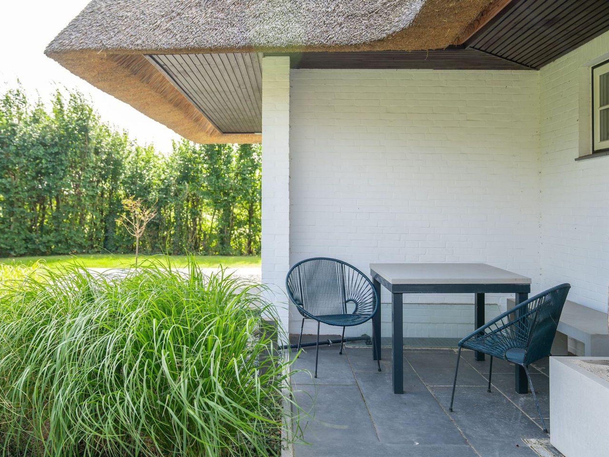 Vor dem Haus befindet sich rechts vom Hauseingang ein zur Wohnung gehöriger, möblierter Terrassenbereich. Hier sitzen Sie angenehm windgeschützt und unter dem wertigen Reetdach des Hauses. Zudem bietet sich der Garten als Liegewiese an für das ein oder andere Sonnenbad. Am Abend erholen Sie sich im separaten Schlafzimmer mit Doppelbett (160x200cm).