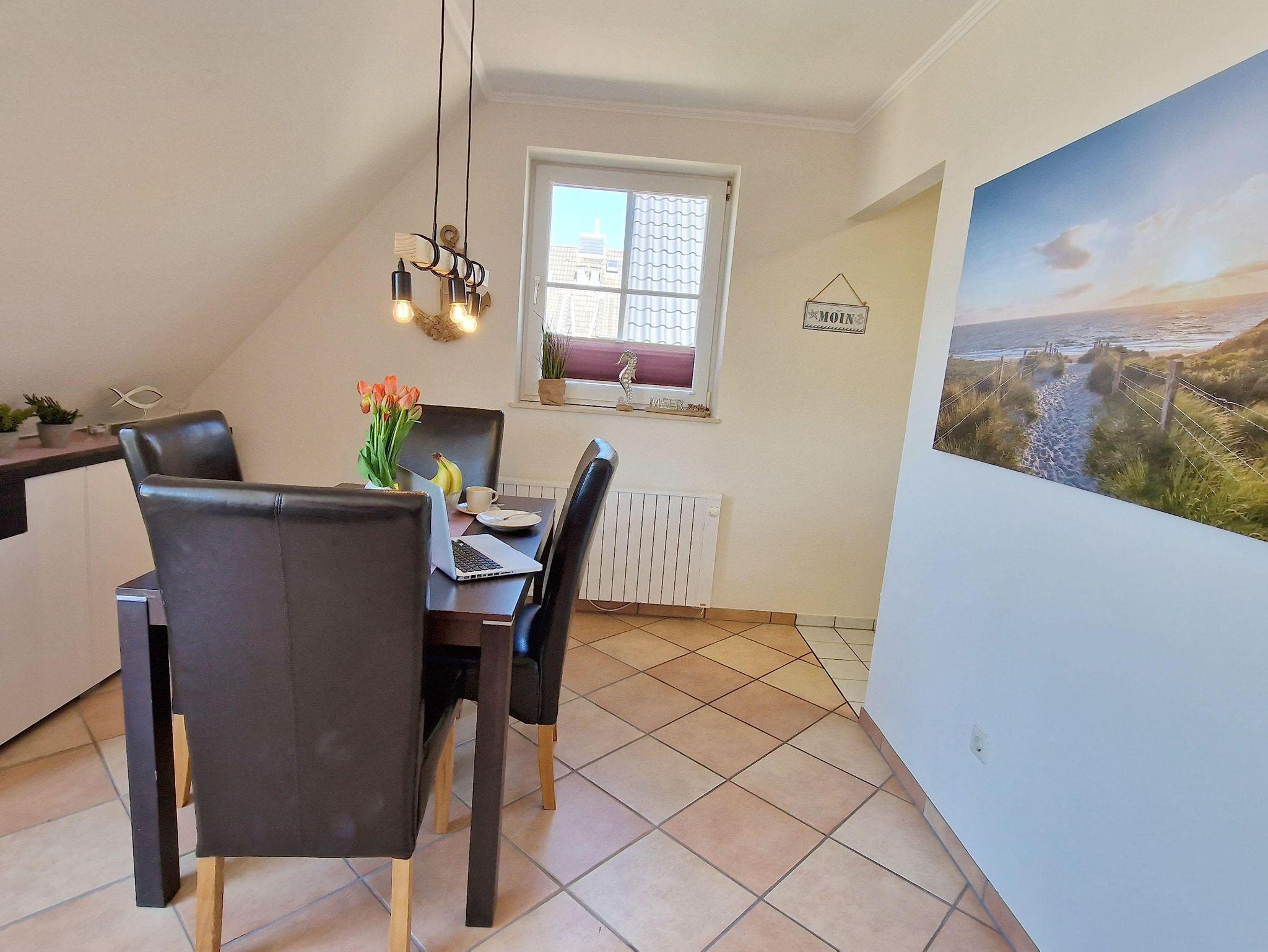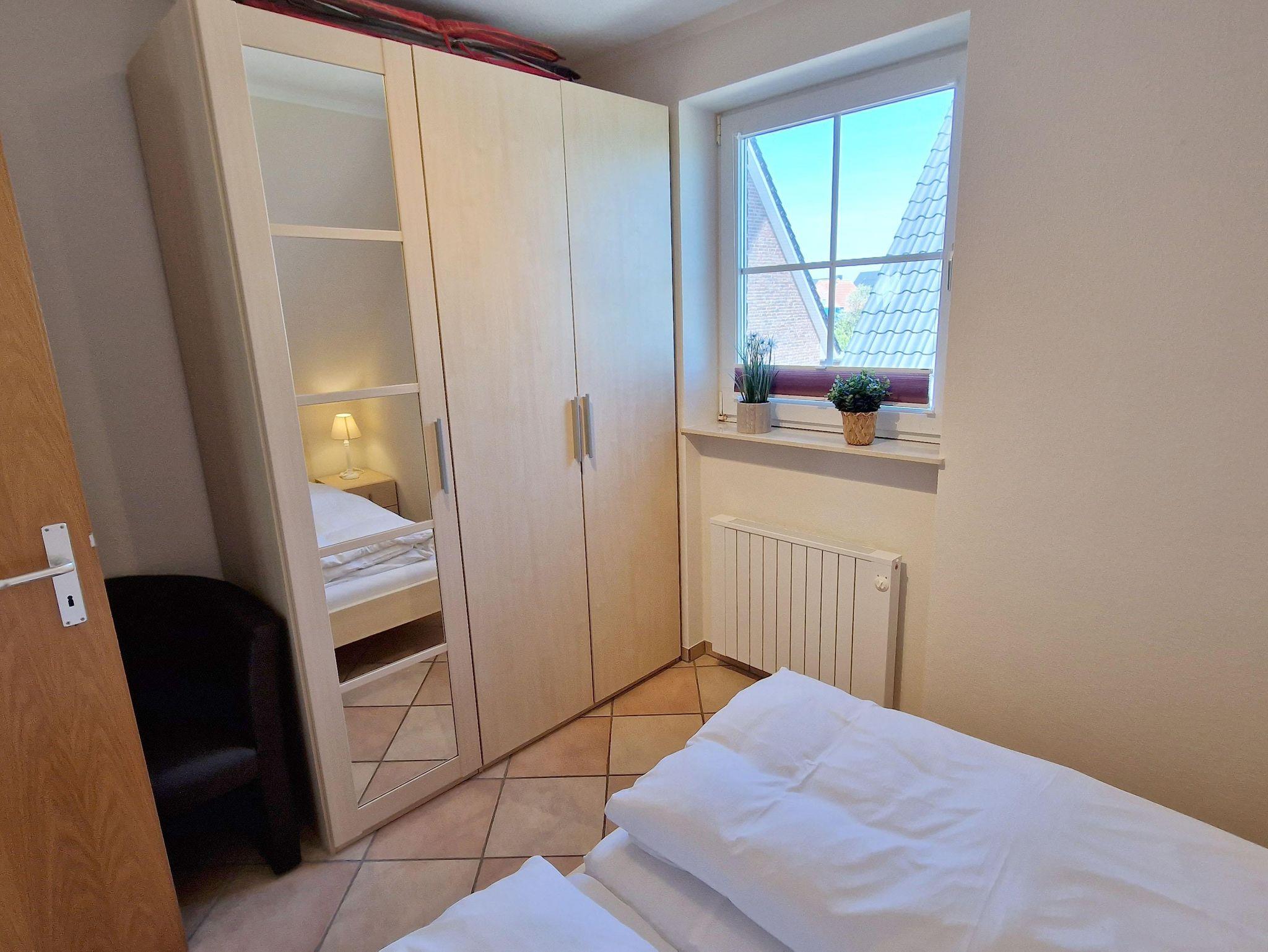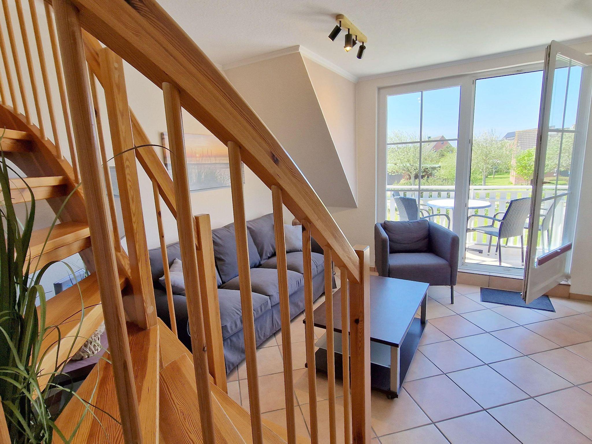 Die im ersten Stock gelegene Wohnung mit zwei Schlafräumen bietet Platz für 4 Personen. Sie hat einen schönen Balkon in Westlage, auf dem man abends