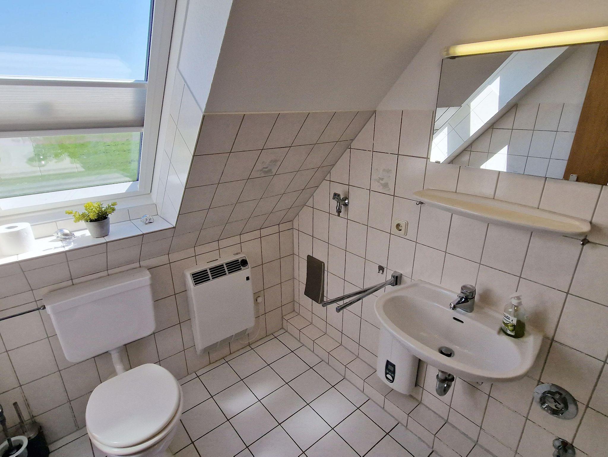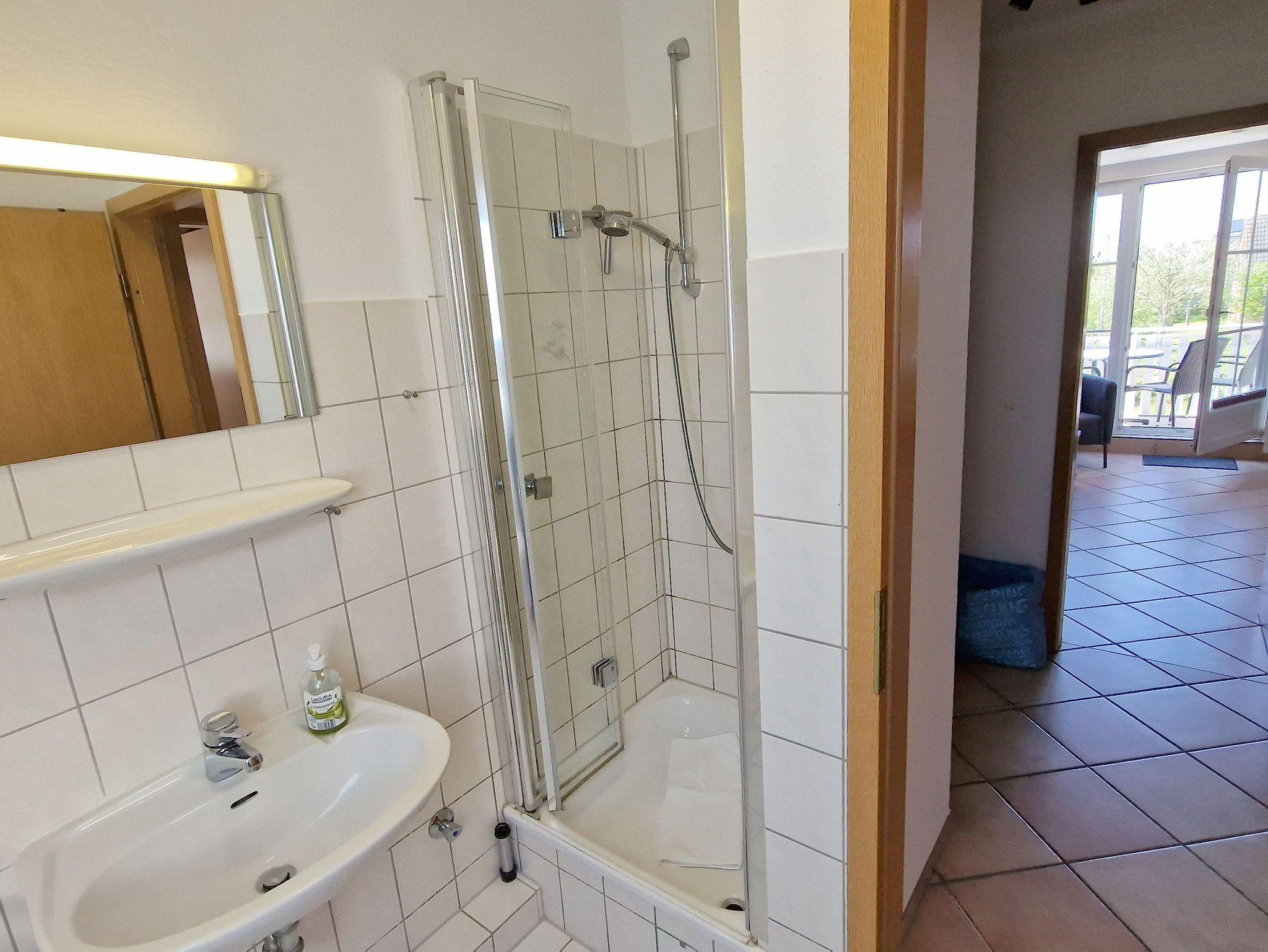 Bad: Dusche, Waschbecken, WC, Duschkabine