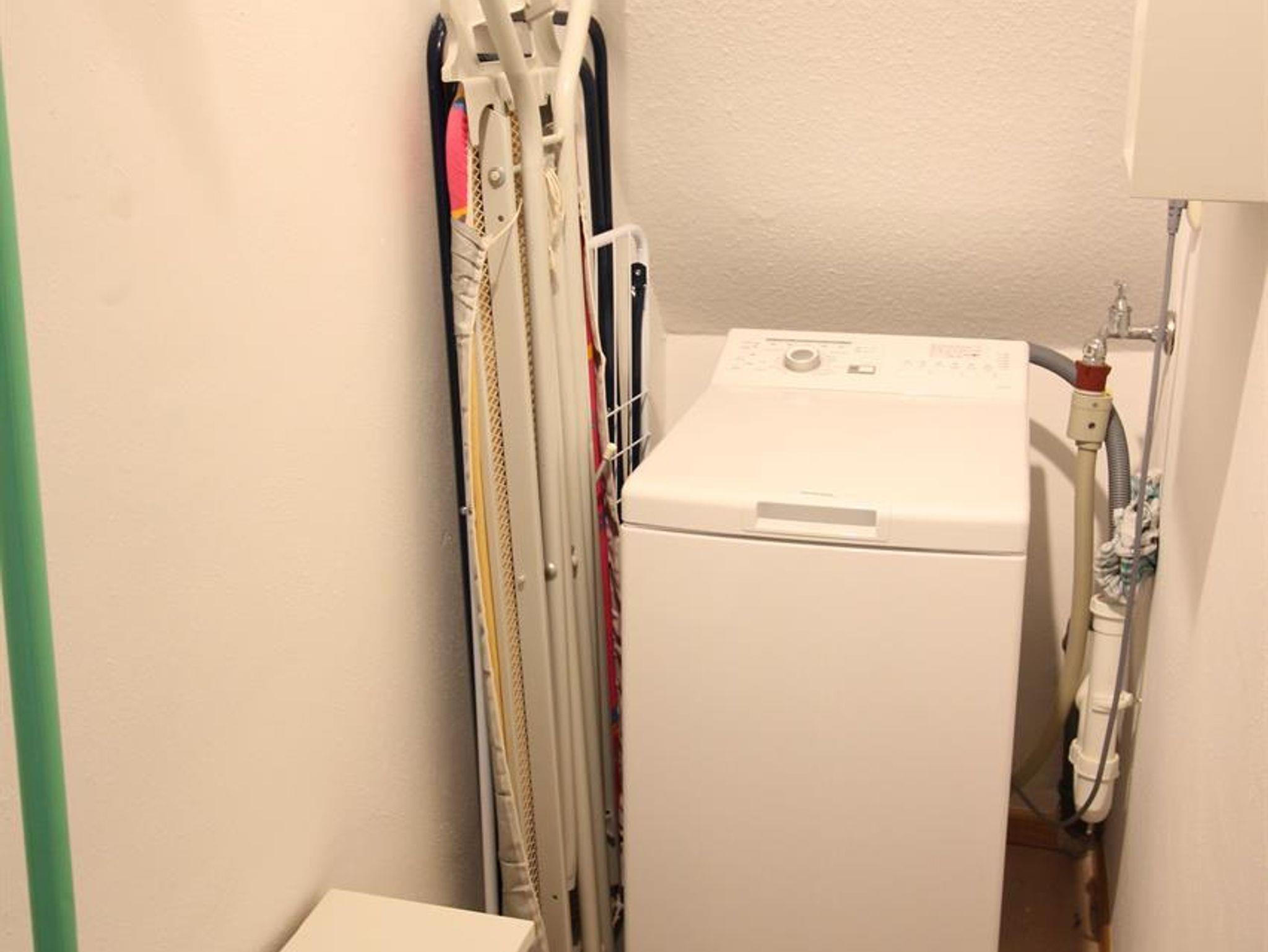 Vom Eingangsbereich aus erreichen Sie das Badezimmer mit Dusche, Waschtisch und WC. Auch steht Ihnen ein kleiner Abstellraum mit Waschmaschine, Bügelbrett, etc. zur Verfügung.