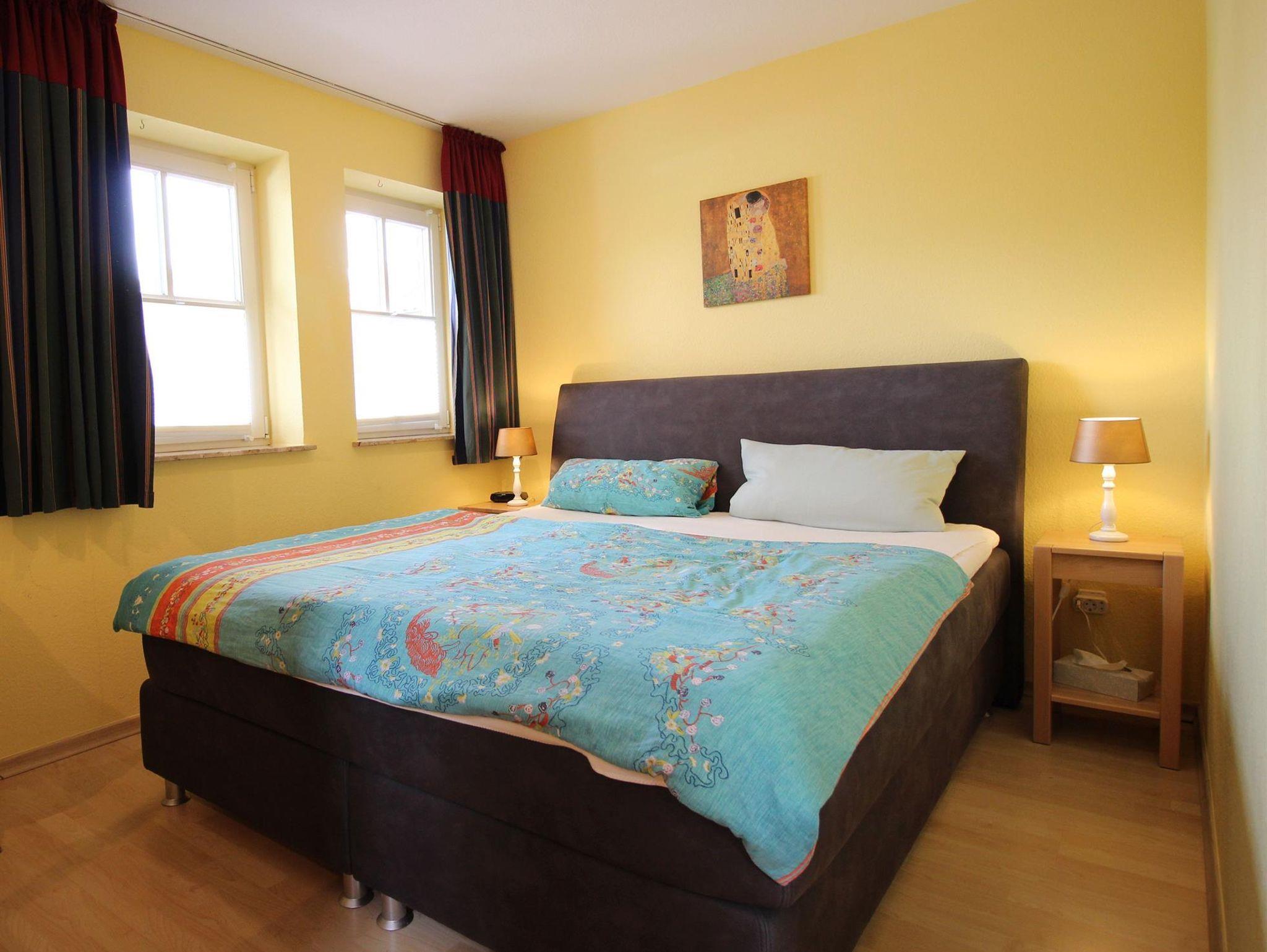 Ein gemütliches und hochwertiges Doppelboxspringbett (2,00m x 1,80m) mit einer durchgehenden Matratze wartet zum erholsamen Schlaf auf Sie. Ein großer Schlafzimmerschrank bietet ausreichend Stauraum. Im Wohnzimmer kann das Sofa schnell zu einem Schlafsofa umfunktioniert werden. Bettdecken und Kopfkissen sind für 4 Personen in der Wohnung vorhanden.