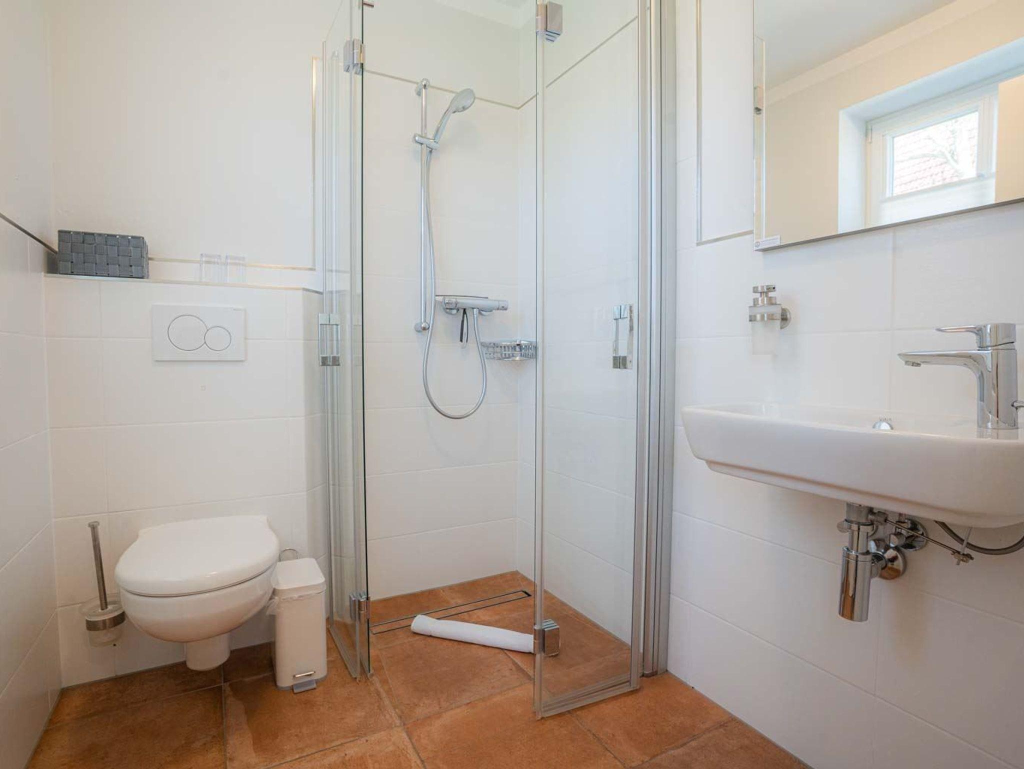 1. Badezimmer (Duschbad) mit bodengleicher Dusche, WC und Tageslicht.