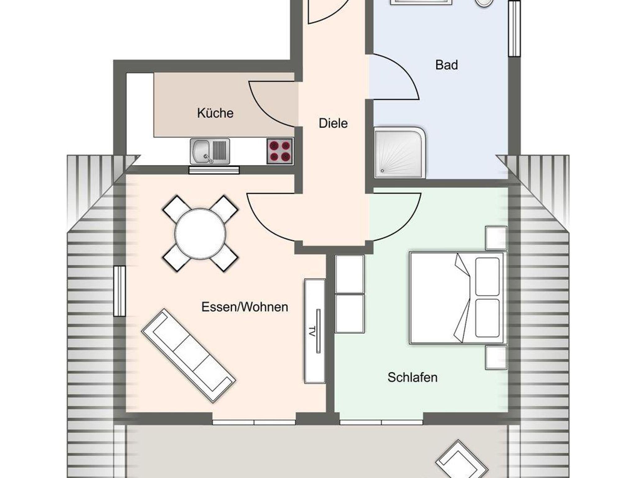 Das Duschbad ist großzügig gestaltet und bietet genügend Platz für Ihre Utensilien.