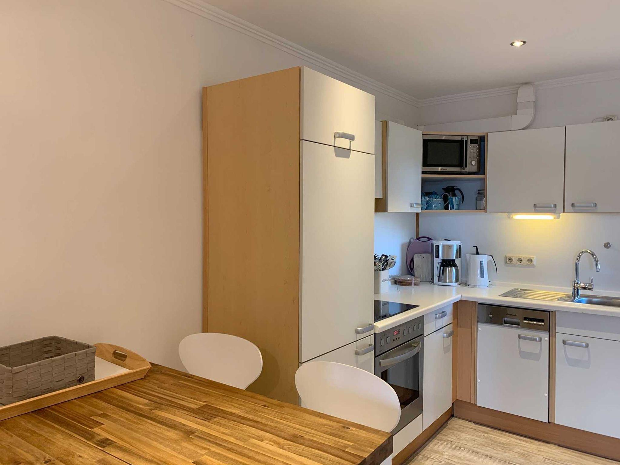 Gut ausgestattete Küchenzeile: Die Küchenzeile ist vom Wohnbereich etwas abgetrennt und bietet alles, was Sie für Ihre Mahlzeiten benötigen, darunter:
