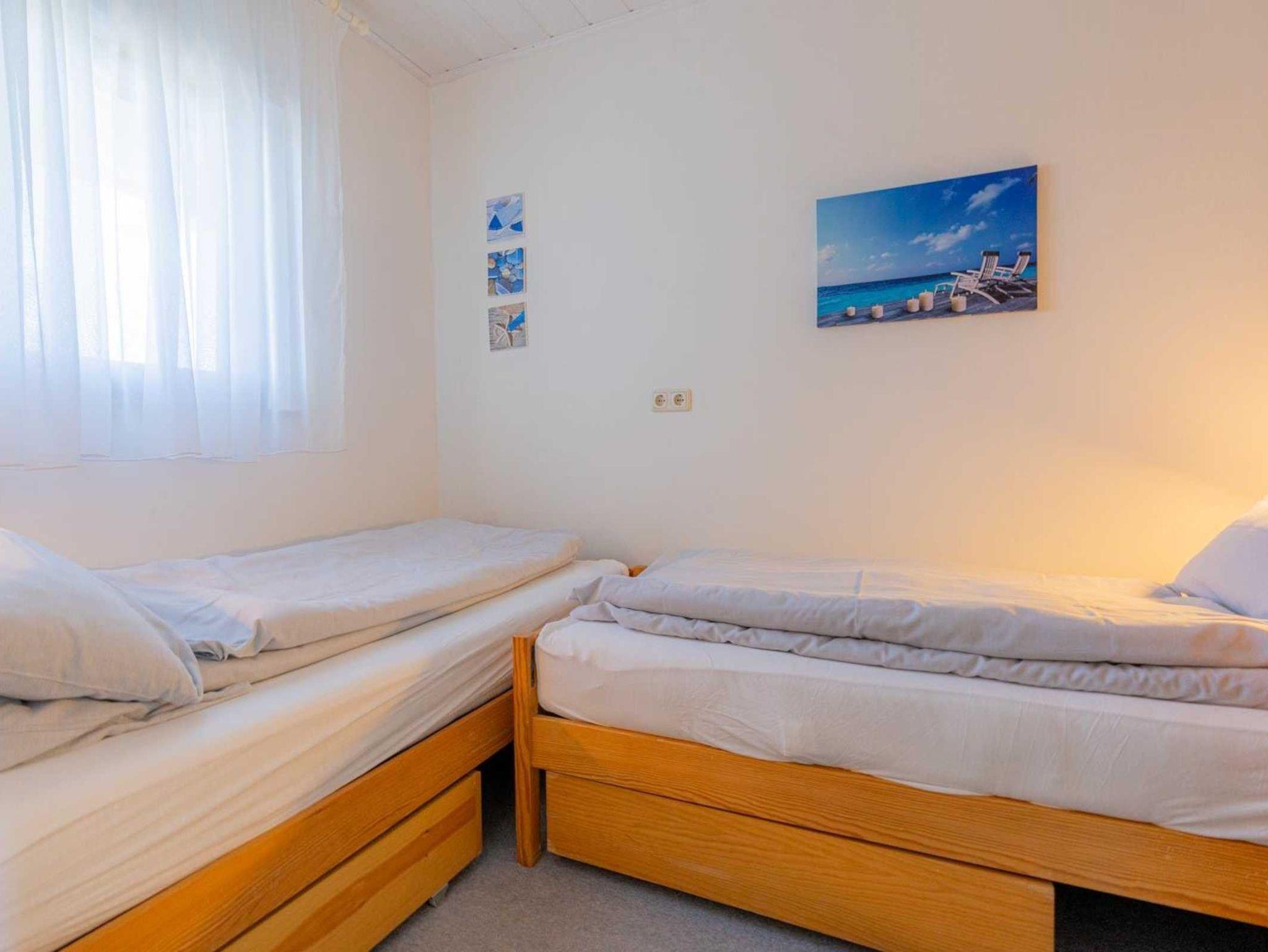Schlafzimmer mit 2 Einzelbetten (je 90x190cm) und Kleiderschrank.