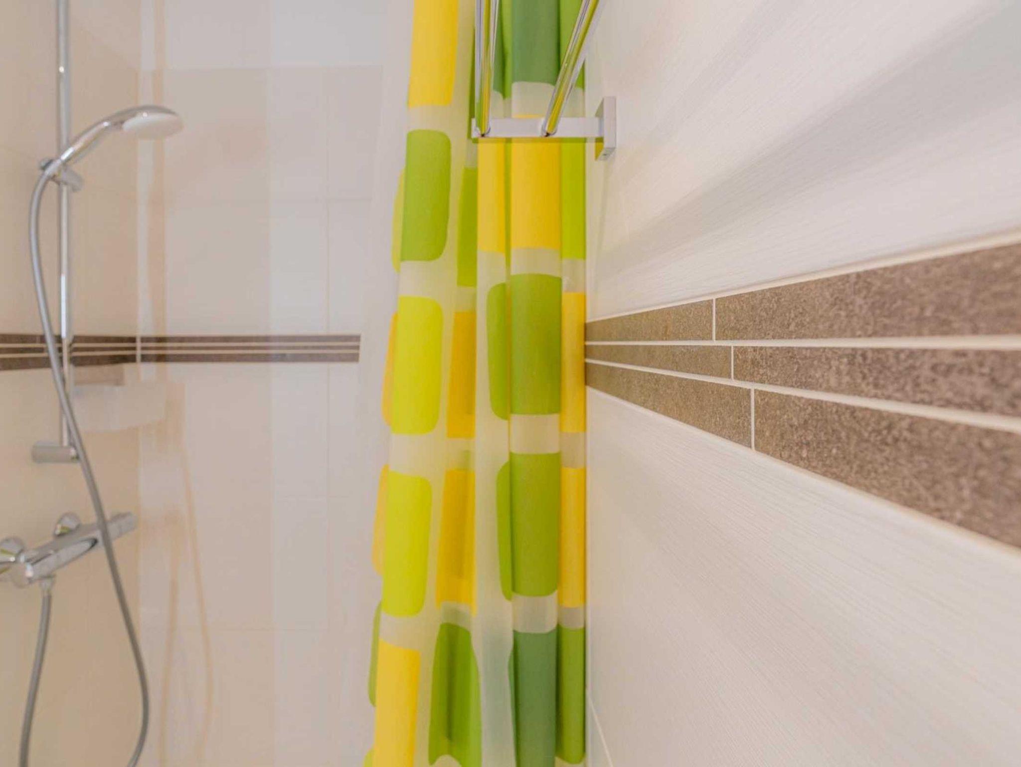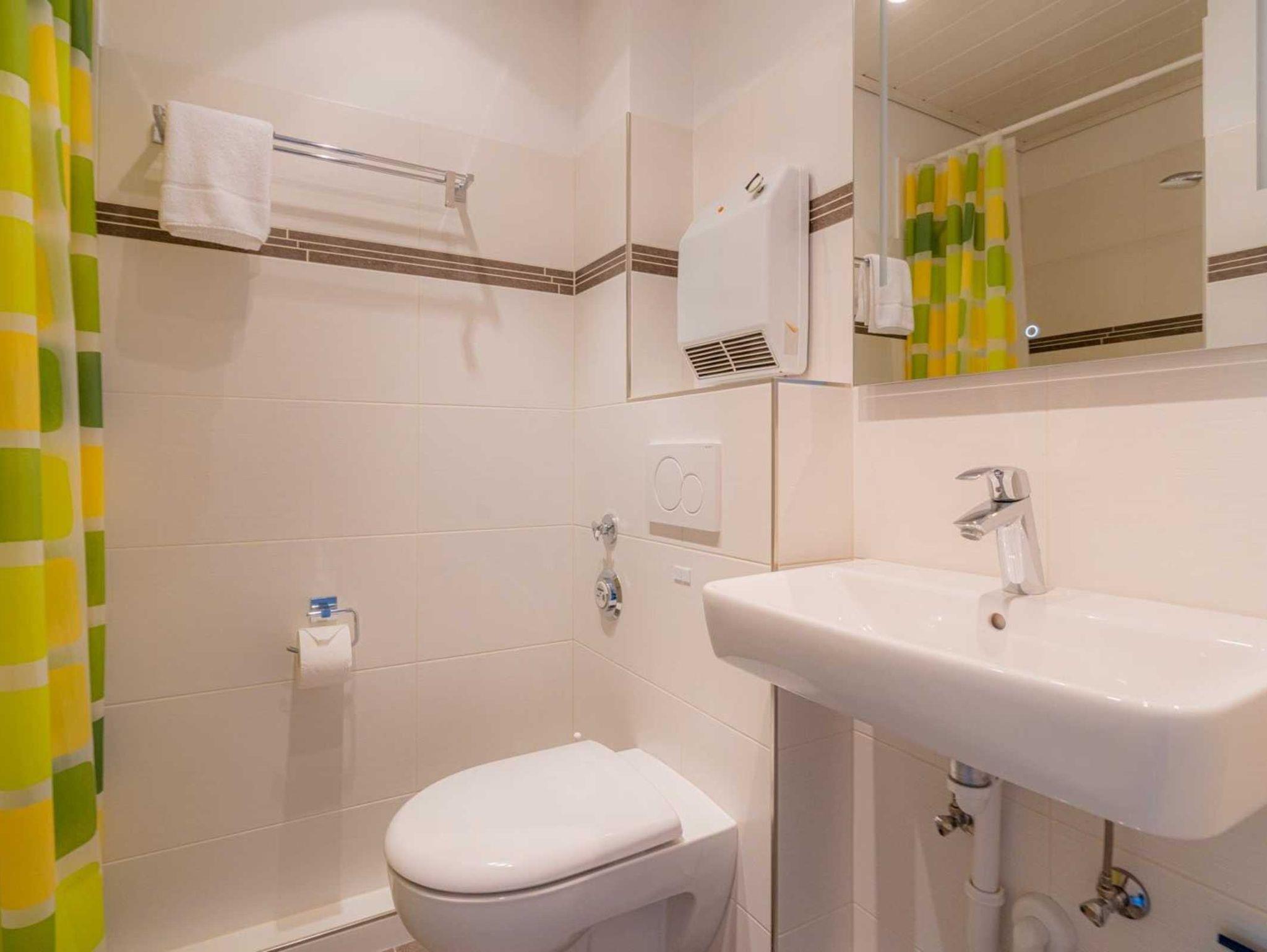 Badezimmer (Duschbad) mit Dusche und WC.