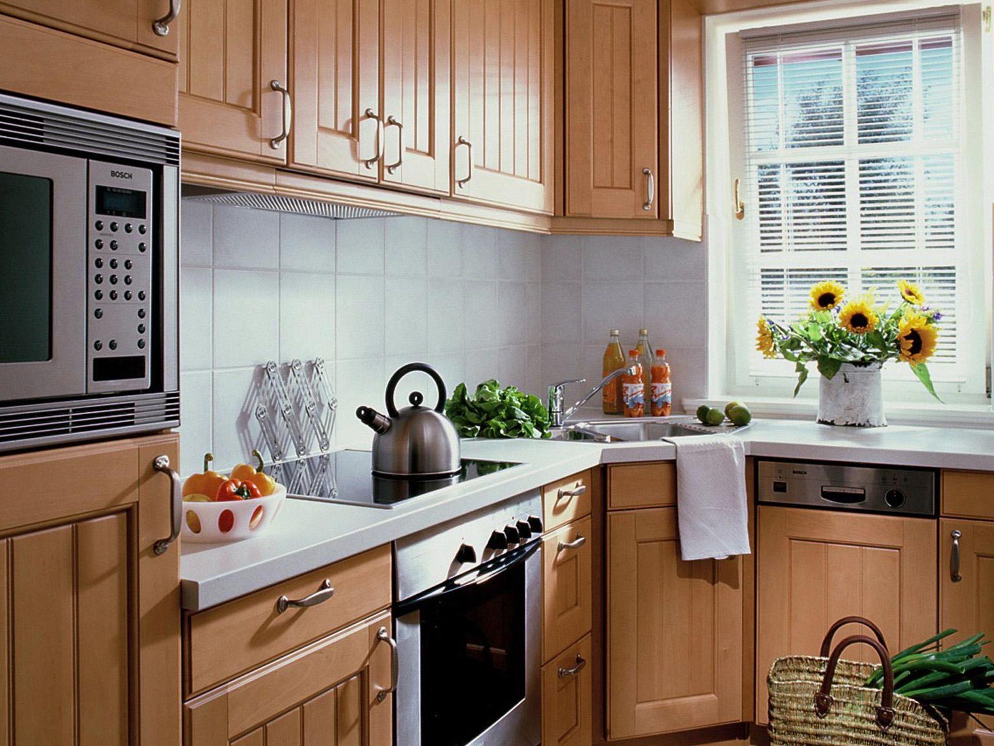 komplett eingerichtete Küche mit Ceranfeld, Mikrowelle, Backofen, Geschirrspüler, Kühlschrank mit Gefrierfach, Wasserkocher, Kaffeemaschine (Filter), Kaffeepadmaschine, Toaster.
