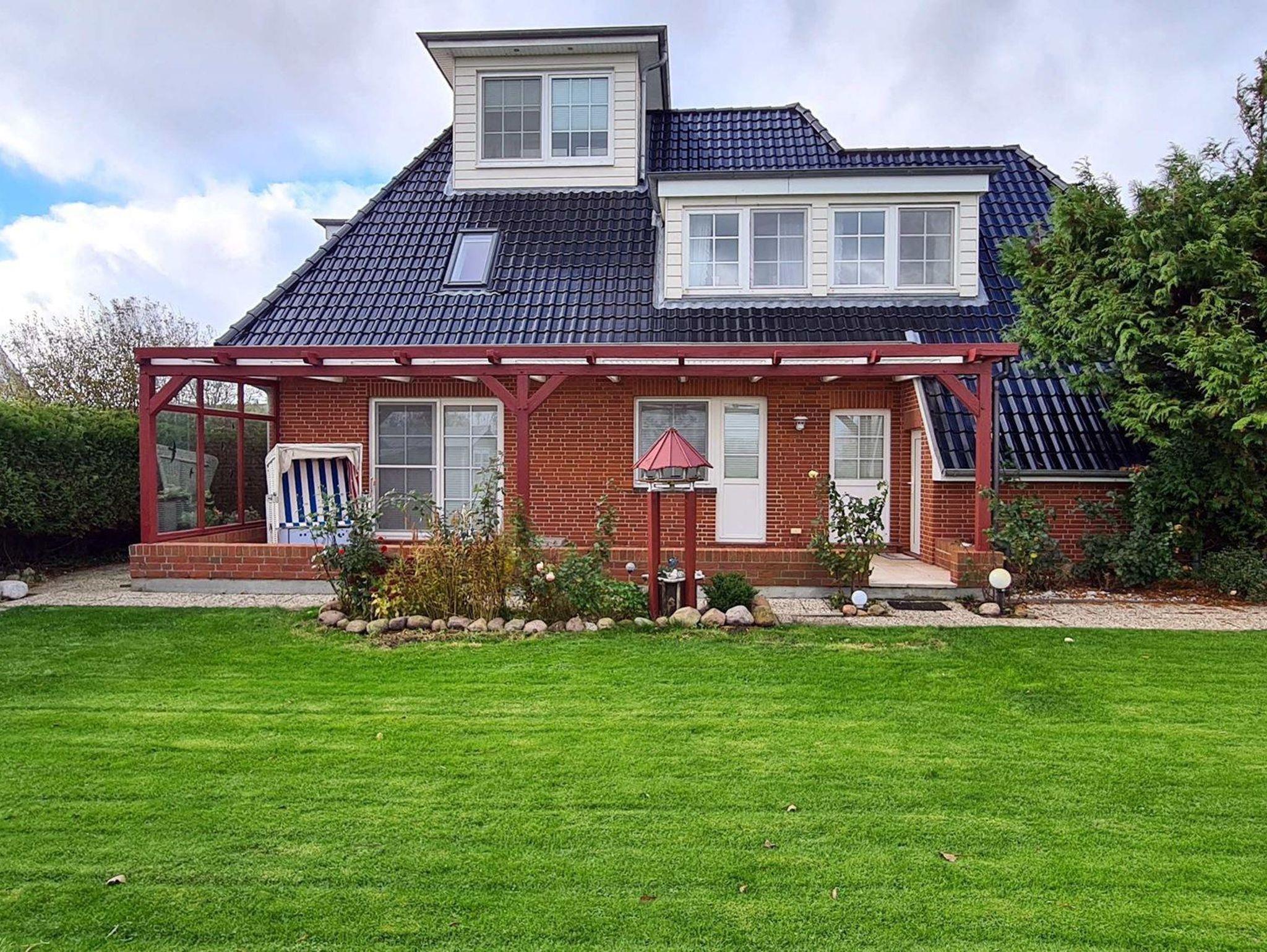 Sehr schöner und großer Garten, schöne überdachte Terrasse mit Strandkorb. Grillen ist erlaubt, aber ein Grill muss selber mitgebracht werden.