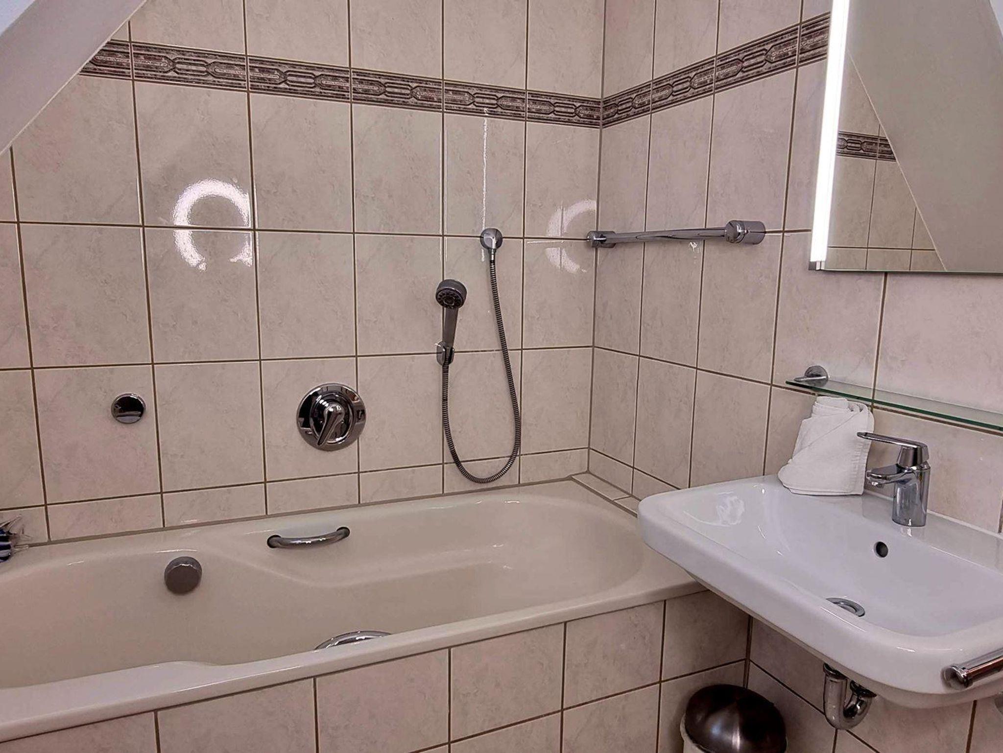 • 1 Badezimmer im OG (Wannenbad) mit Badewanne, WC, Bidet, Waschbecken.