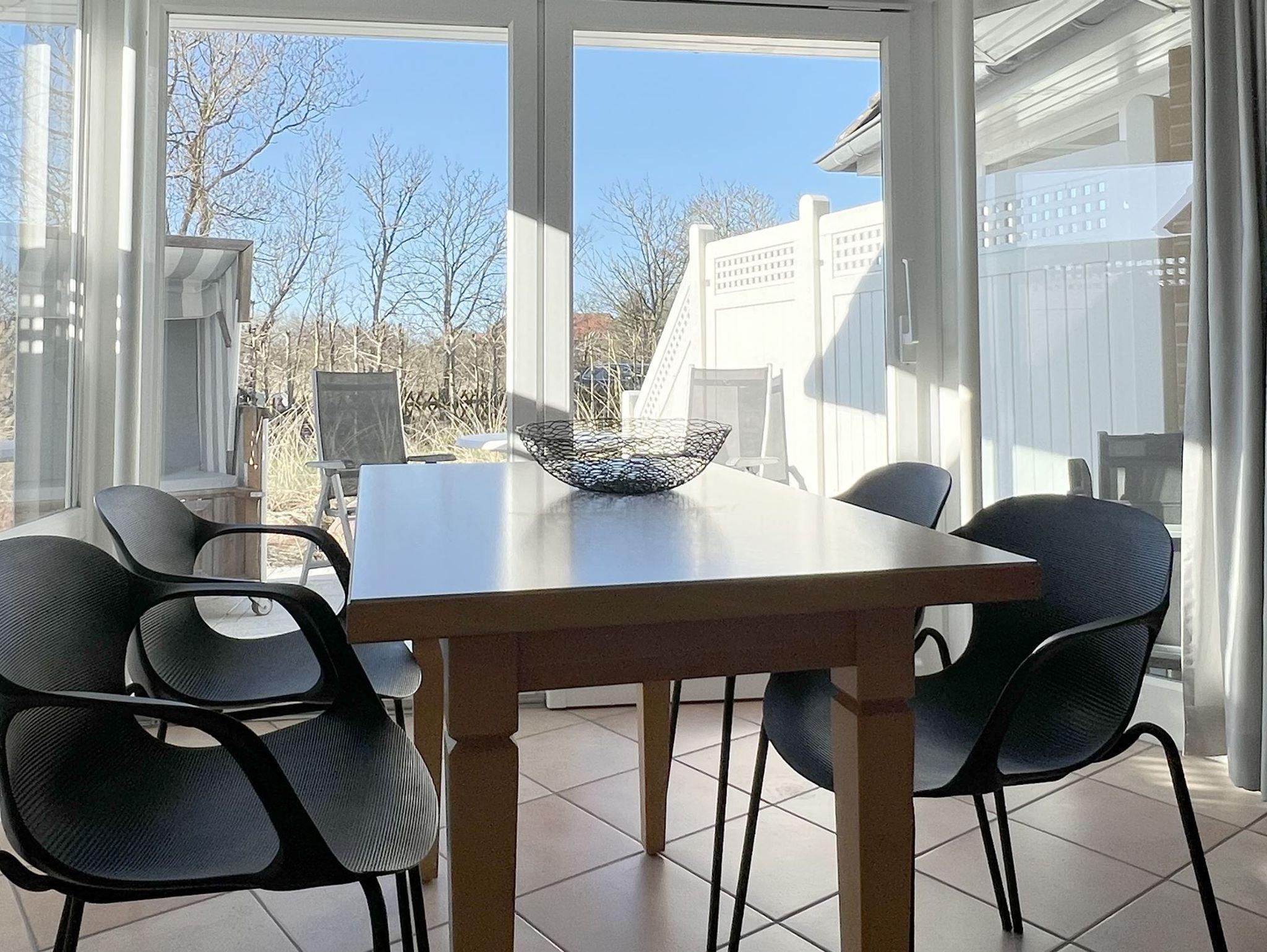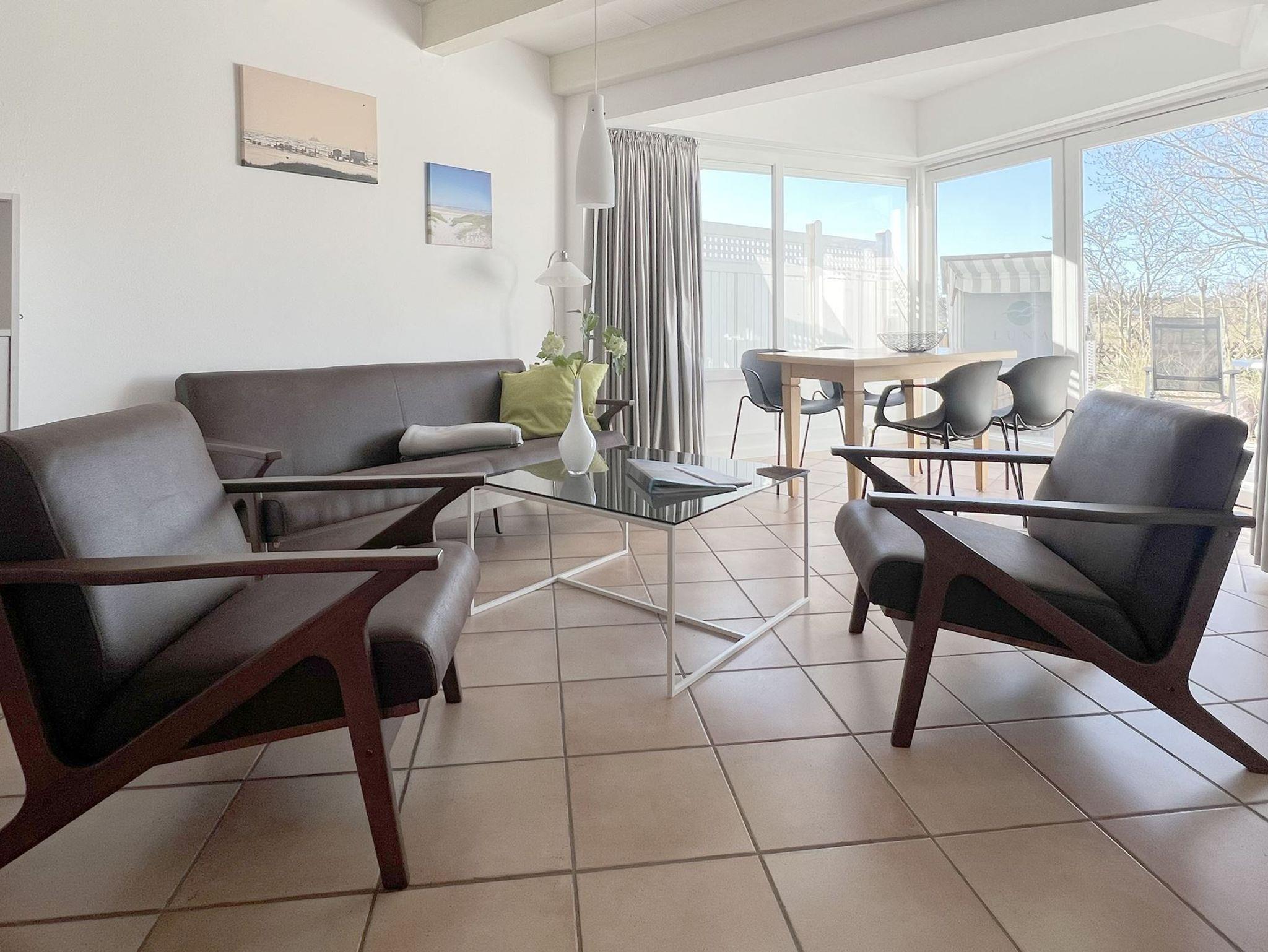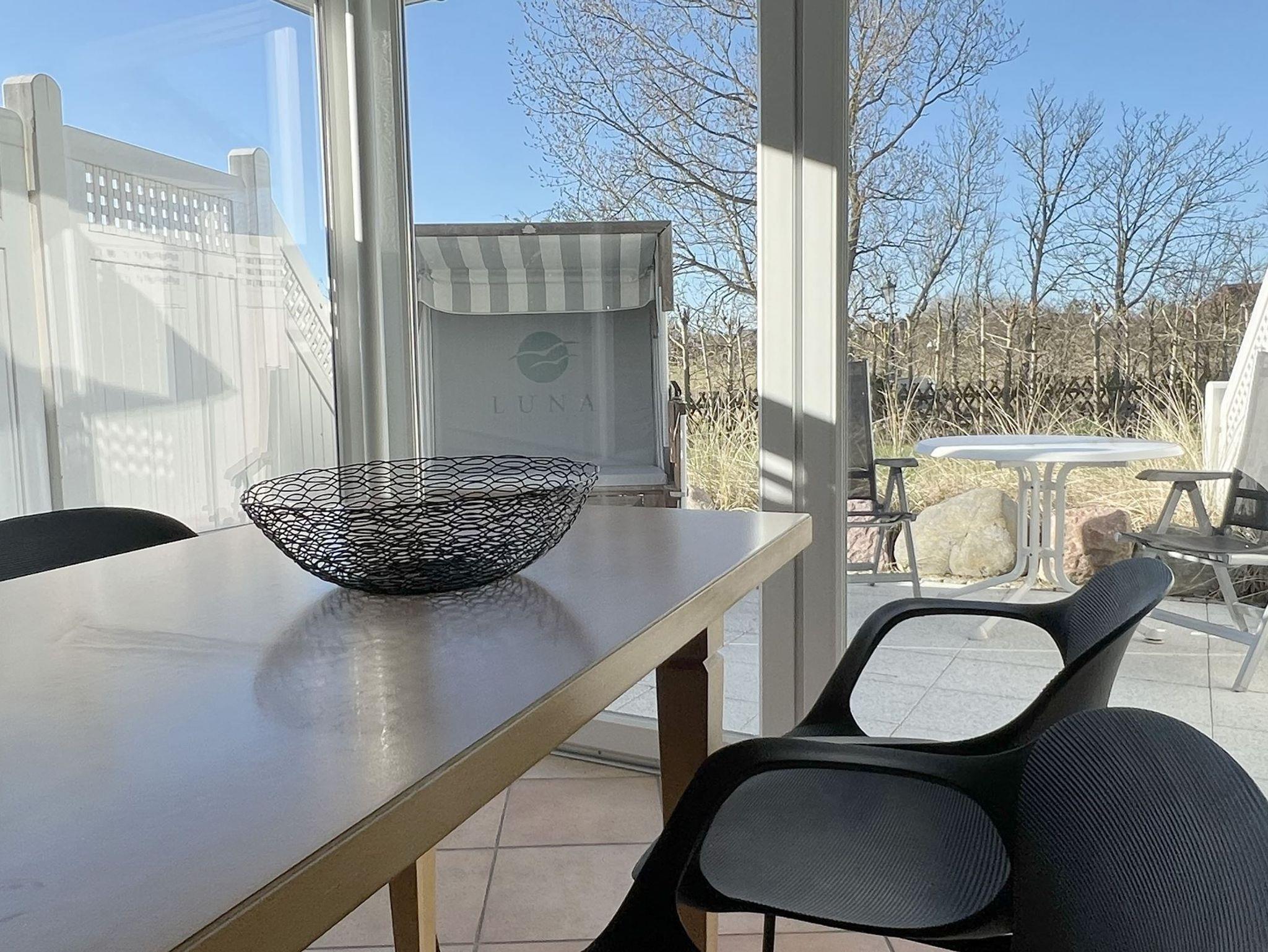 Im Haus Luna II befindet sich die Luna Wohnung 18. Mit einer Größe von 75qm bietet sie ausreichend Platz für bis zu 4 Personen. Durch ihre Bodenbeläge, Designerparkett und/oder Fliesen, ist die Wohnung für Allergiker geeignet. Von der mit einer Garderobe ausgestatteten Eingangsdiele aus führt eine gradläufige Treppe in das Obergeschoss der Wohnung. Hier befinden sich zwei Schlafzimmer. Das eine ist mit einem Doppelbett (180x200cm, getrennte Matratzen) und das andere ist mit zwei Einzelbetten (90x200cm) ausgestattet. Das Zustellen eines Kinderreisebettes ist räumlich kein Problem. Ein solches kann auch mitgebucht werden. Vom Eingangsbereich im Erdgeschoss aus betreten Sie einen großzügigen Wohn-Essraum mit voll ausgestatteter Küchenzeile, gemütlicher Sitzecke mit Fernseher und einem Essbereich. Sie haben kostenlosen Zugriff auf das WLAN. Das moderne Duschbad verfügt über eine begehbare Dusche, WC und Waschbecken sowie ein Außenfenster. Der raumhoch verglaste Wintergarten sorgt für eine angenehme Helligkeit im gesamten Wohn-Essbereich und ermöglicht einen wunderschönen Blick in den Garten. Ebenerdig betreten Sie die von einer kleinen Sanddüne eingefasste Südterrasse. Hier lässt es sich auf den Gartenmöbeln an frischer Nordseeluft frühstücken oder im Strandkorb ein Buch lesen.
