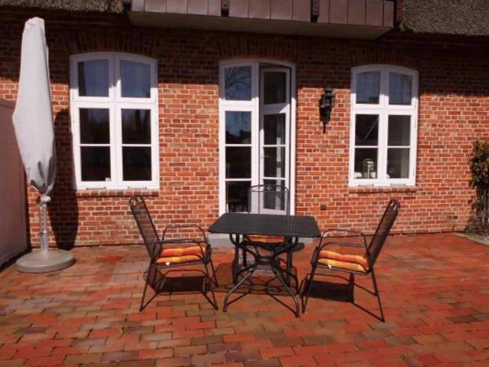 Nach historischem Vorbild detailgetreu erbauter Reetdachbau mitten im Herzen des historischen Dorfkerns. Die stilvoll eingerichtete 2-Zimmer-Wohnung im Erdgeschoß mit großzügiger, möblierter Südterrasse bietet hohen Wohnkomfort. Die volleingerichtete Küchenzeile verfügt über ein Ceranfeld-Herd, Backofen und Geschirrspüler. Ein Schlafraum mit Doppelbett (180x200). Helles Duschbad/WC mit Bidet. Gemeinschaftswaschmaschine und Trockner, Fahrradkeller, Pkw-Stellplatz. NICHTRAUCHER. Das Grillen mit Holzkohle und offenes Feuer wegen der Brandgefahr nicht erlaubt. Haustiere nicht erlaubt. WLAN vorhanden.